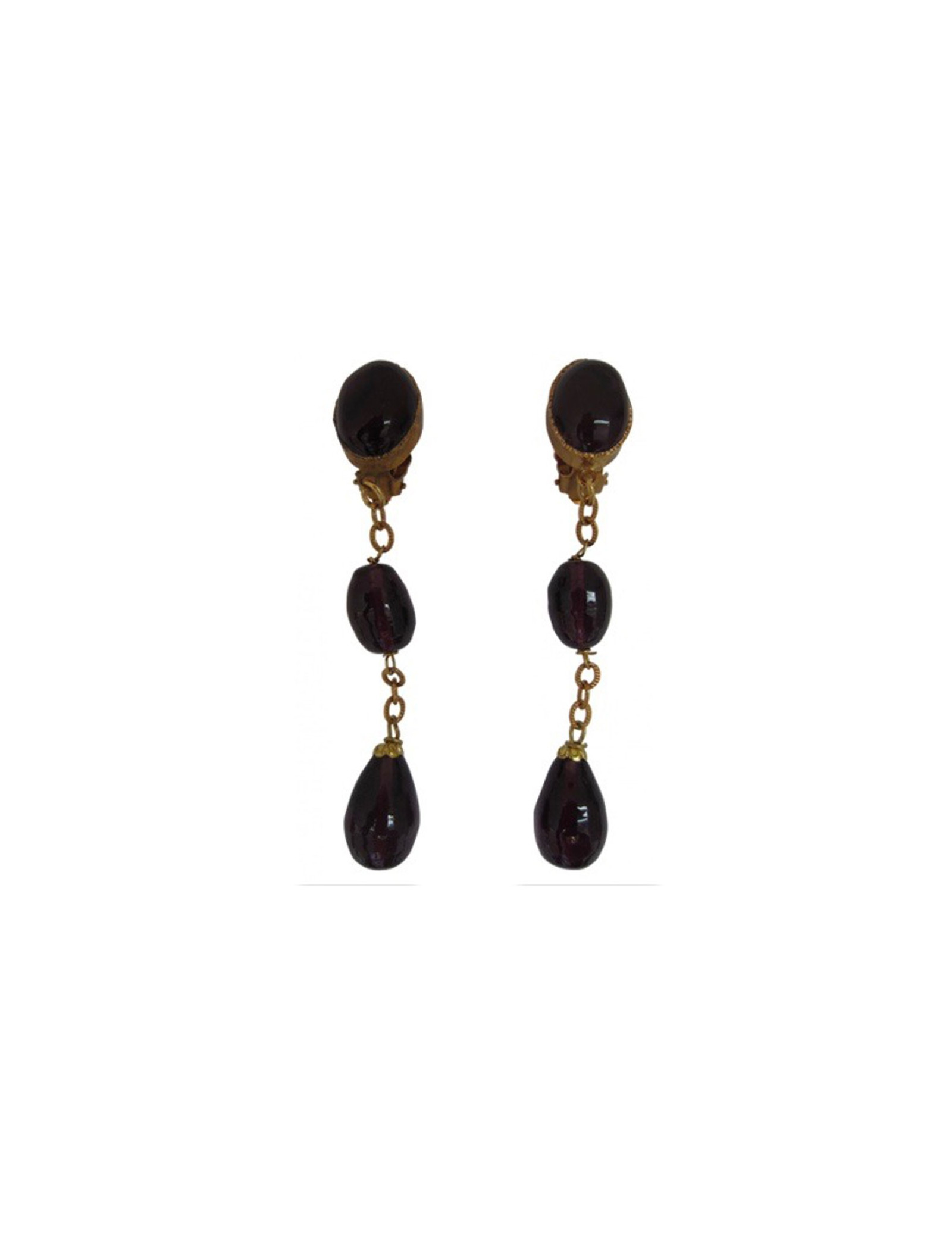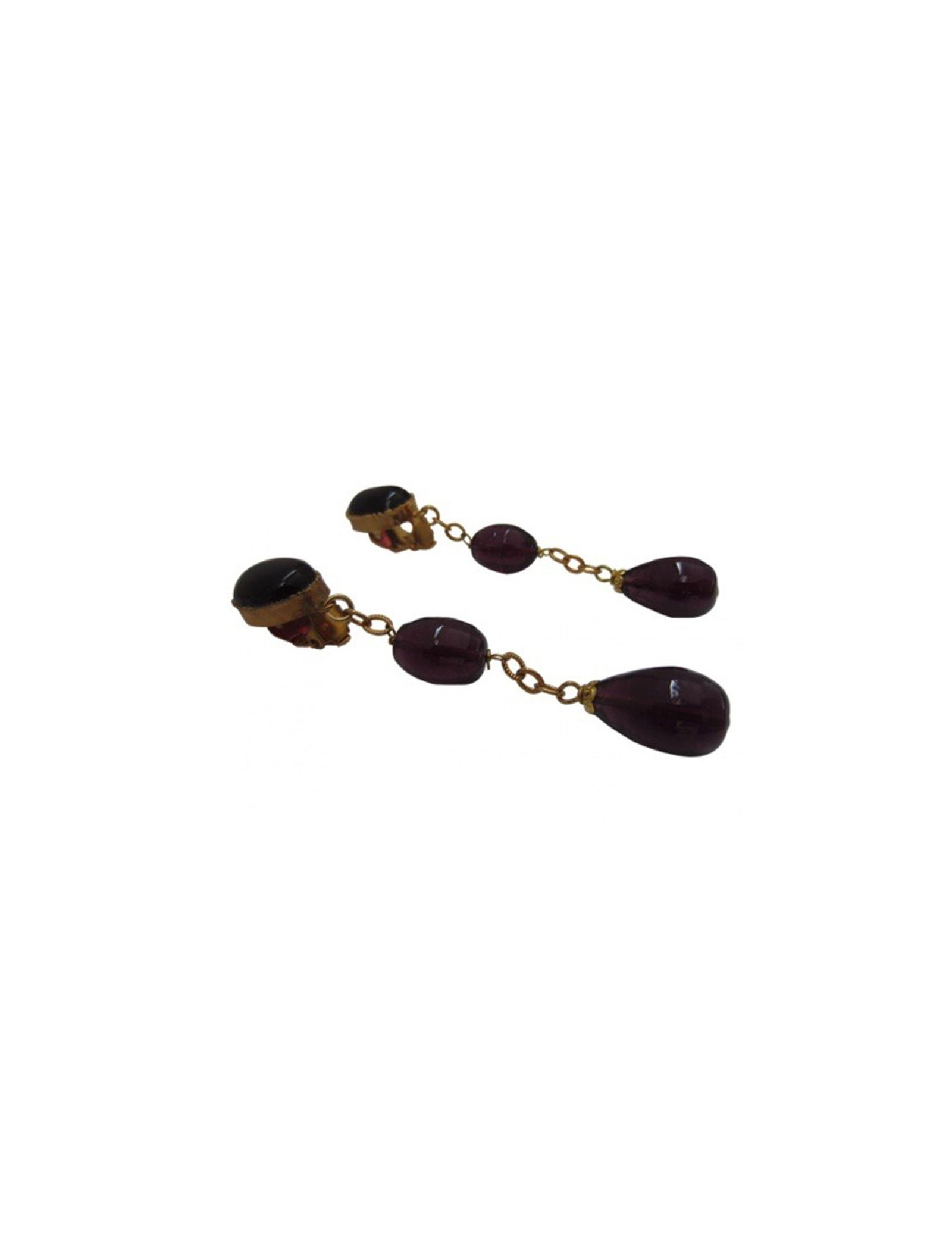 Earrings hanging clips MARGUERITE OF VALOIS in Amethyst glass and gold metal