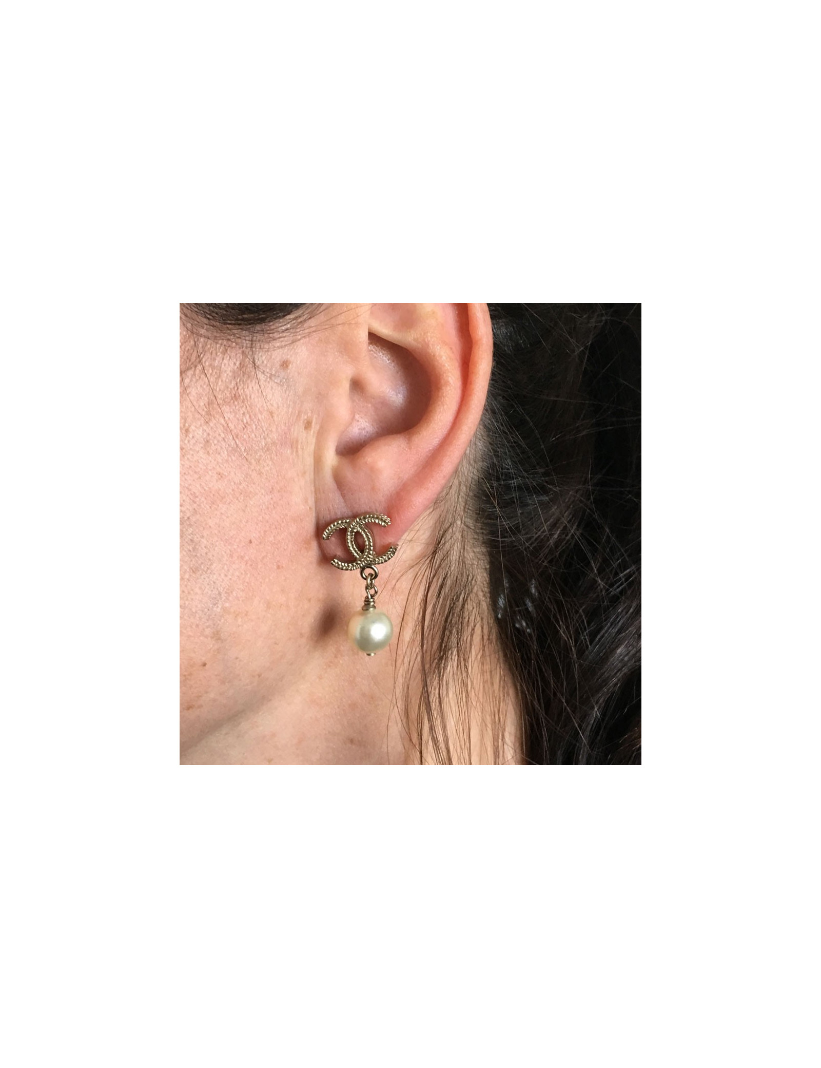 Sold EARRINGS CHANEL flower stud earrings in beige resin and pearly bead CHANEL 21324 220.00 € Chanel flower stud earrings in beige resin and small pearly bead in the center. Never worn. Dimensions : 1.6 cm in diameter Will be delivered in a black box, Chanel ribbon and white camellia View