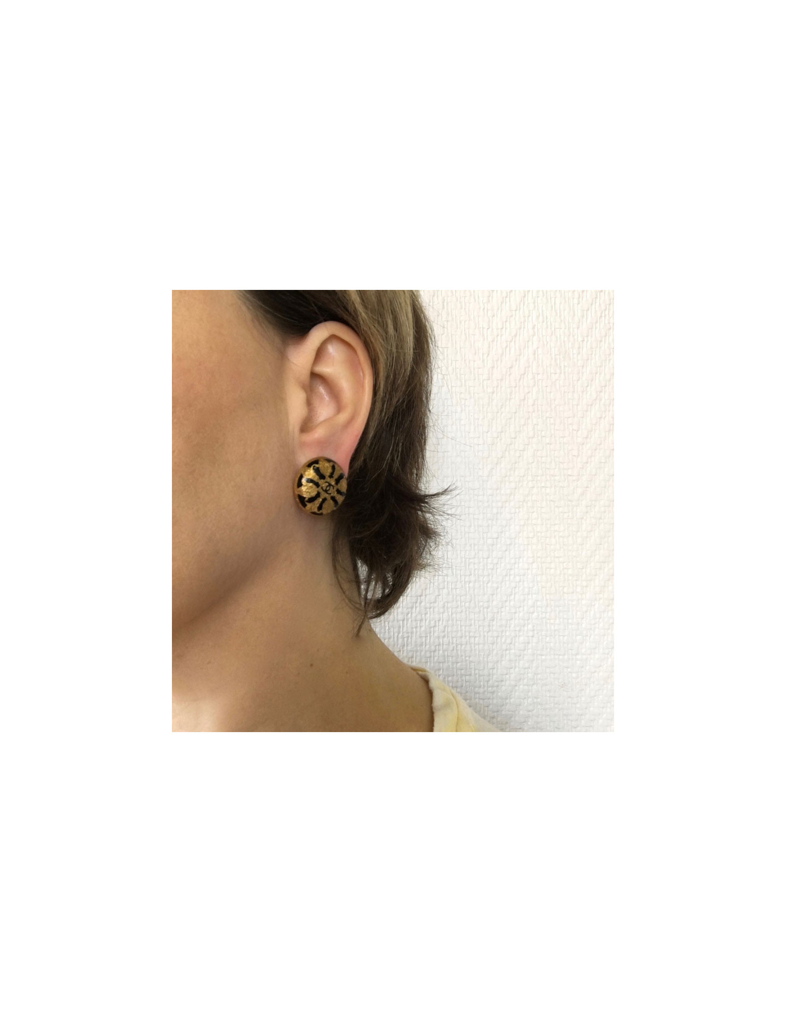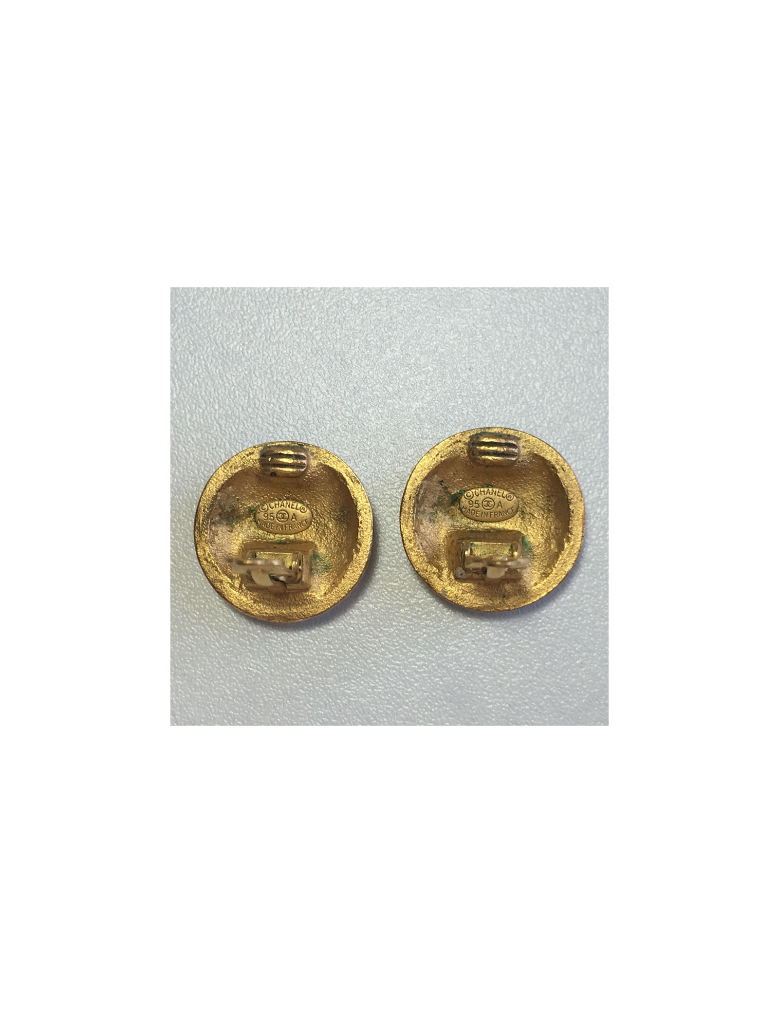 Last items in stock EARRINGS CHANEL vintage haute couture gilded clip-on earrings CHANEL 19051 3,590.00 € CHANEL vintage haute couture gilded clip-on earrings Condition : goodMade in FranceMaterials: gold plated metalColor: goldRare collector pieceMeasurements : 5 x 5 cmWeight : 47 grams for each earringS for sales on the back of each earringYear: 90' Delivered in a pouch and Valois Vintage Paris box Add to cart