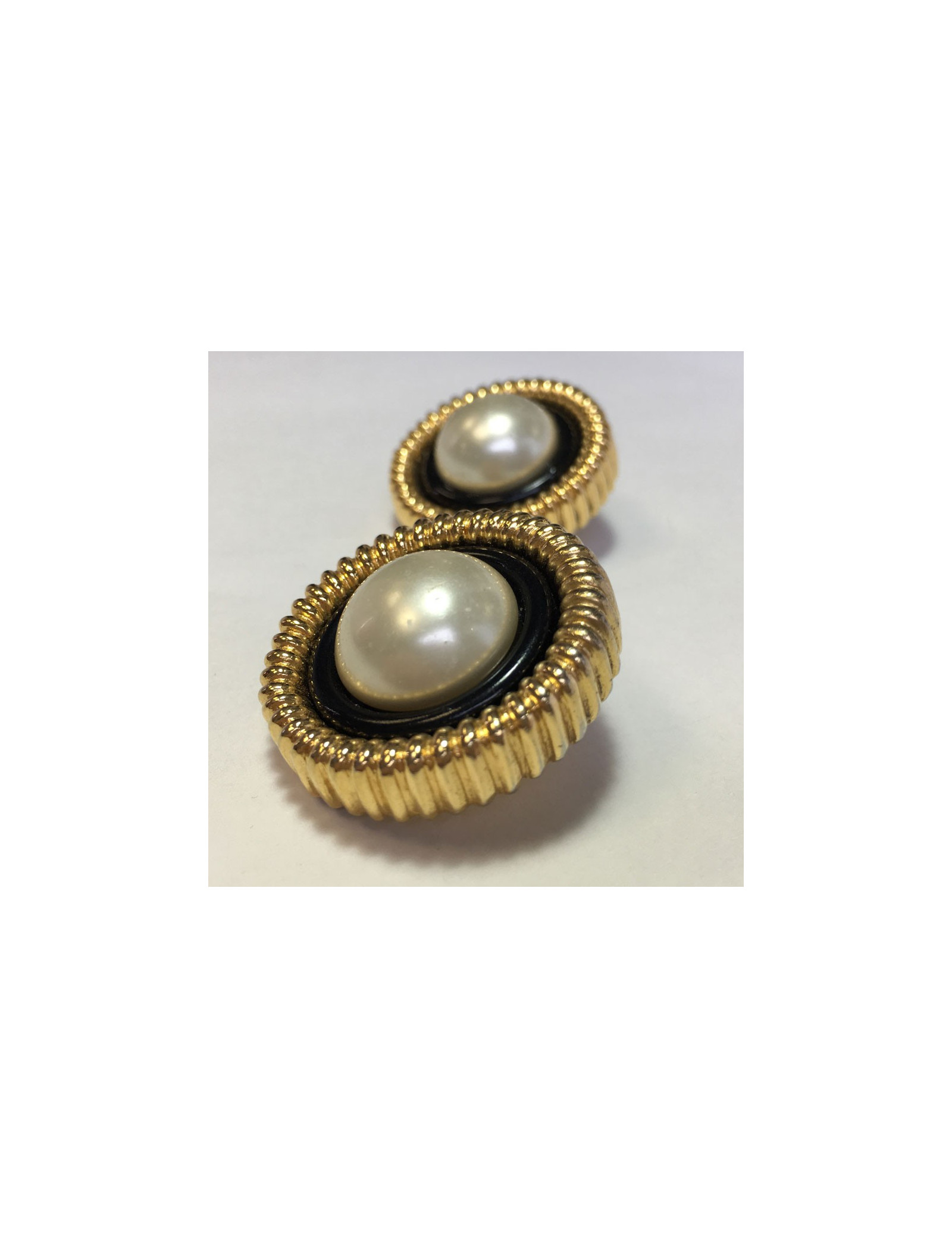 Chanel Couture clip-on earrings, in gilded metal and a pearl in the center.