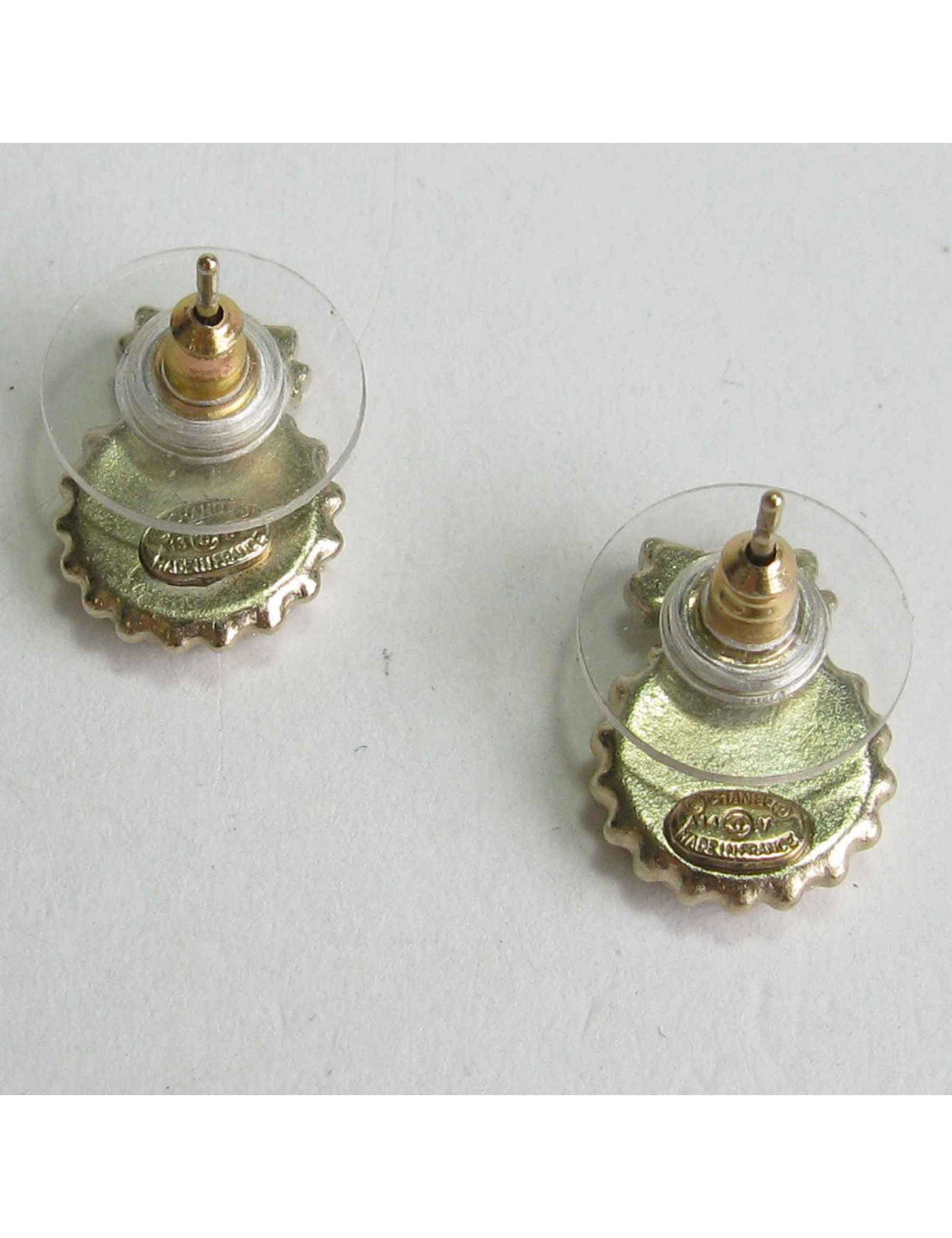 Last items in stock EARRINGS CHANEL vintage haute couture gilded clip-on earrings CHANEL 19051 3,590.00 € CHANEL vintage haute couture gilded clip-on earrings Condition : goodMade in FranceMaterials: gold plated metalColor: goldRare collector pieceMeasurements : 5 x 5 cmWeight : 47 grams for each earringS for sales on the back of each earringYear: 90' Delivered in a pouch and Valois Vintage Paris box Add to cart