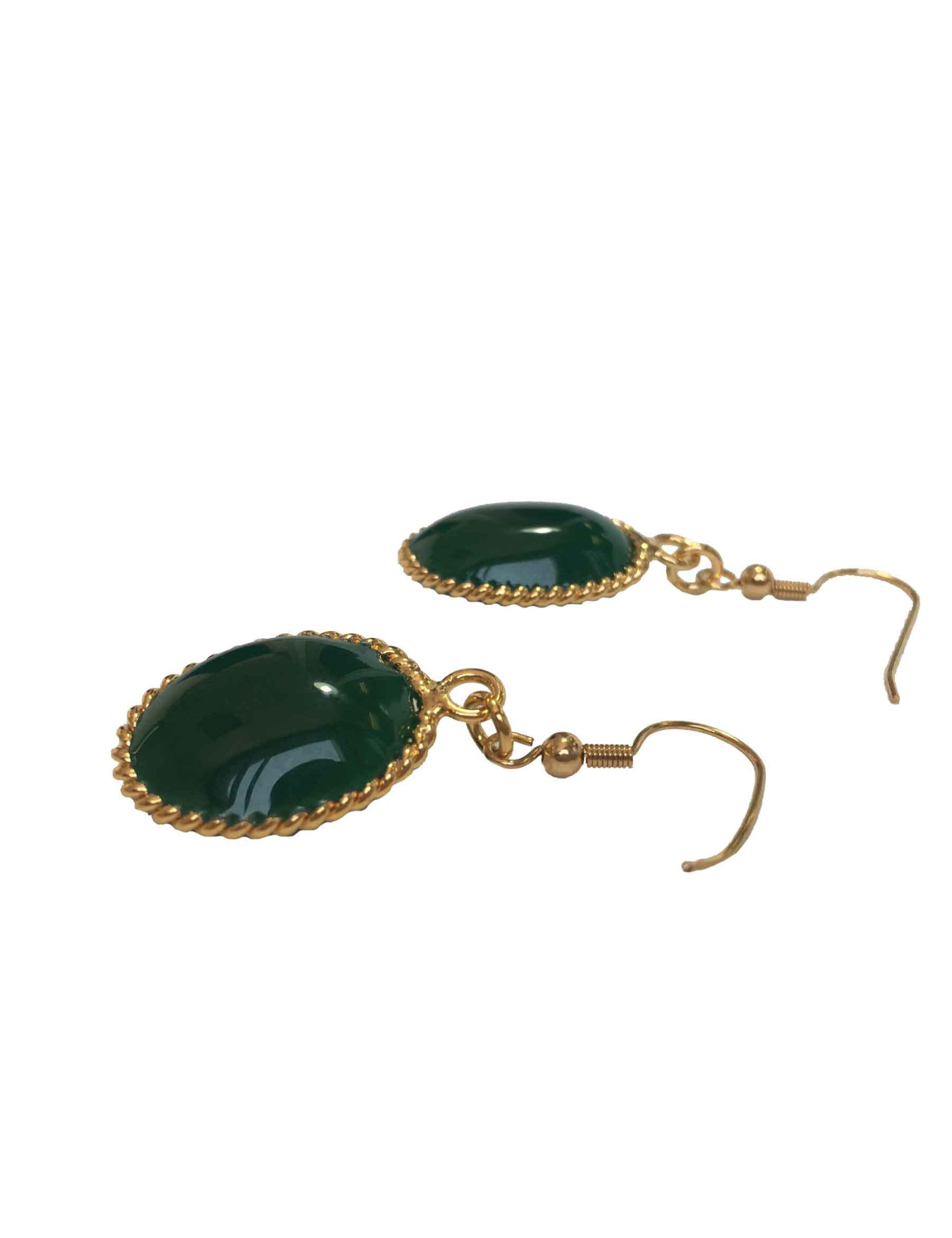 Boucles d'oreille clous MARGUERITE DE VALOIS en pâte de verre de couleur vert foncé et métal doré à l'or fin.