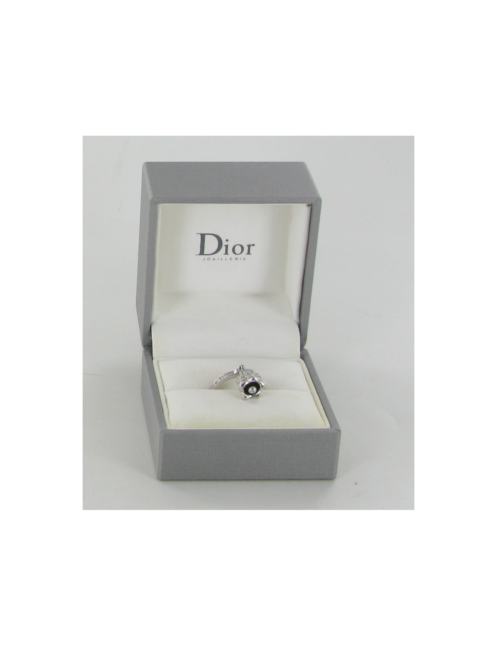 Ring T51, "DIOR Joaillerie", Collection "Muguet" white gold 18K diamonds. The House DIOR created this ring in 2001. We have 0.25 carats of diamonds around. The flower is articulated. Supplied in the original sealed "DIOR Joaillerie" box.
