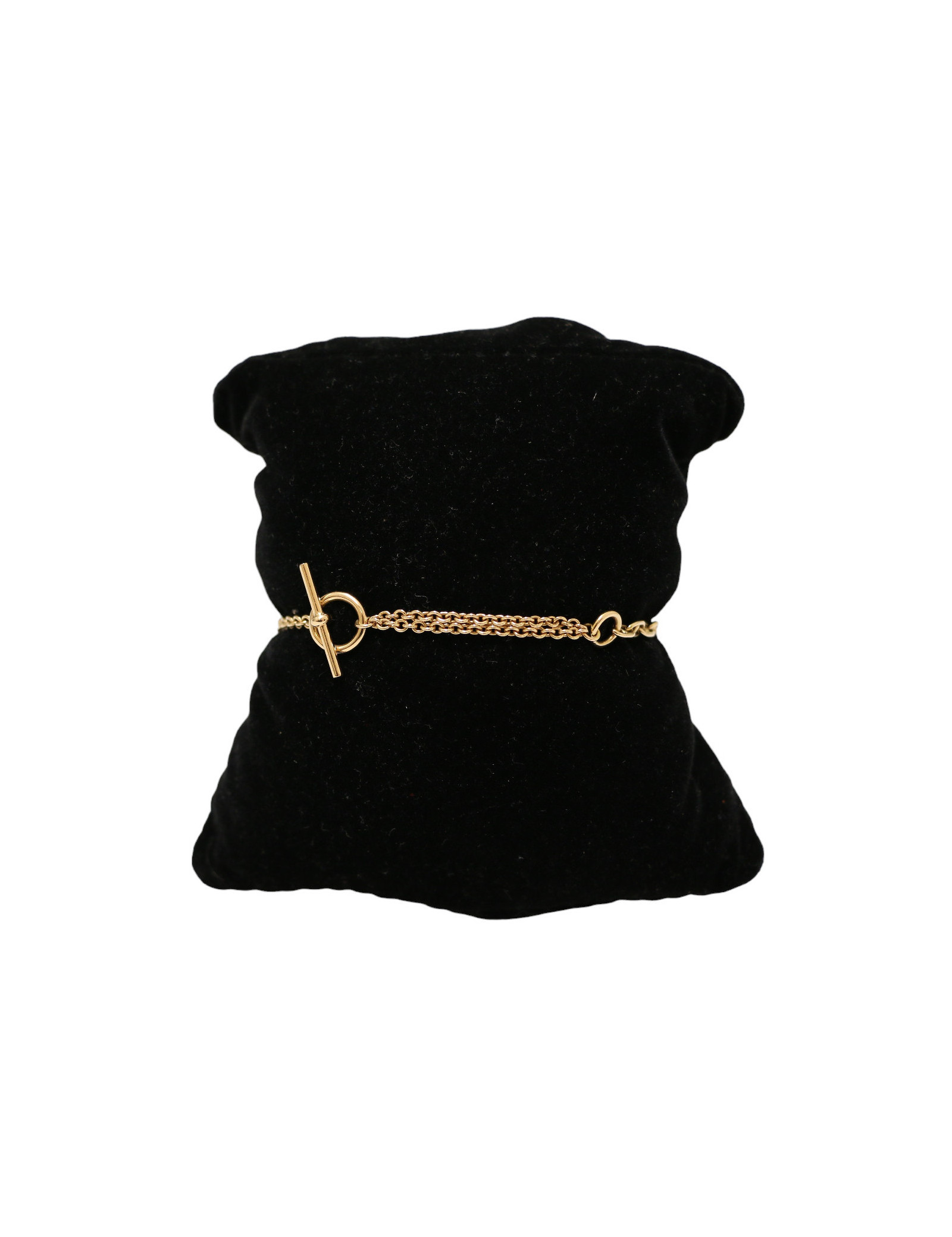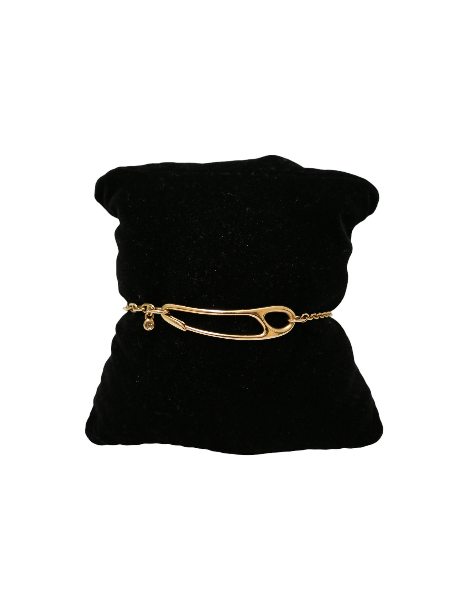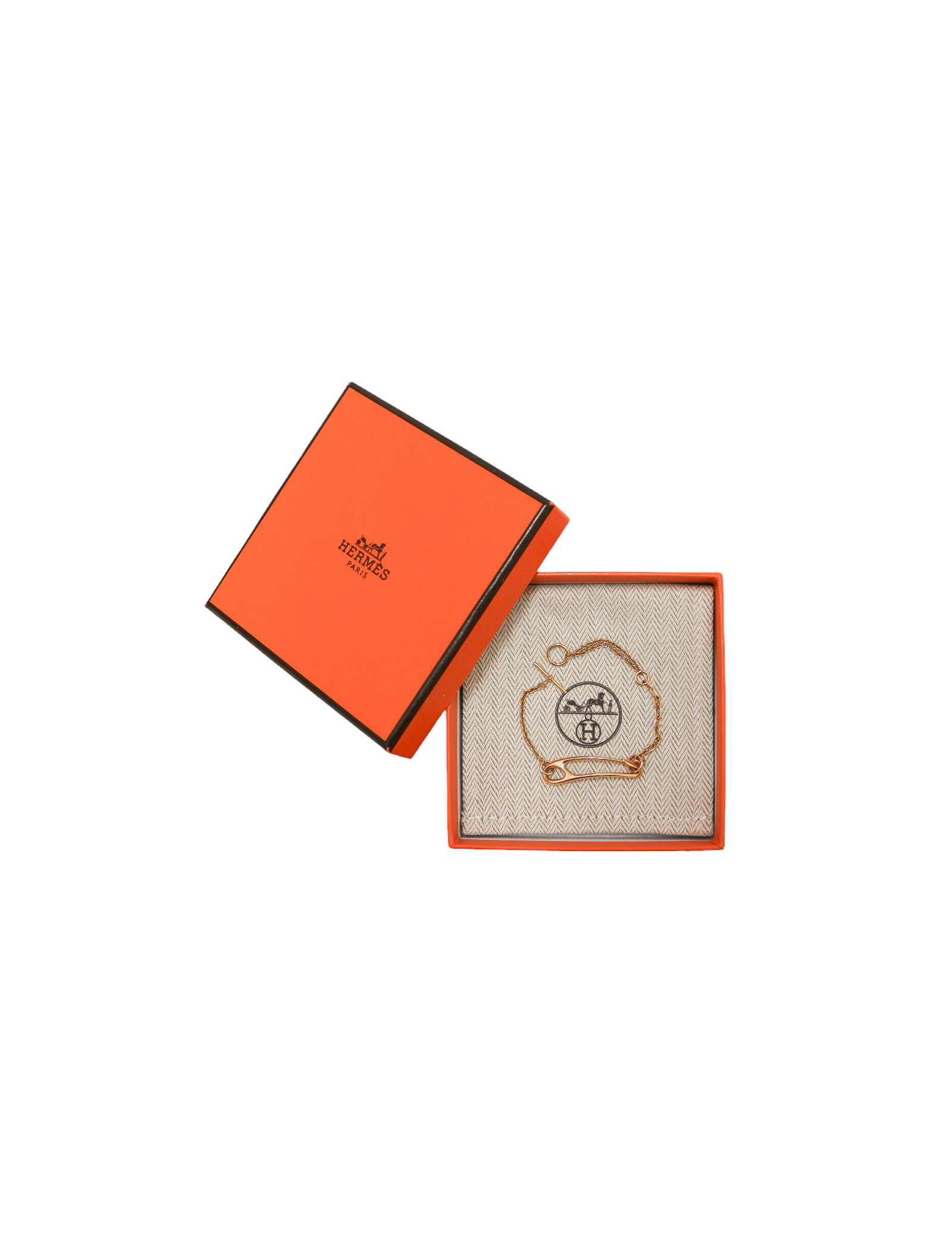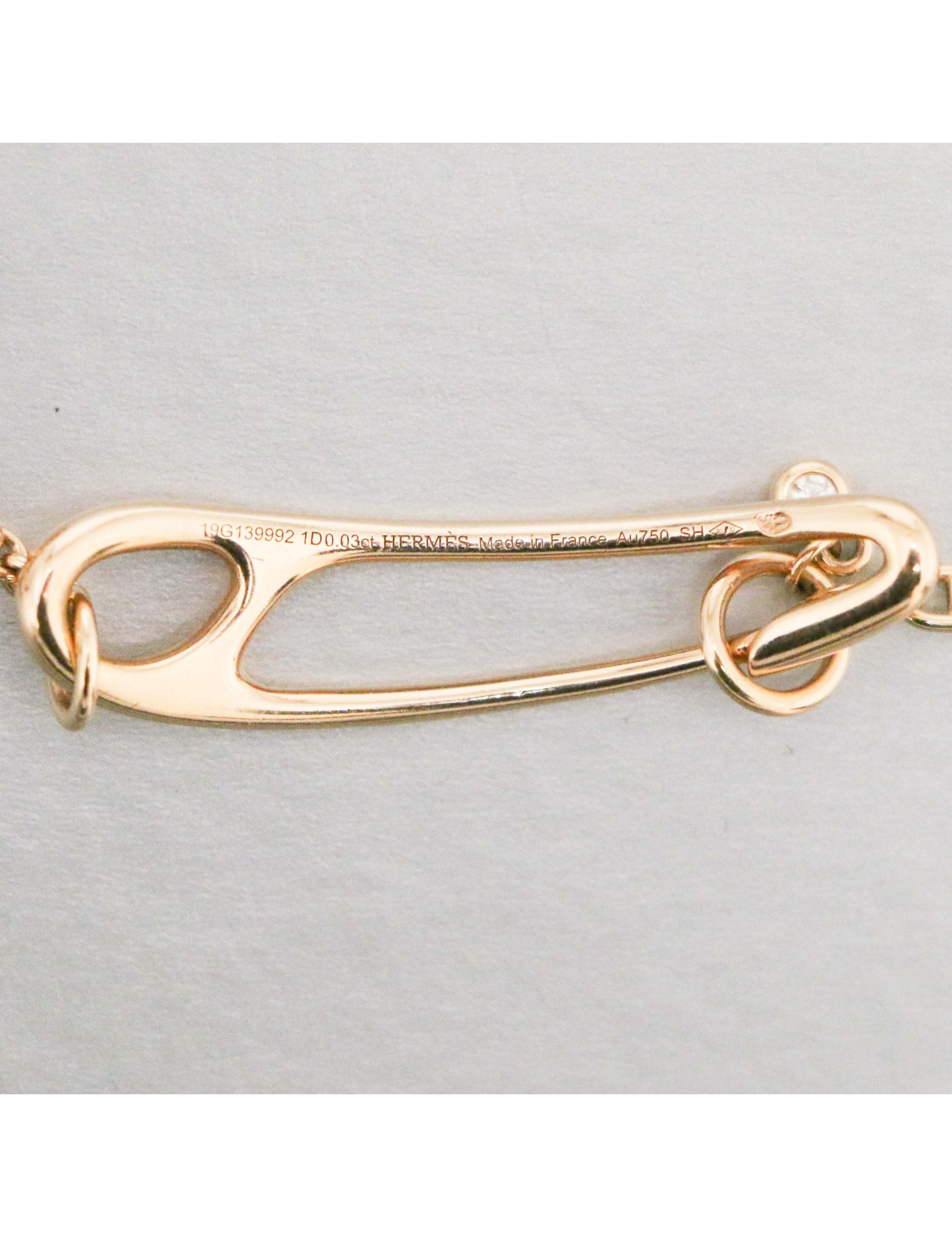 Details : HERMES anchor chain bracelet with a stylized safety pin and a small white diamond charm. Delivered with its pouch and Precious Stones and Metals certificate.