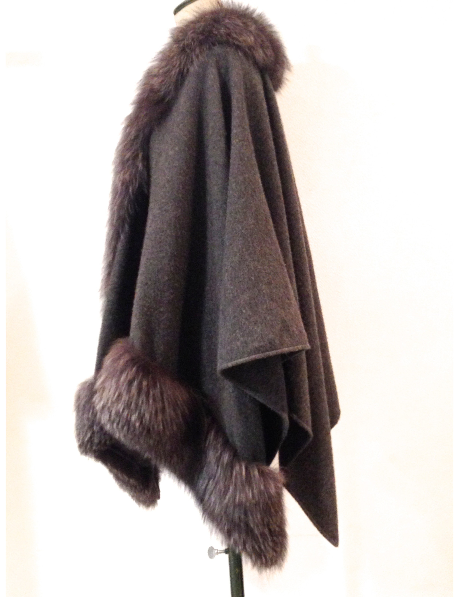 Beautiful cape sewing MANAVALAN DIOR grey cashmere supported and lined with a wide fur (Silver Fox). can the day wear, casual way and in the evening on pretty outfits.