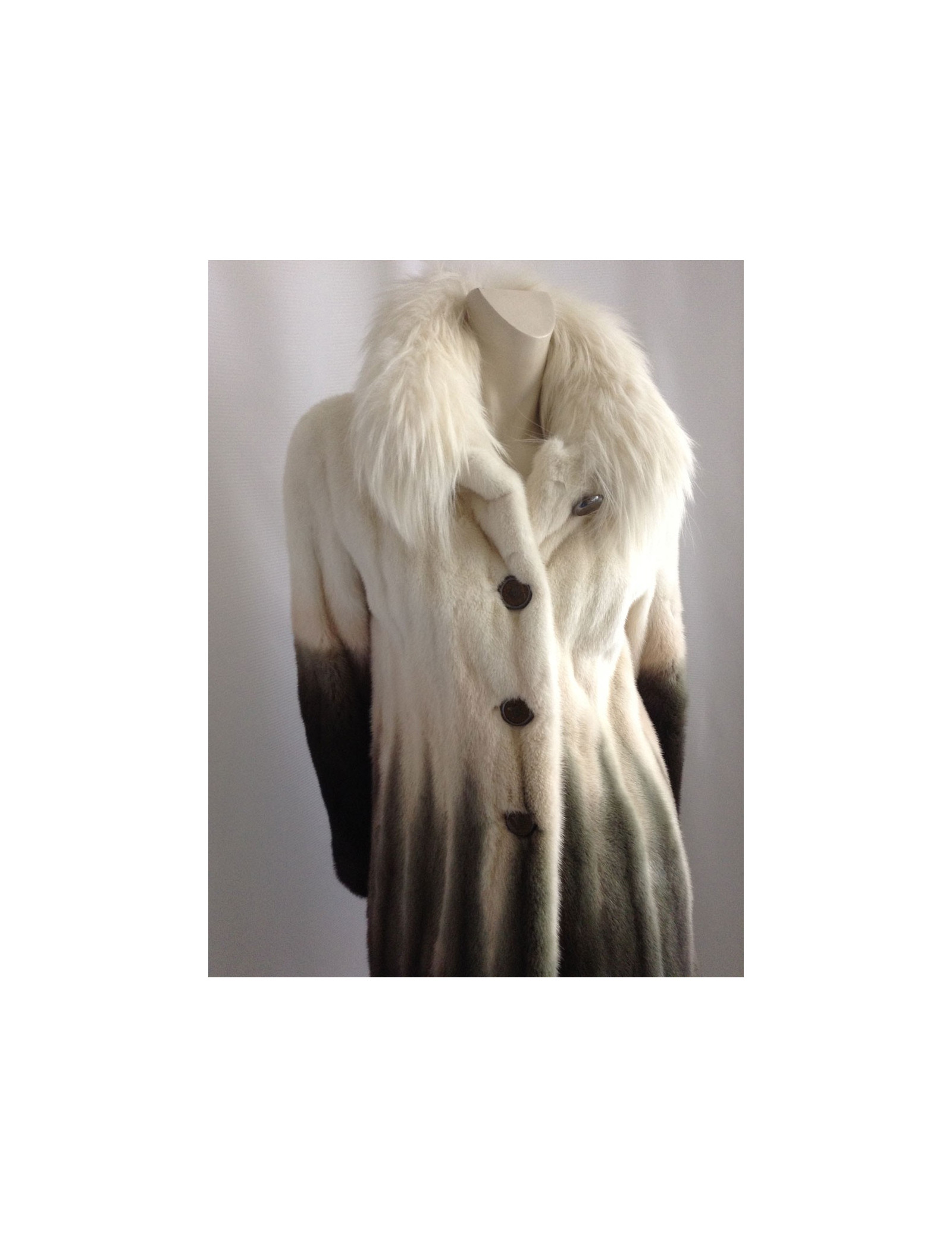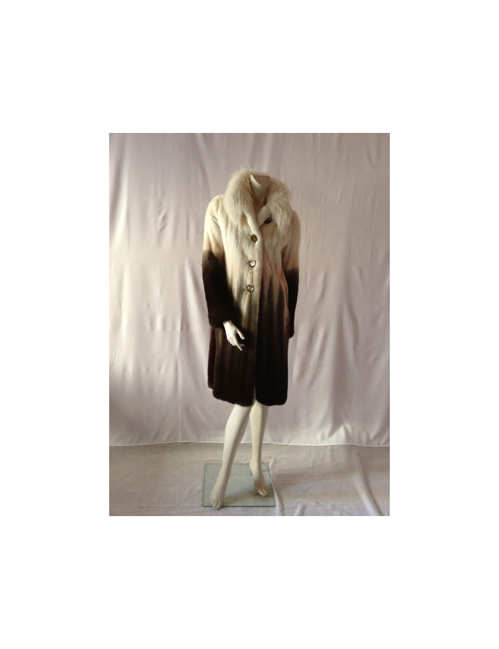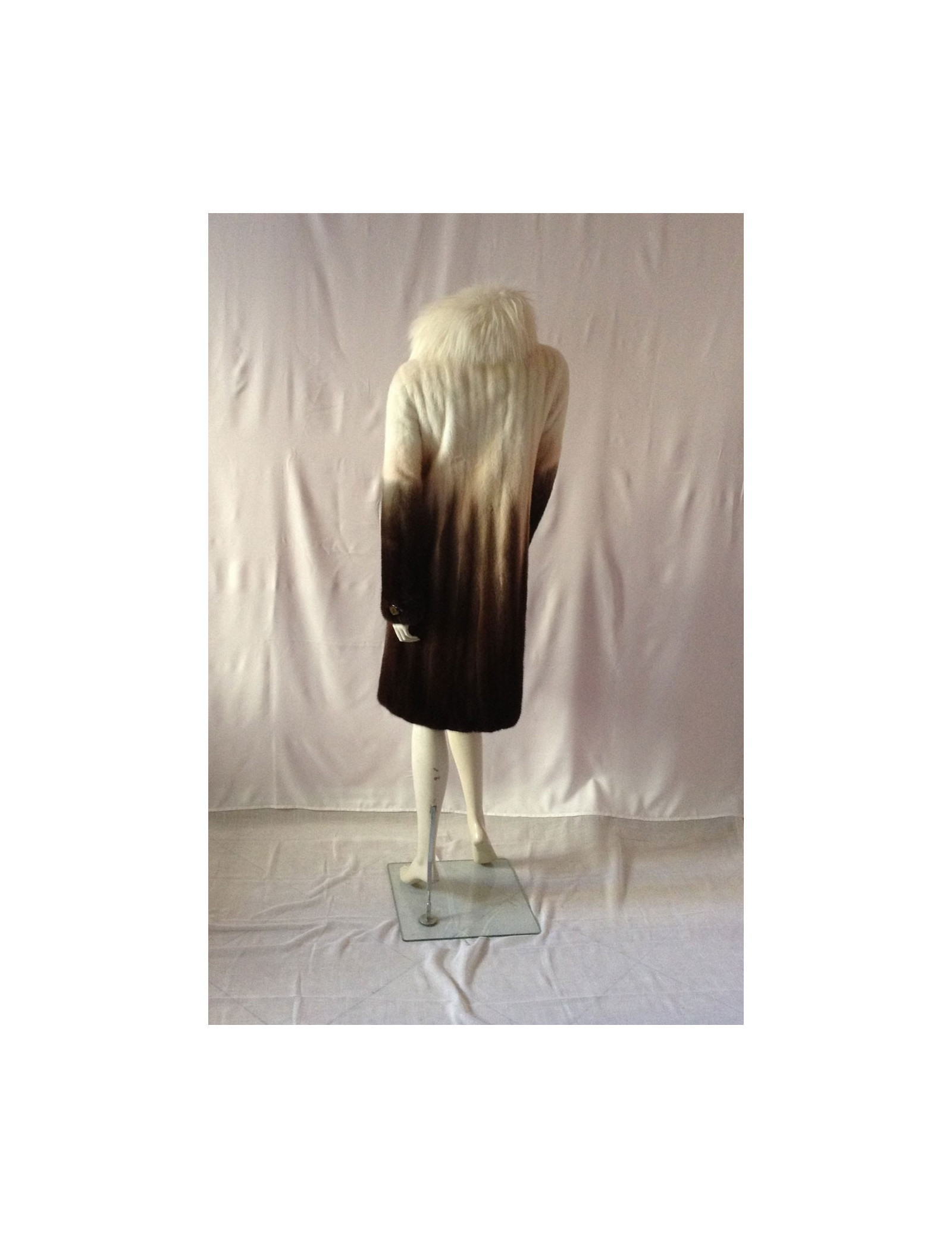Beautiful coat Céline mink 100%. A very pretty piece. The white collar is Fox; the colors have been harmoniously selected: Brown, Khaki, beige, off-white; the gradient is SUBLIME! The lining is silk 100% Brown monogrammee Céline, THE MUST HAVE!