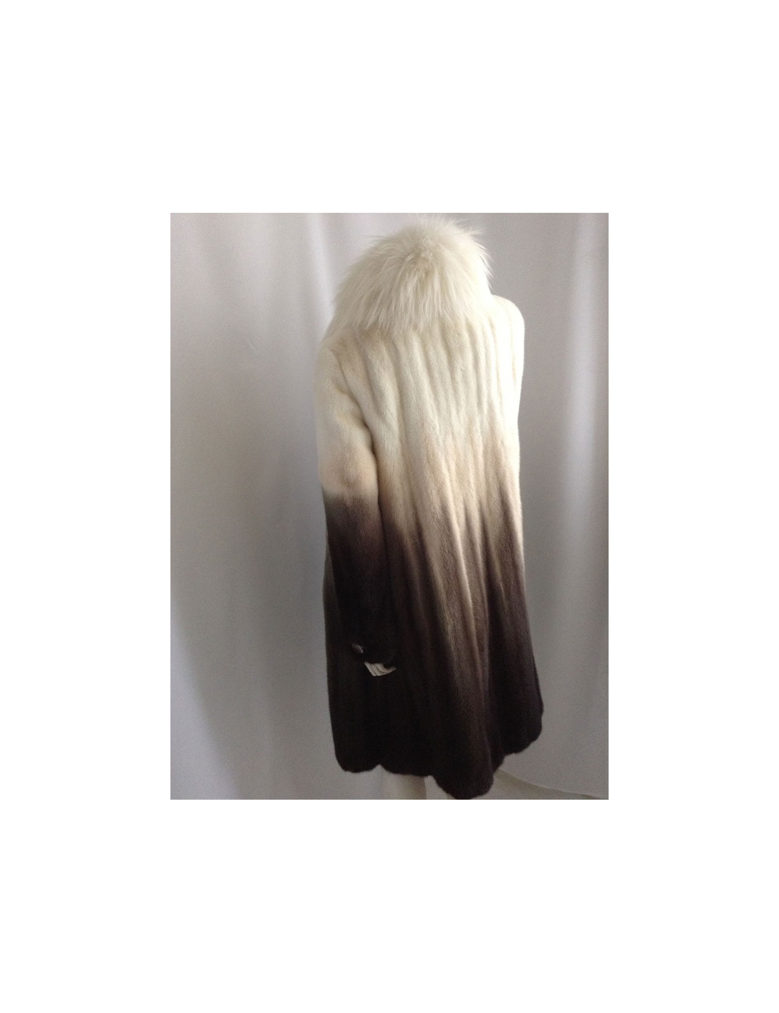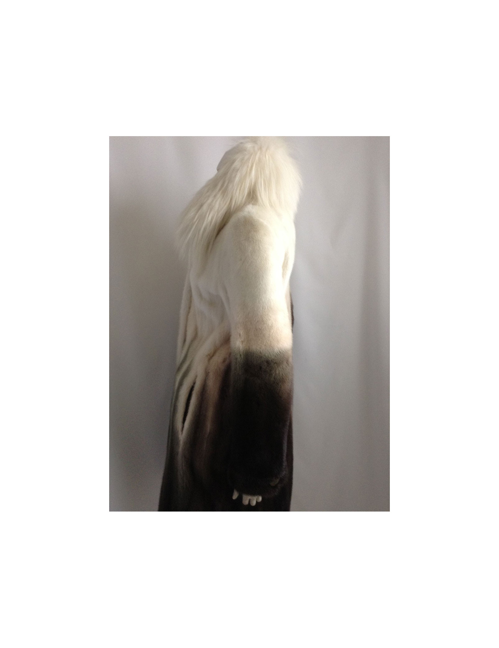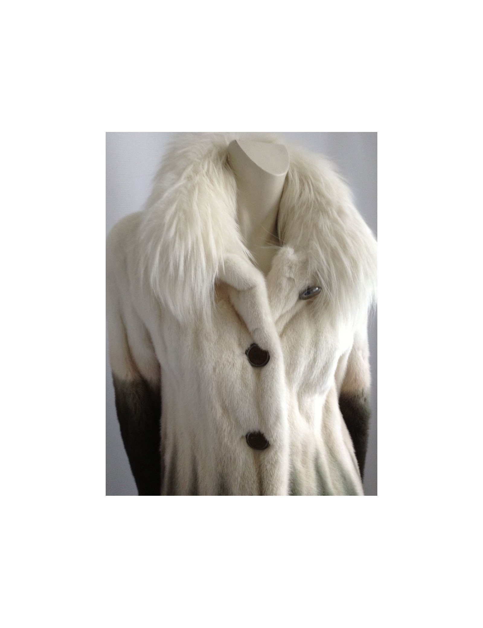 Beautiful coat Céline mink 100%. A very pretty piece. The white collar is Fox; the colors have been harmoniously selected: Brown, Khaki, beige, off-white; the gradient is SUBLIME! The lining is silk 100% Brown monogrammee Céline, THE MUST HAVE!