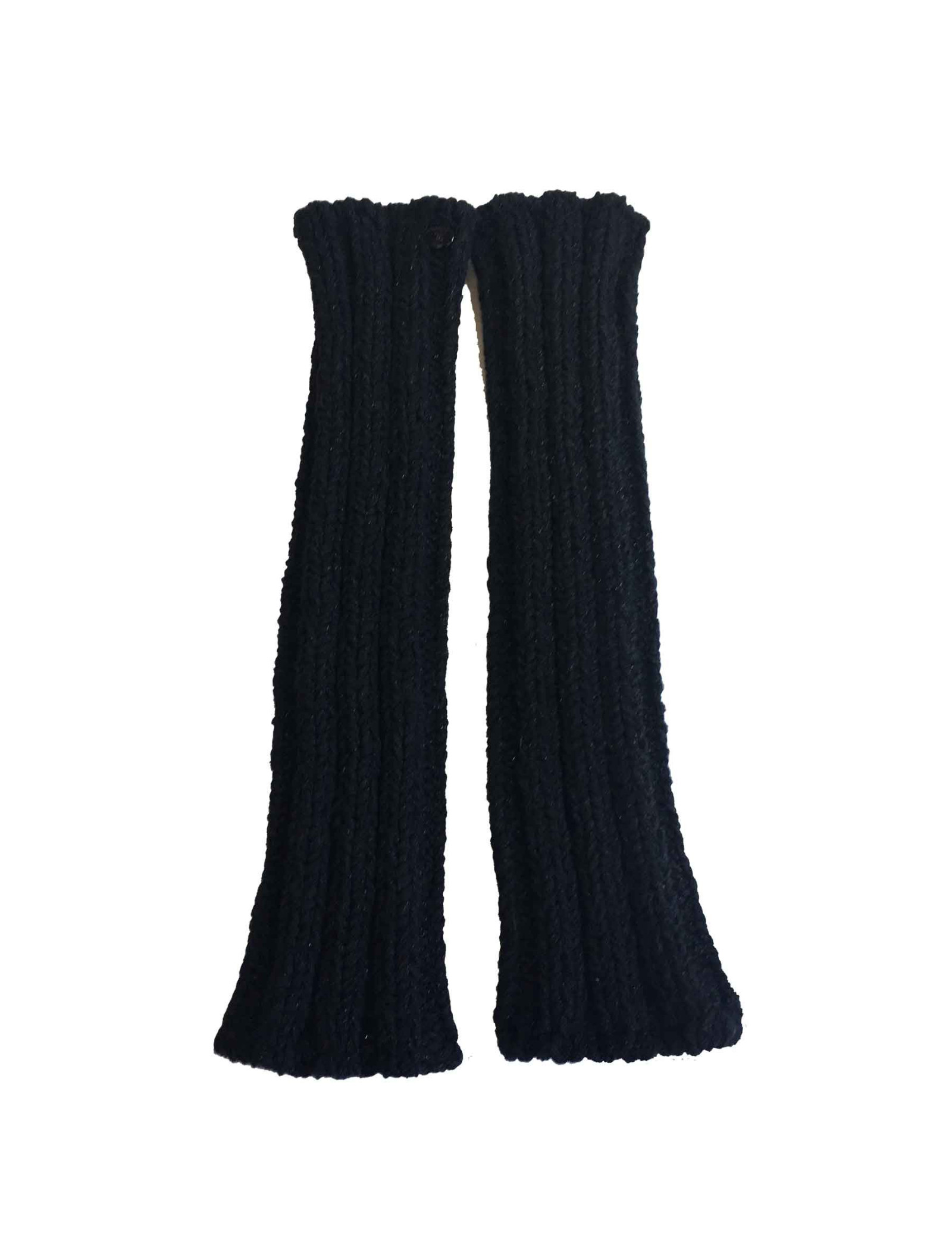 CHANEL Size 2 long knitted mittens in black cotton, cashmere and silk and silver threads