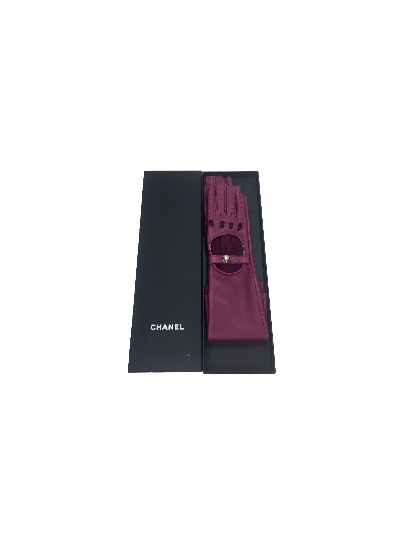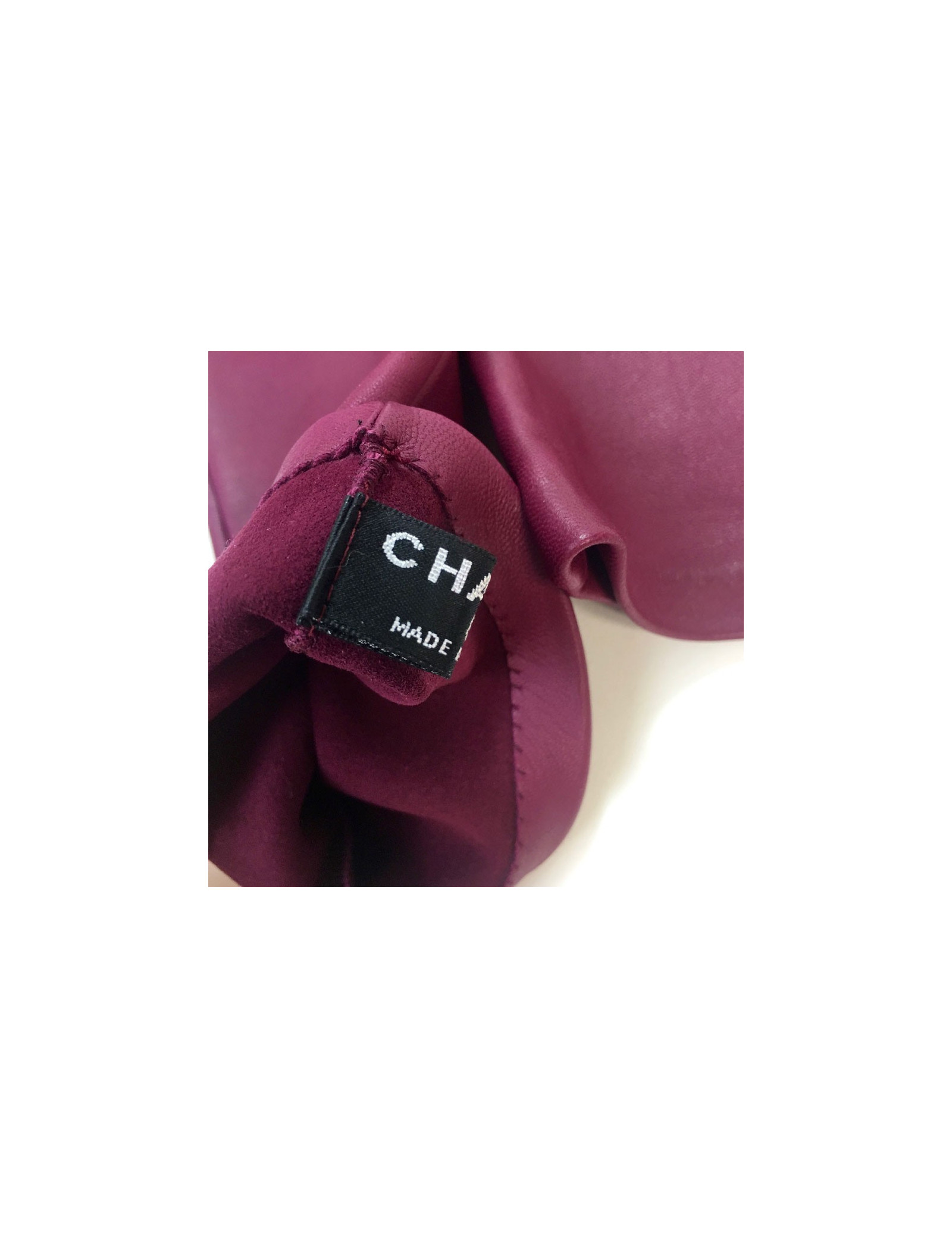 Beautiful long Chanel mittens in fuchsia lamb leather. CC snap fastener
