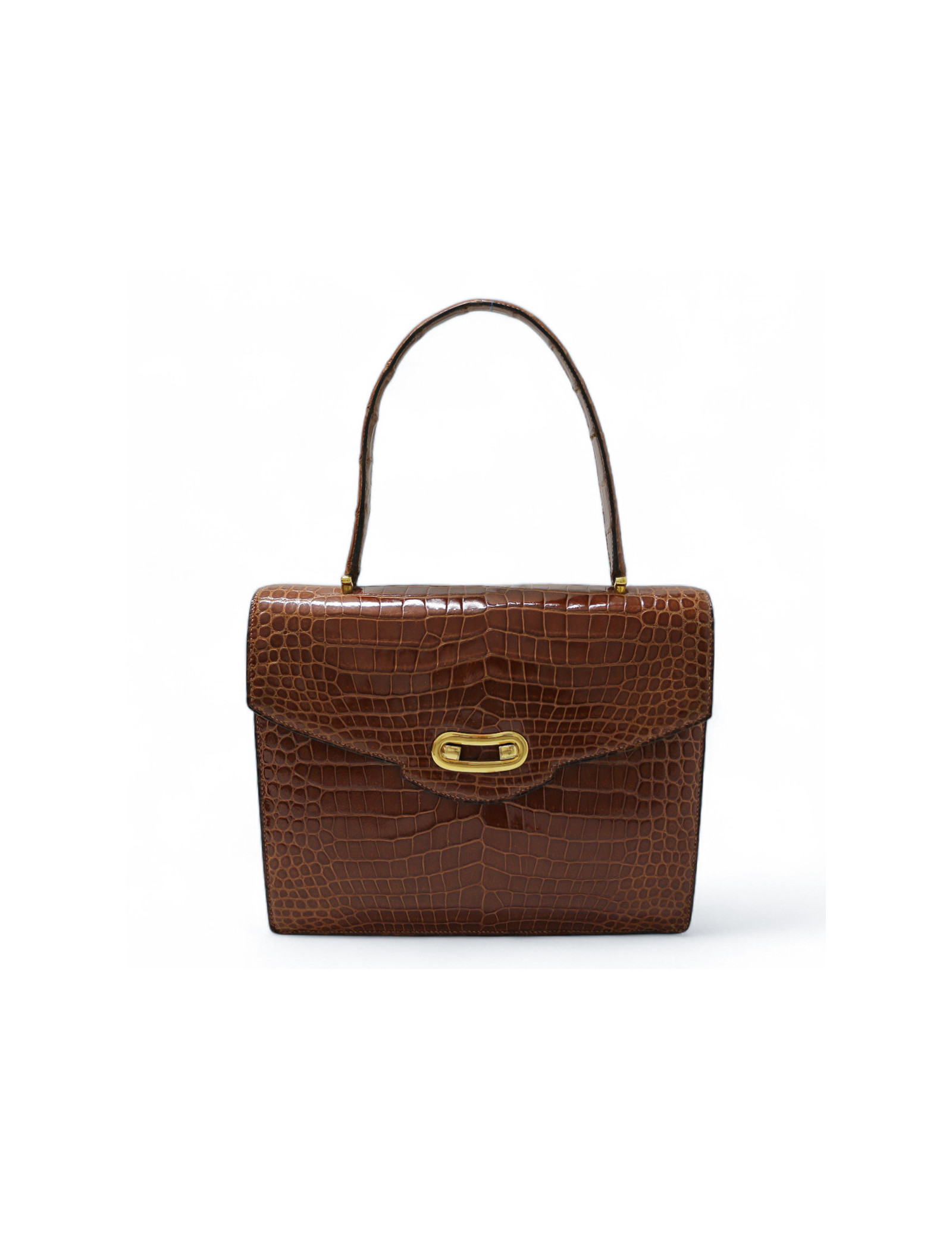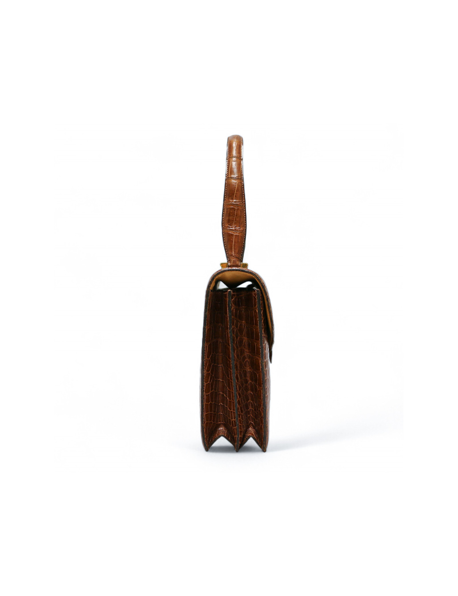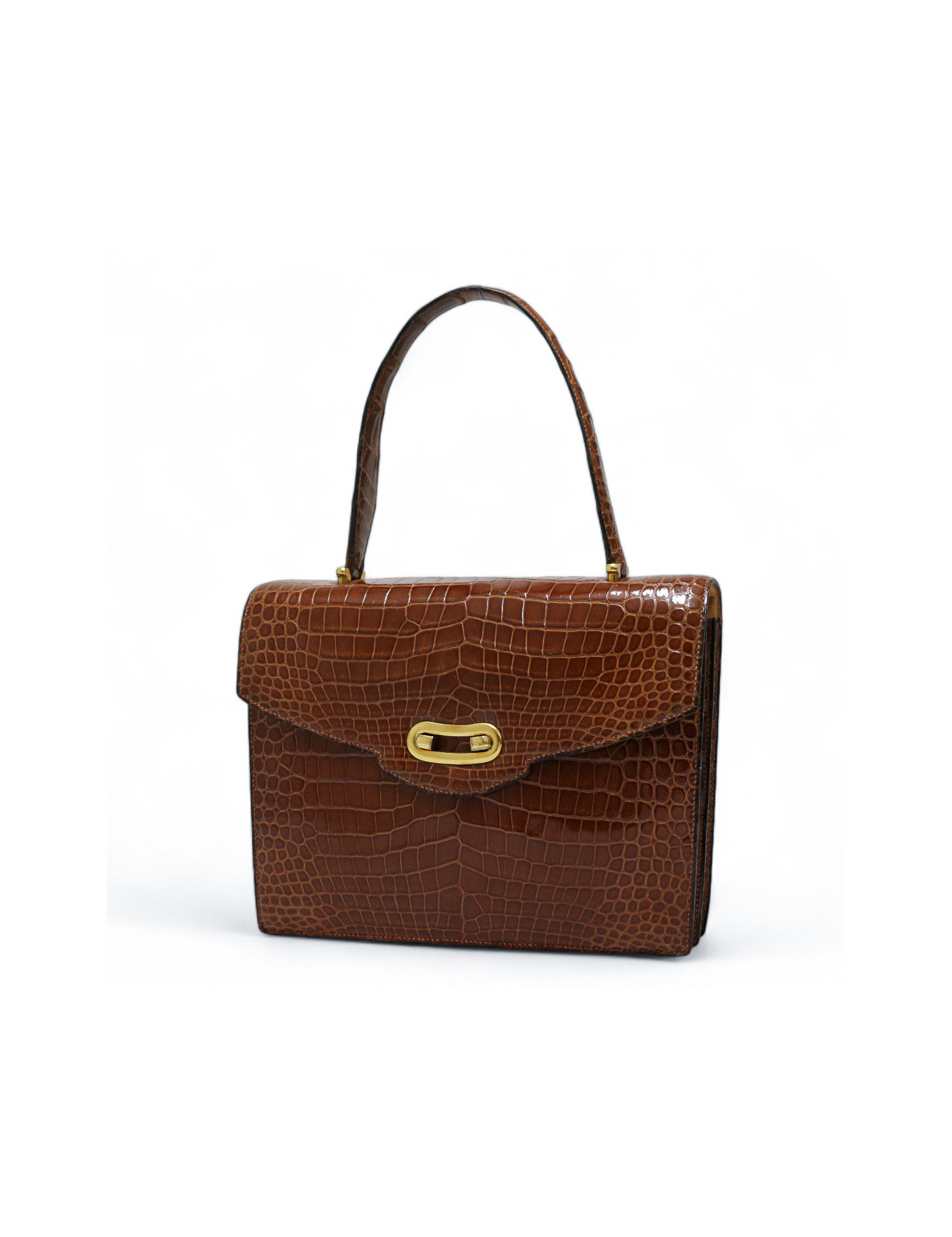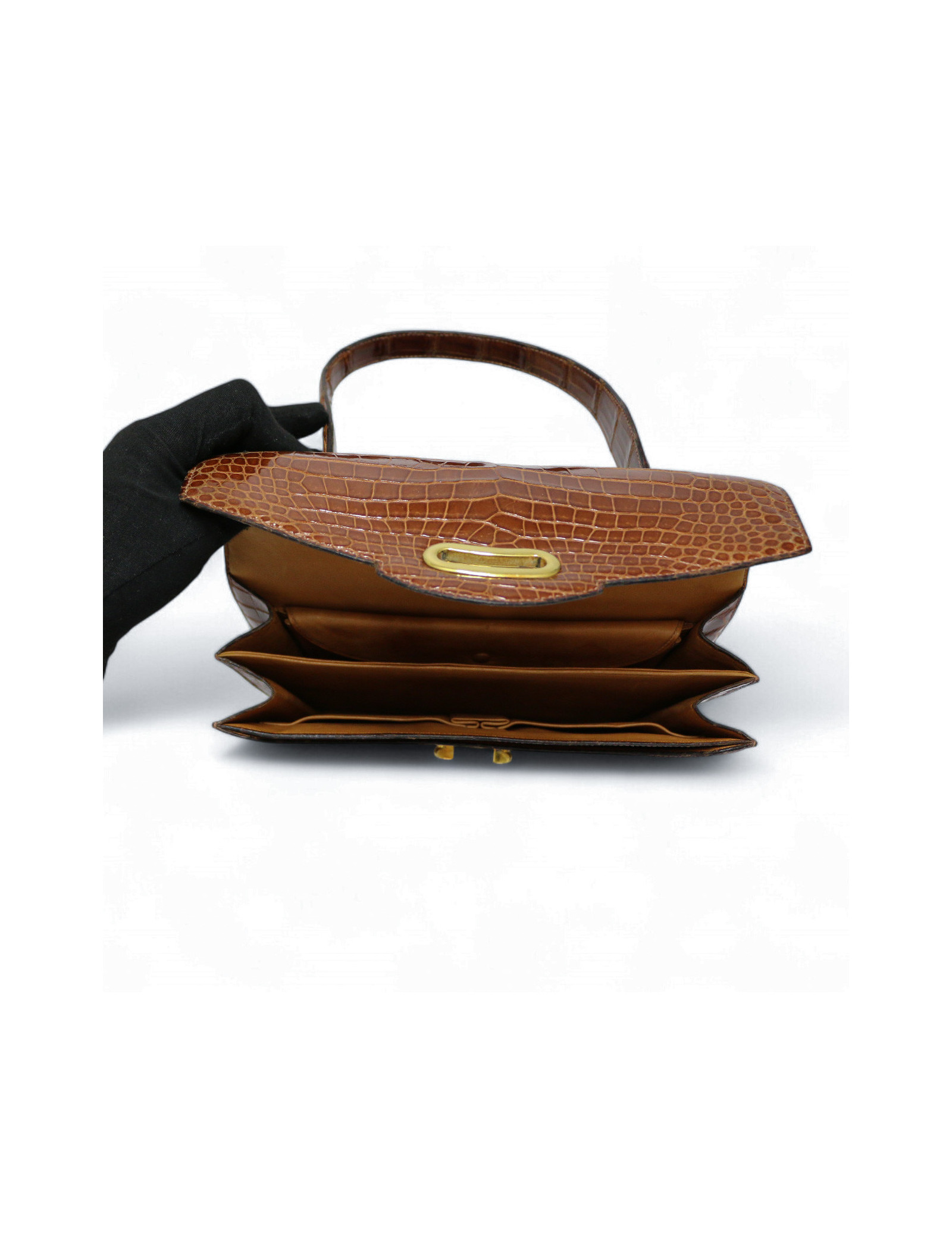 Sold HANDBAGS ETRO bag in two-tone crocodile-effect leather ETRO 36113 650.00 € ETRO bag in black and brown leather Condition : very goodMade in ItalyCollection : hand bagGender : womanMaterial : leatherLining: multicolor fabricColors : black, brownMeasurements : 36 x 28 x 14 cmHardware: gold finish metalDetails : brown crocodile-effect leather inserts on top of the bag, zip fastening, four studs under the bag View