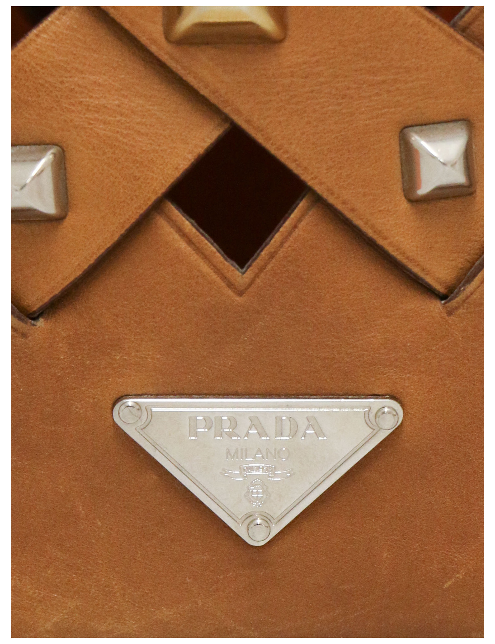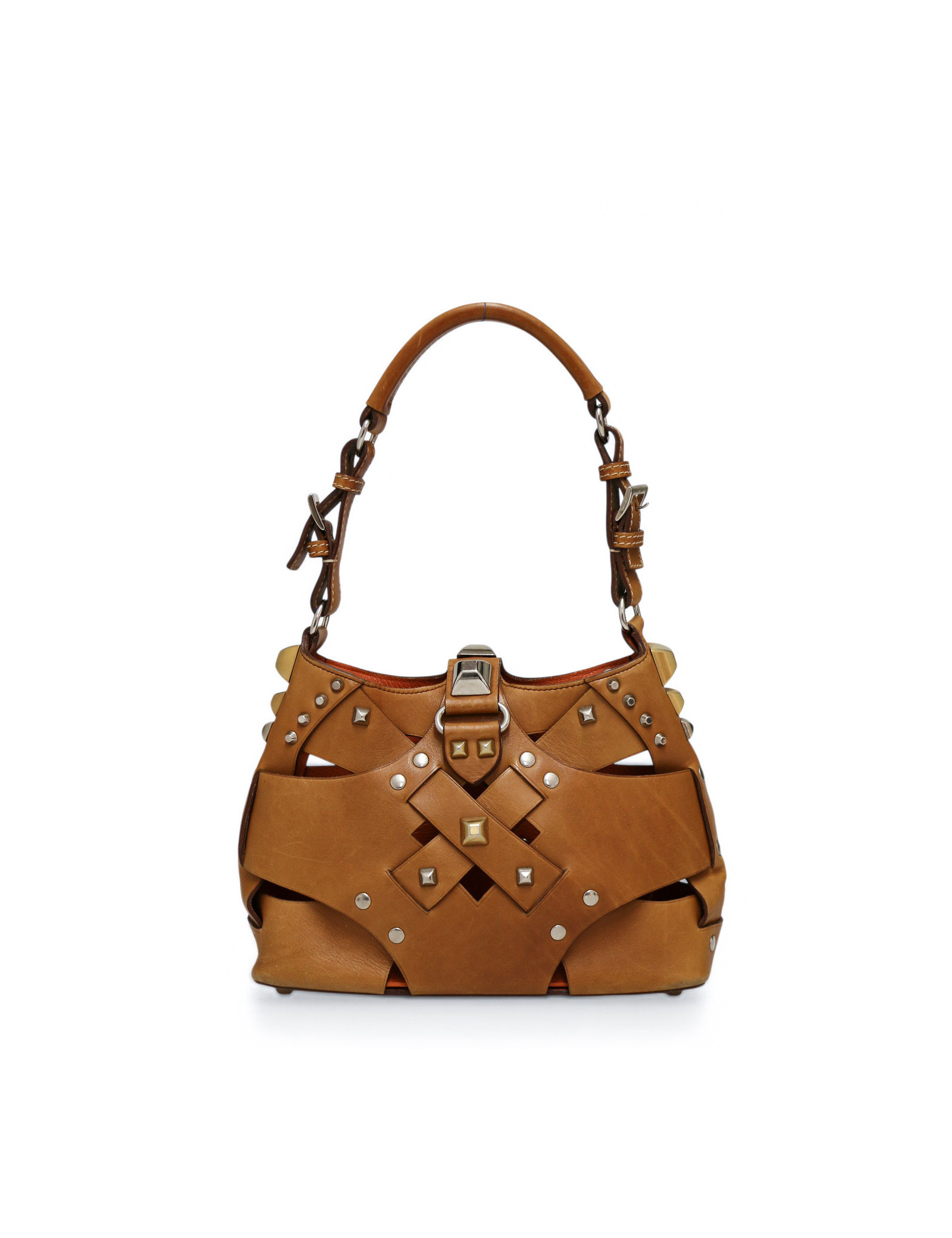 Overall in very good condition, the leather shows a light patina. One stud is missing on each side of the bag.