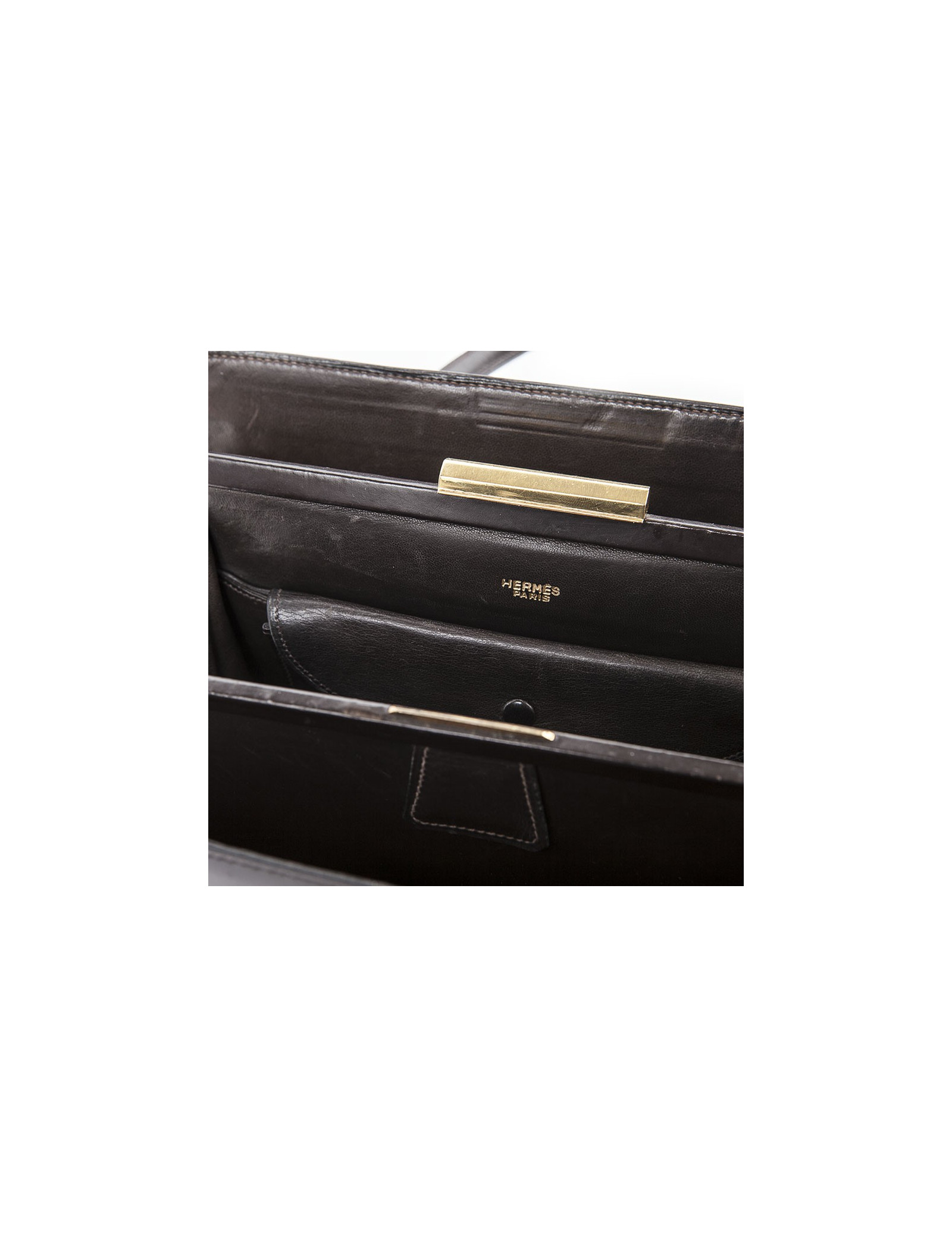 Hermès vintage 'Pullman' bag in brown box leather. Gilded metal hardware. Inside there are 3 storage spaces.