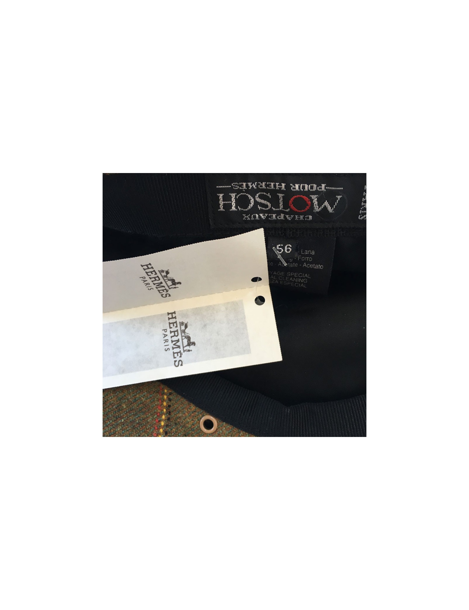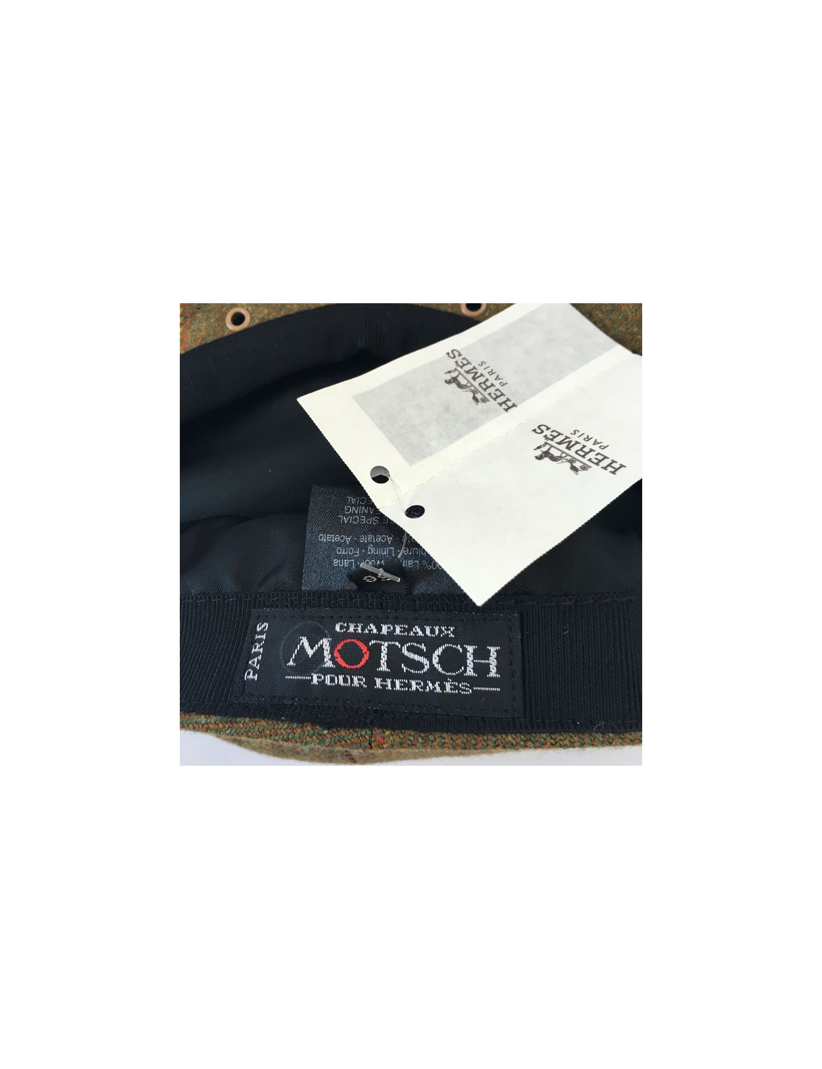 MOTSCH cap for HERMES "Edinburgh" collection in wool with khaki check pattern