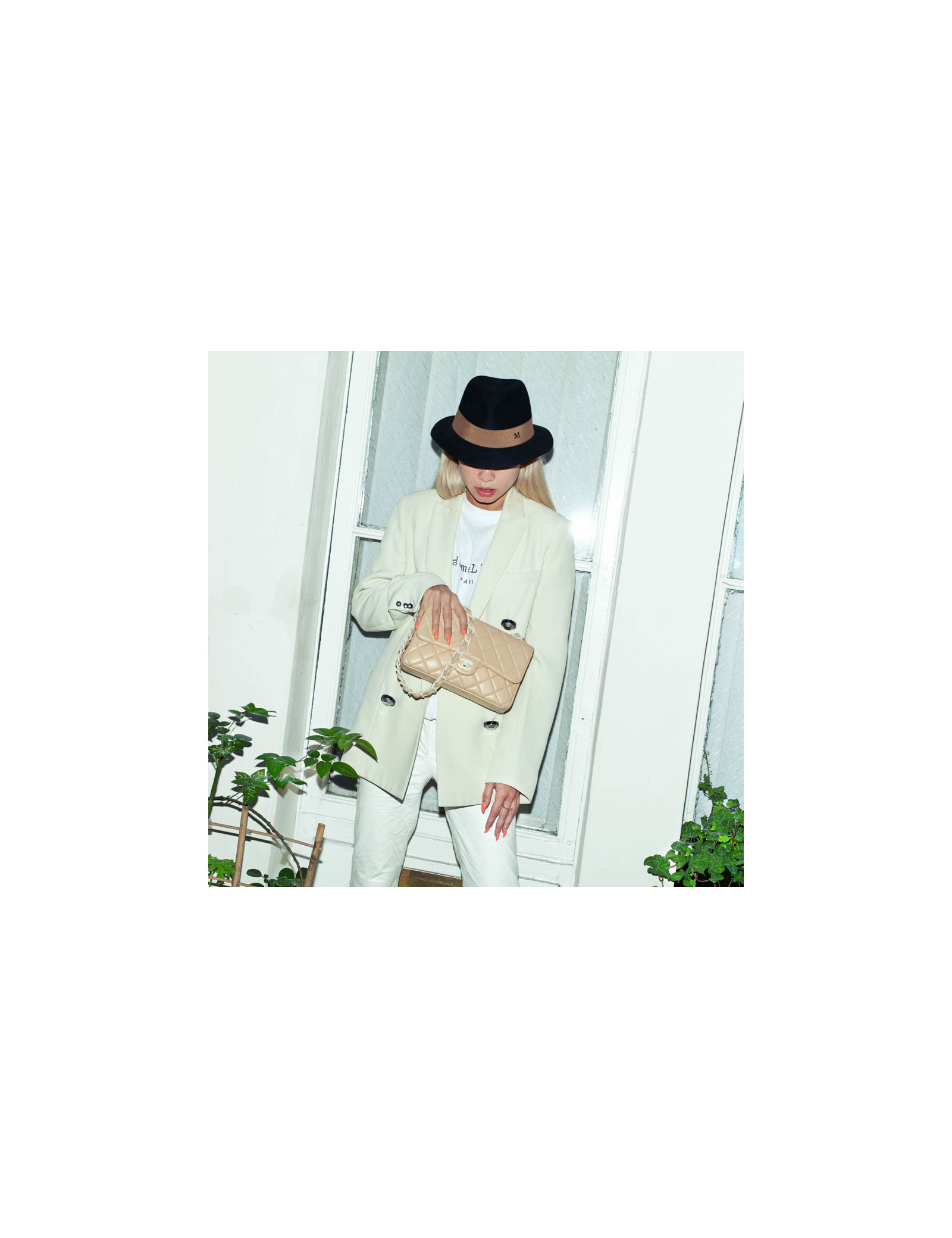 Last items in stock HEADWEAR Maison Michel hat MAISON MICHEL 35764 370.00 € MAISON MICHEL hat size Large Condition : very goodModel : Fedora VirgineMaterials : 100% rabbit hair felt, wool garnishColor : greySize : L - 60 cmDetails : wool ribbon, Maison Michel logo Add to cart
