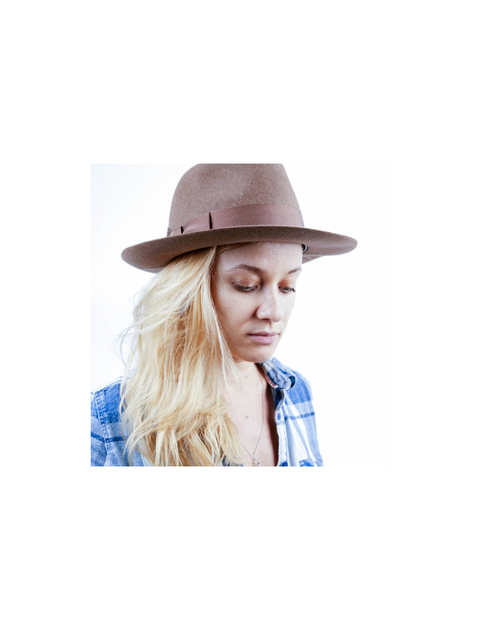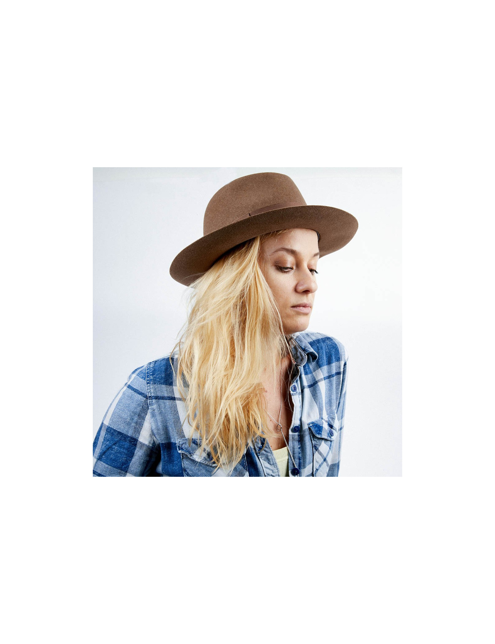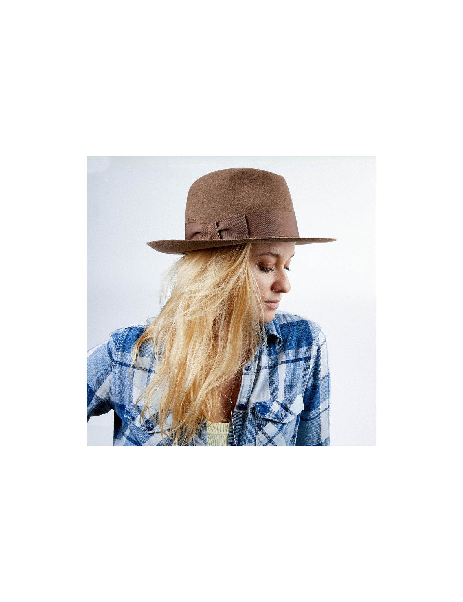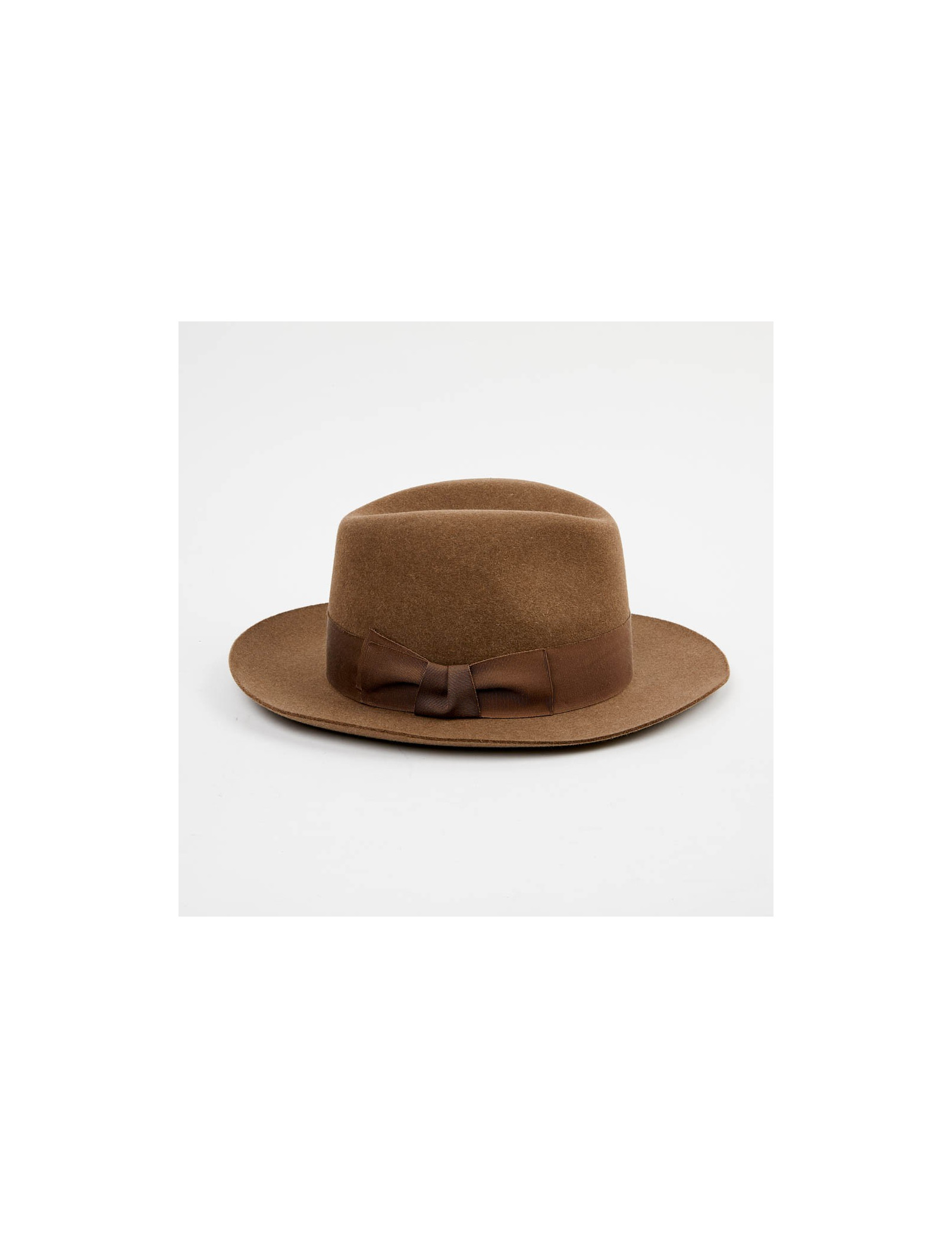 The inside border is made of gold calf leather. The lining is in silk. The outer border is grosgrain beige. This hat is suitable for a woman as well as a man. Its head circumference is 57 cm, the width of the borders is 7 cm and the height 12 cm.