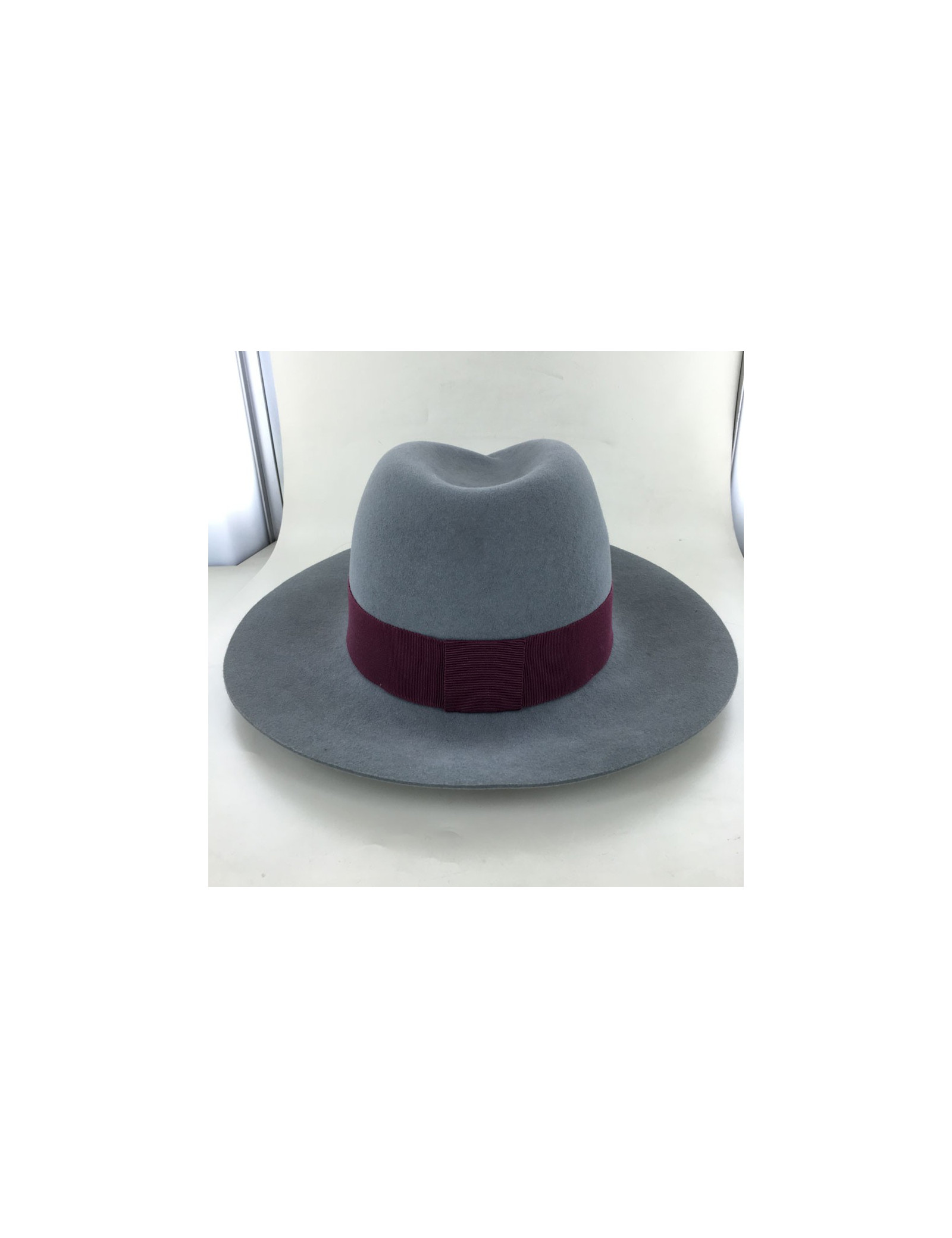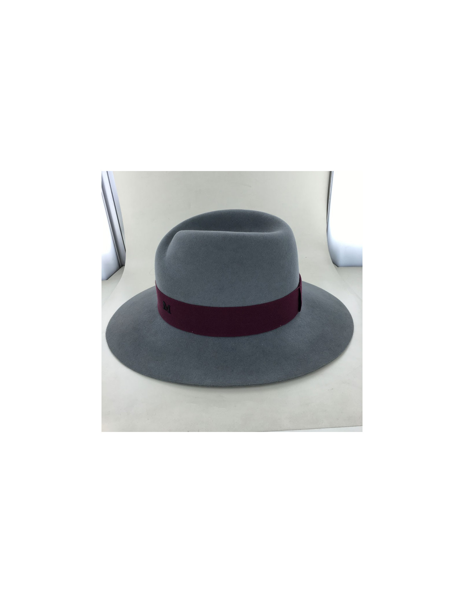 Felt Virginia MAISON MICHEL size S grey Burgundy grosgrain