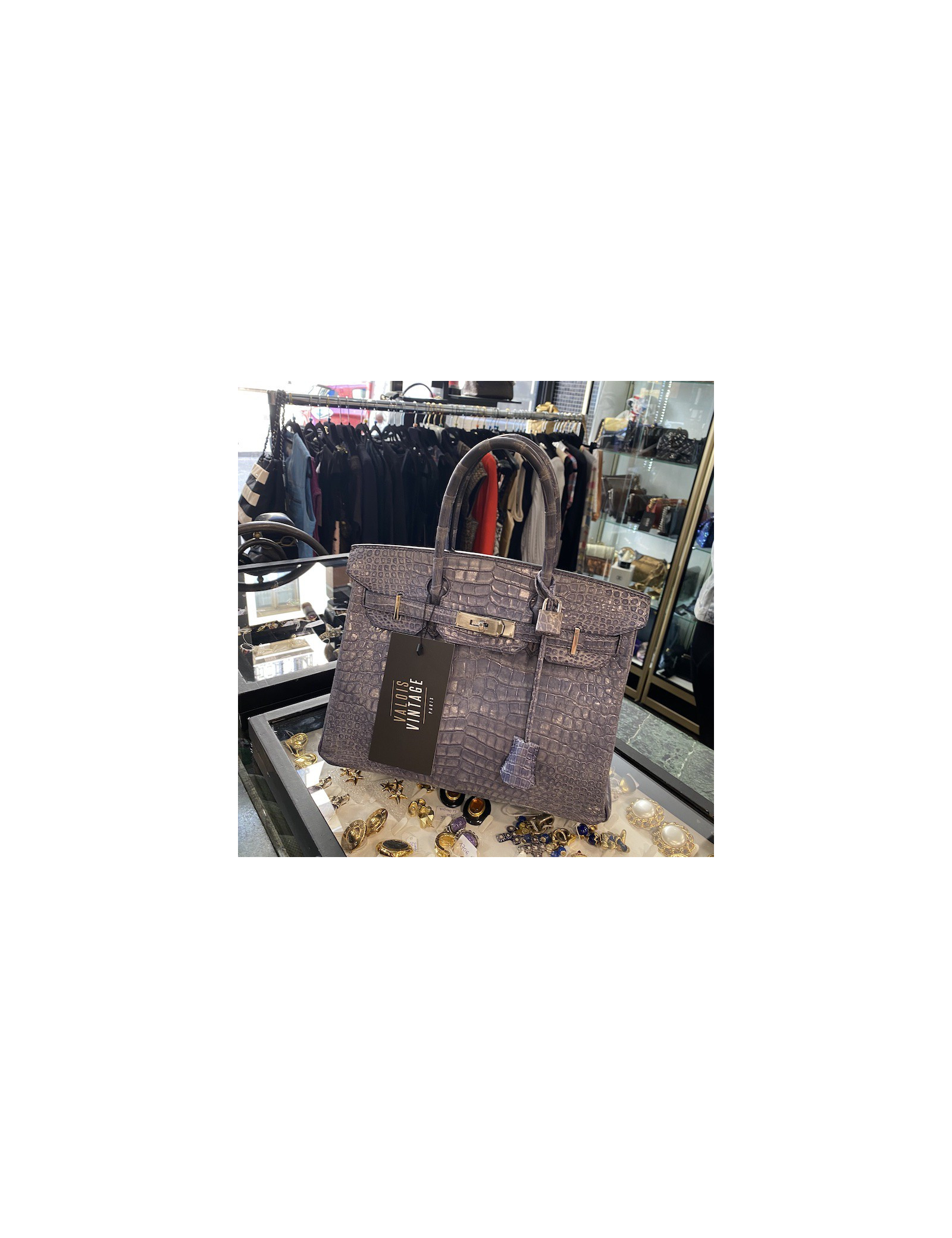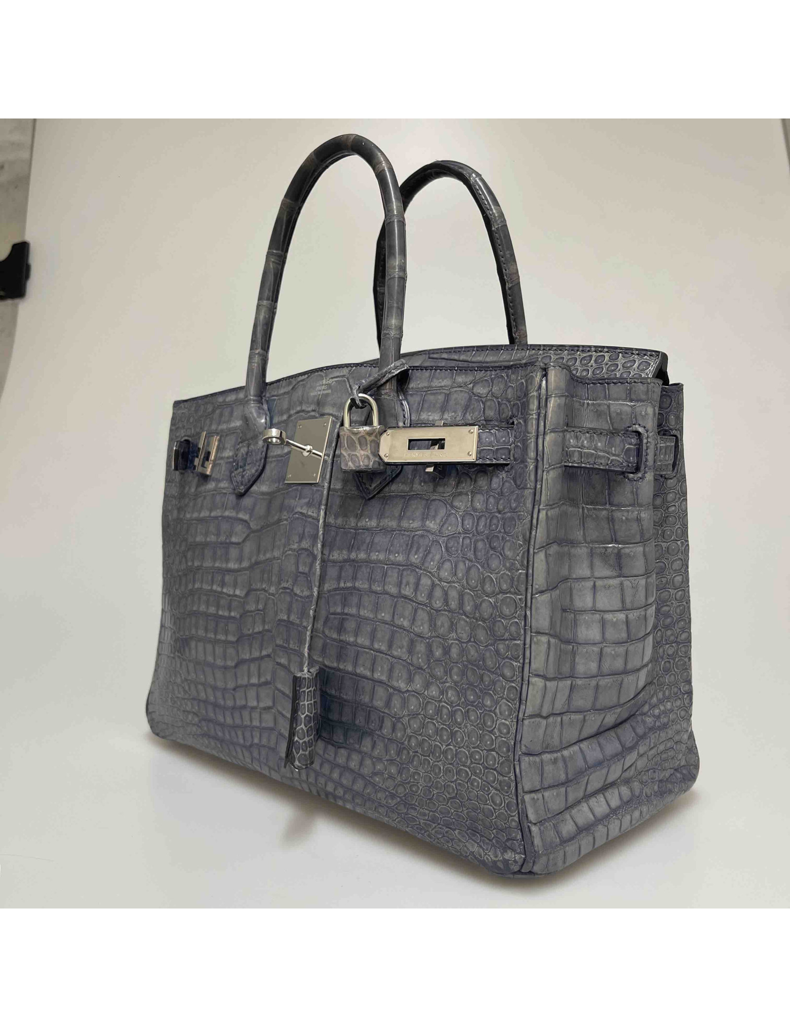 Last items in stock HERMES BIRKIN HERMES Birkin 35 Porosus crocodile Mykonos blue HERMES 31537 75,000.00 € HERMES Birkin 35 Porosus crocodile Mykonos blue Condition : very goodMade in FranceModel : BirkinSize : 35Material : Porosus crocodile leatherColor : Mykonos blueMeasurements : 35 x 28 x 18 cmLetter : R in the left interior accordion pleatYear : 2014Hardware :palladium silver finish metal Advantage Valois Vintage Paris : comes in its HERMES dustbag Add to cart