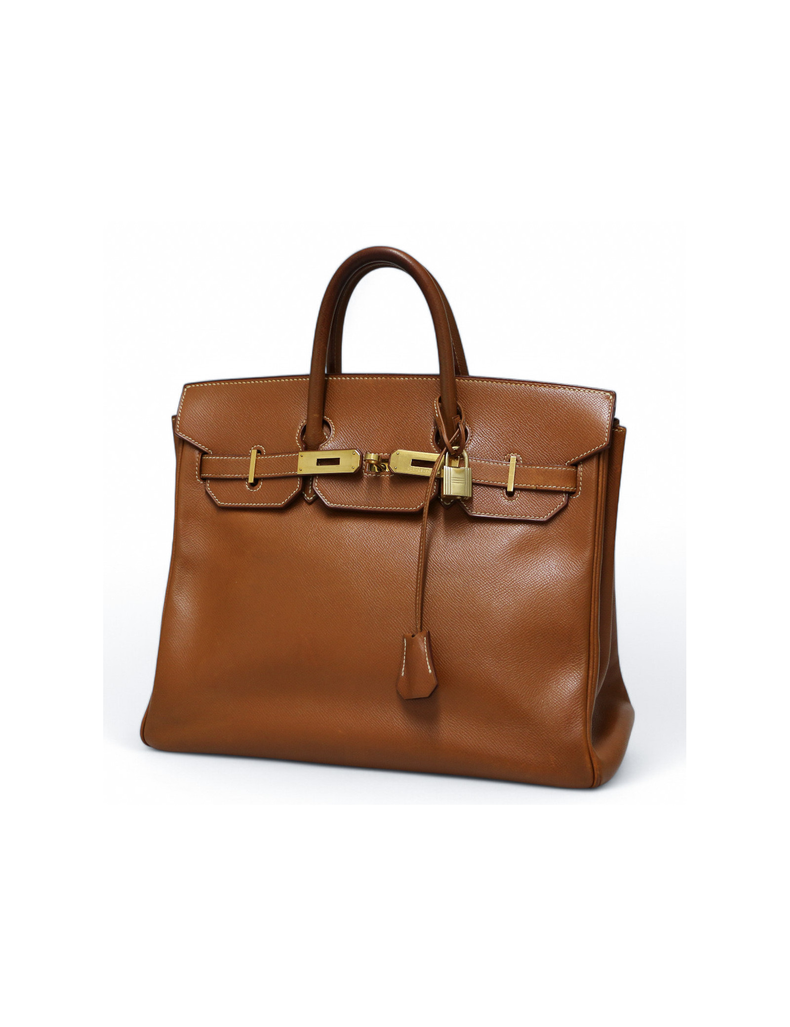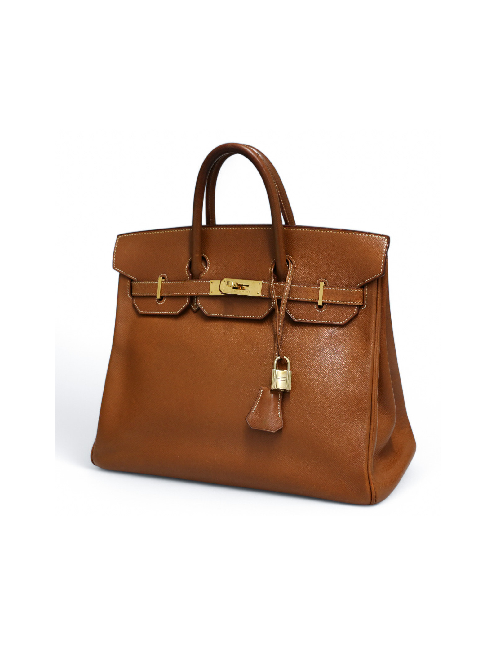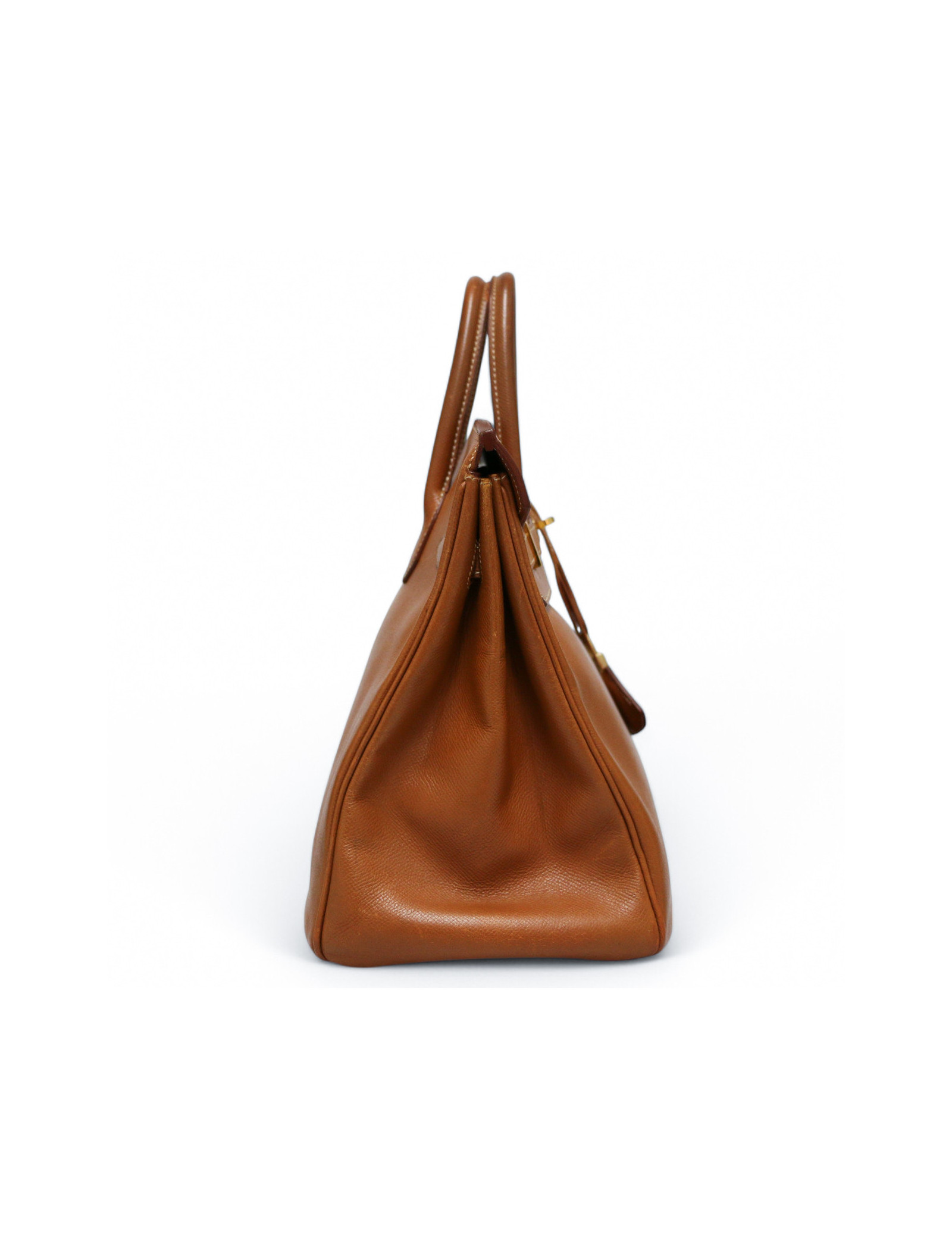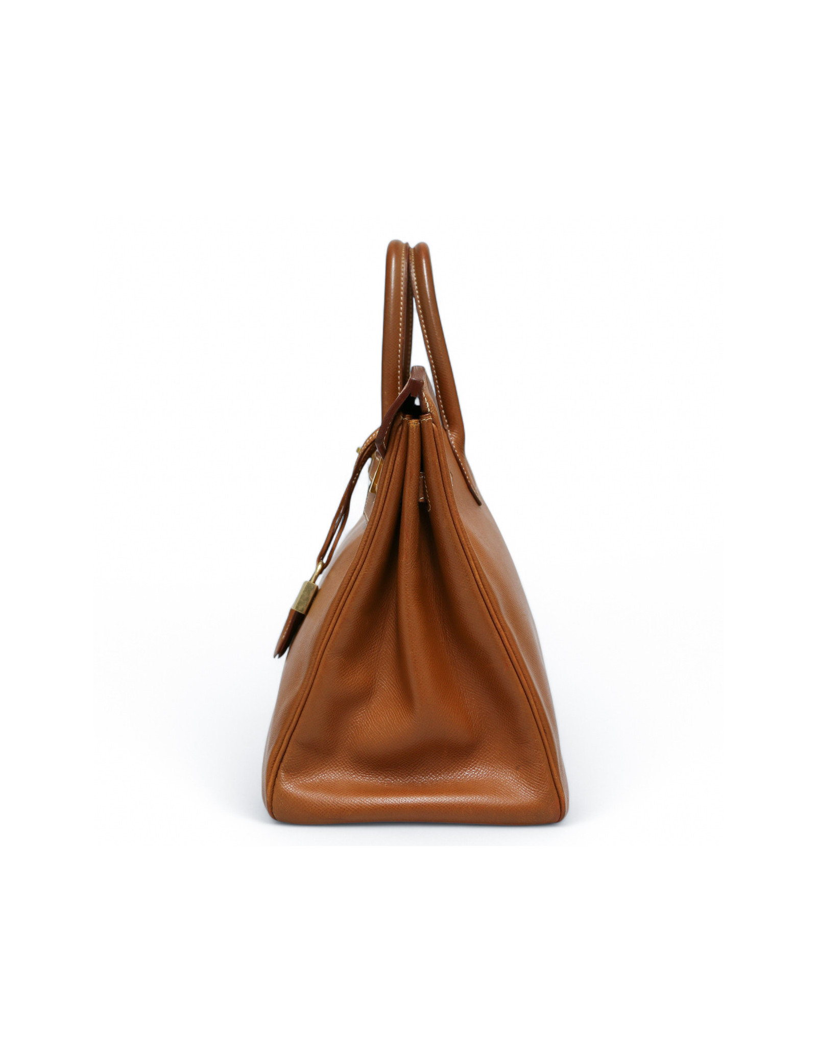 Last items in stock HERMES BIRKIN HERMES Birkin 35 HERMES 37319 15,500.00 € Vintage Hermès Birkin 35 pumpkin color with gold hardware Condition: very goodMade in FranceModel: Birkin 35Material : grained leatherInterior : leather Color : pumpkinDimensions: 35 x 25 x 18 cmLetter : A in a squareYear: 1997Hardware: gilded metal (micro-scratches)Details : This bag is in like-new condition, with pull-tab, bell, keys (x2) and padlock.... Add to cart