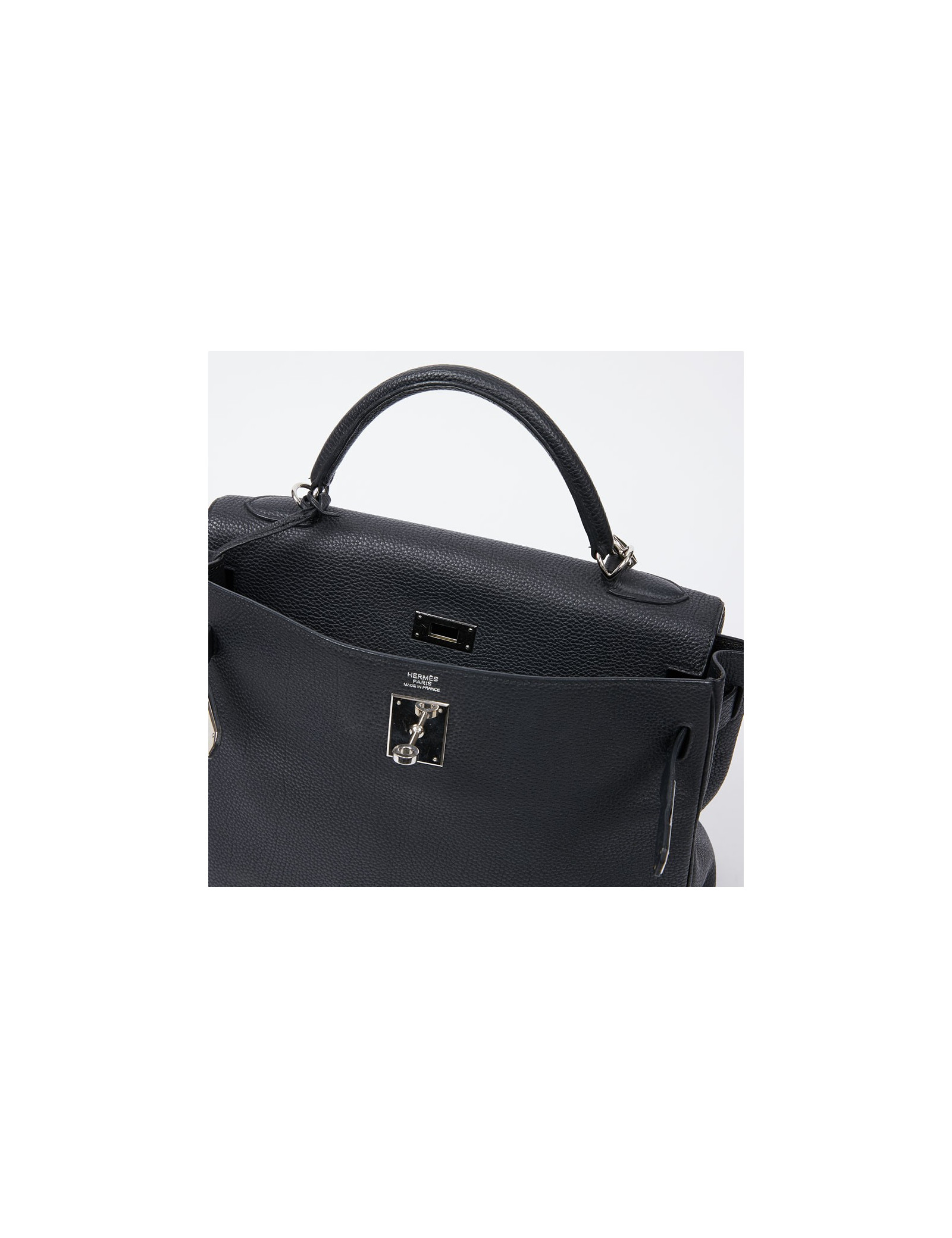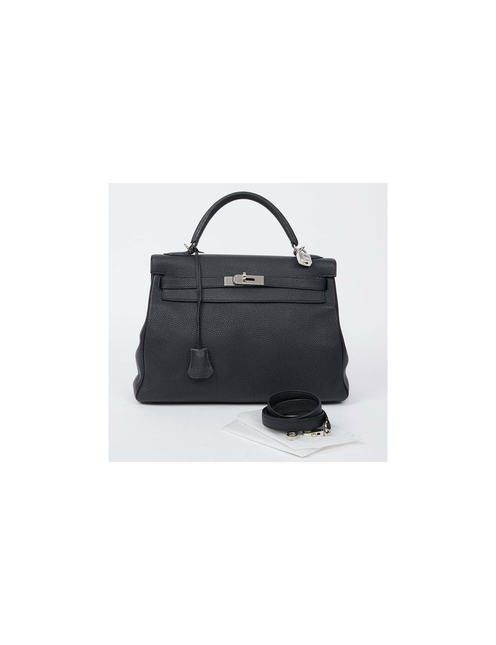 Sold HERMES KELLY Kelly 40 HERMES Clémence young bull leather HERMES 35951 16,500.00 € Kelly 40 HERMES II blue jeans Condition : very goodMade in FranceCollection : Kelly II 40Gender : unisexMaterial :Clémence young bull leatherLining: blue leatherColor : blue ean's HermèsMeasurements : 40 x 28 x 15 cmStrap (removable) : 70 cmLetter : I in a squareYear: 2005Hardware : palladium silver finish metalDetails : zipper, bell, padlock and keys... View