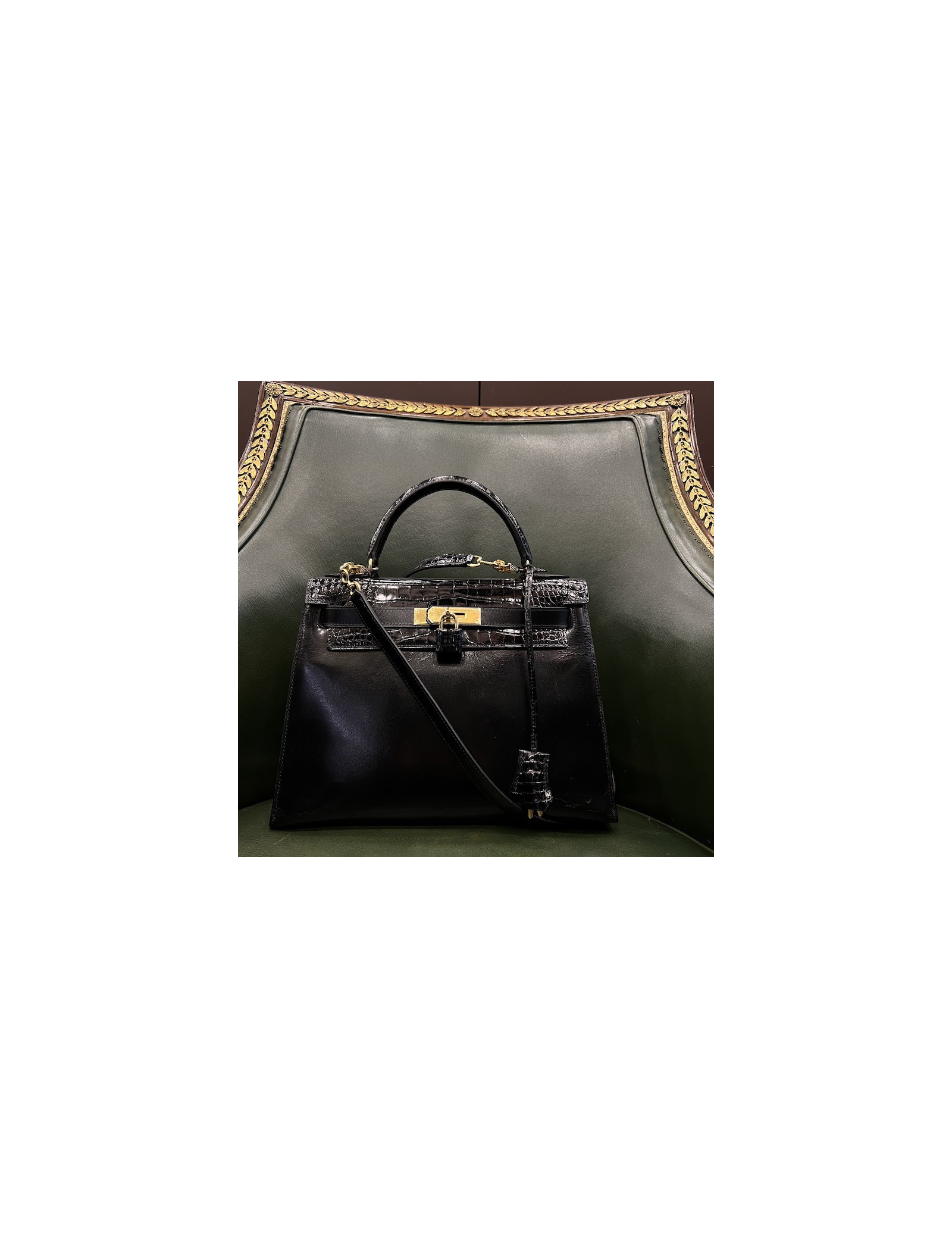 Hermes Kelly 28 sellier vintage Box leather and crocodile