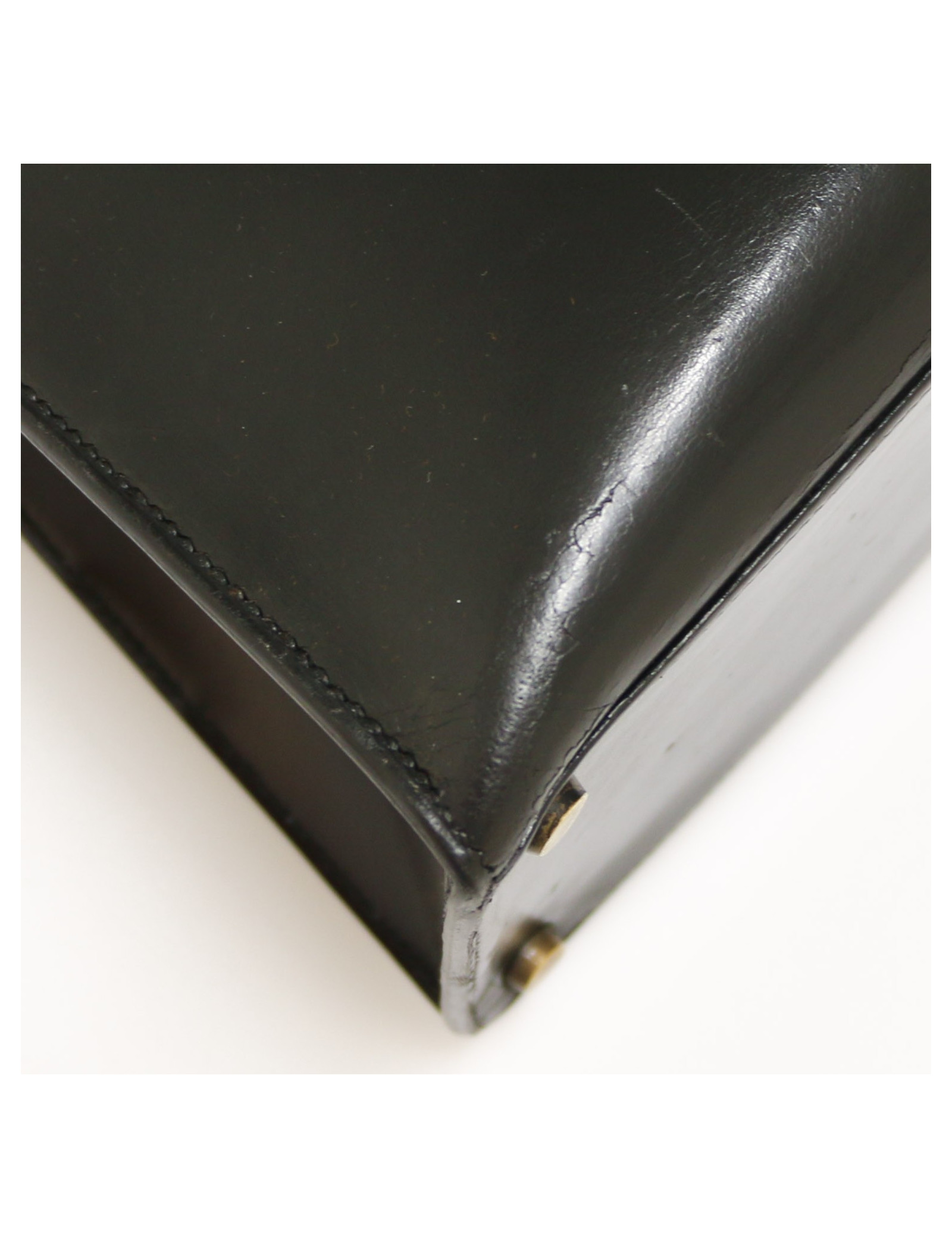 HERMES Kelly 28 Vintage black Box leather and crocodile