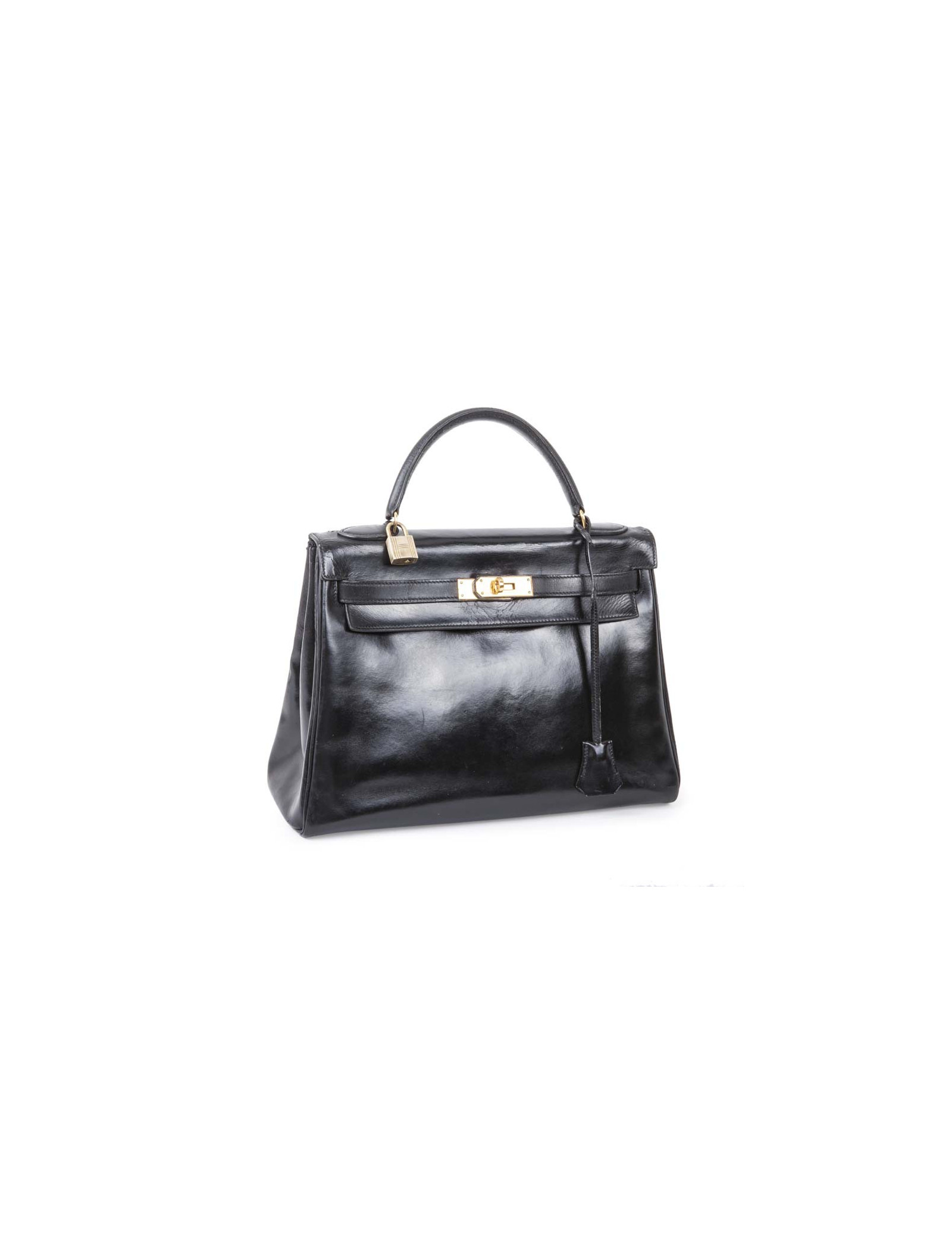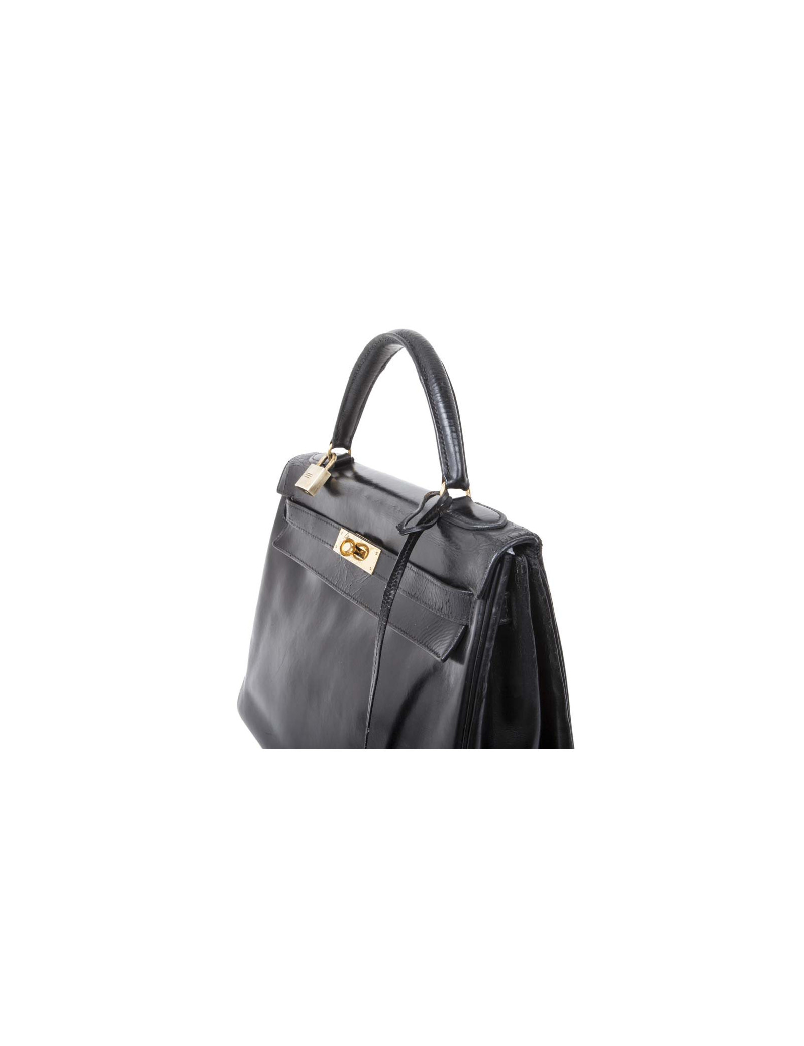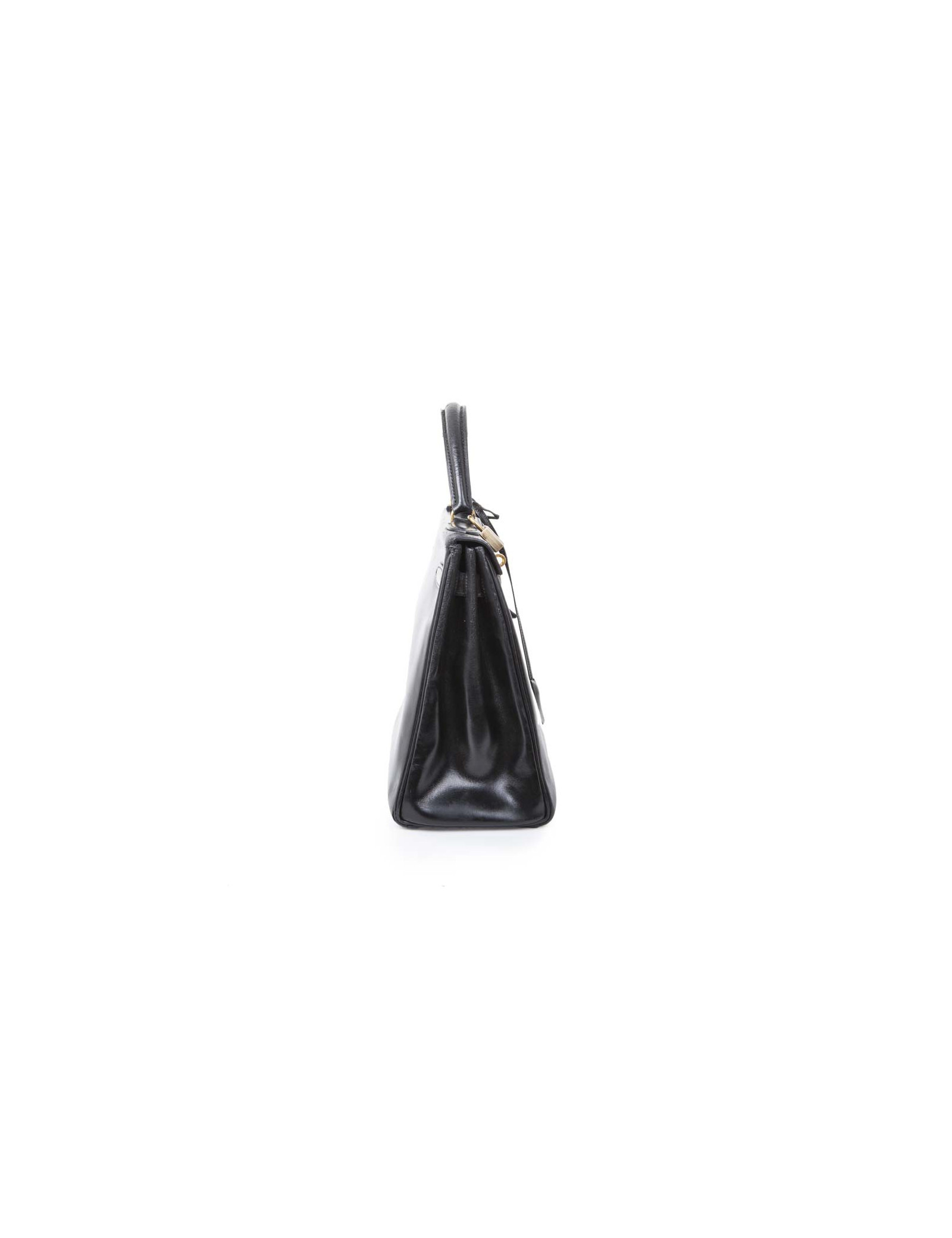 Hermès vintage Kelly 32 bag in black box leather. Stamp Z (year 1970).