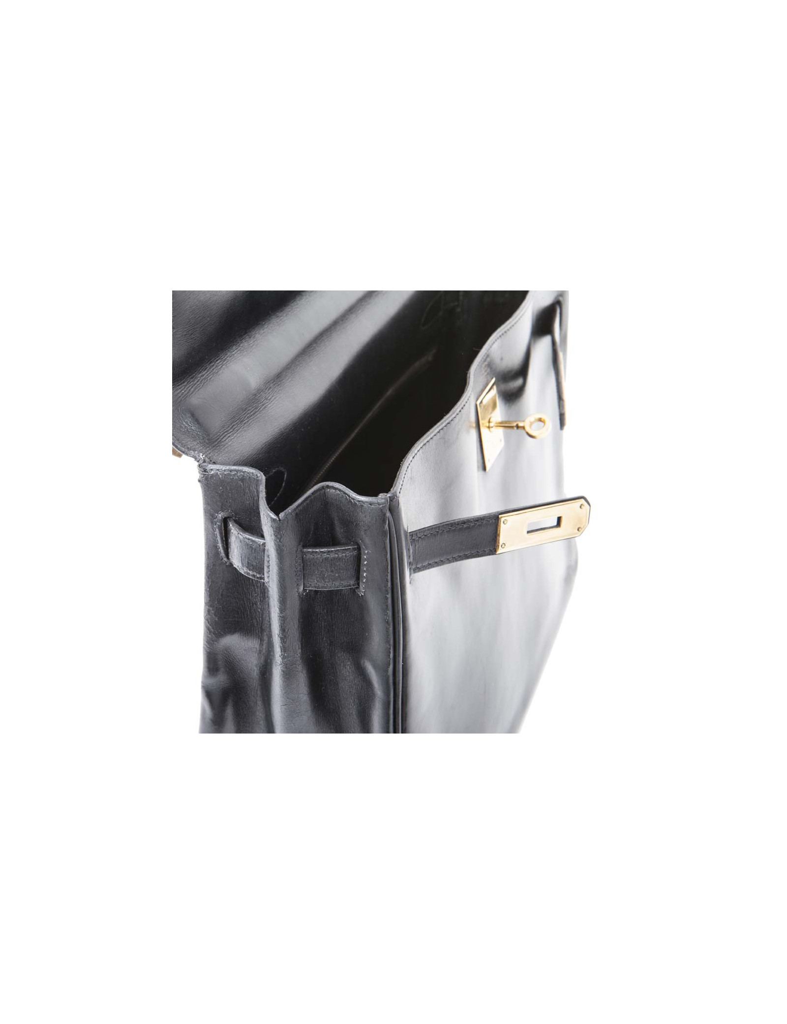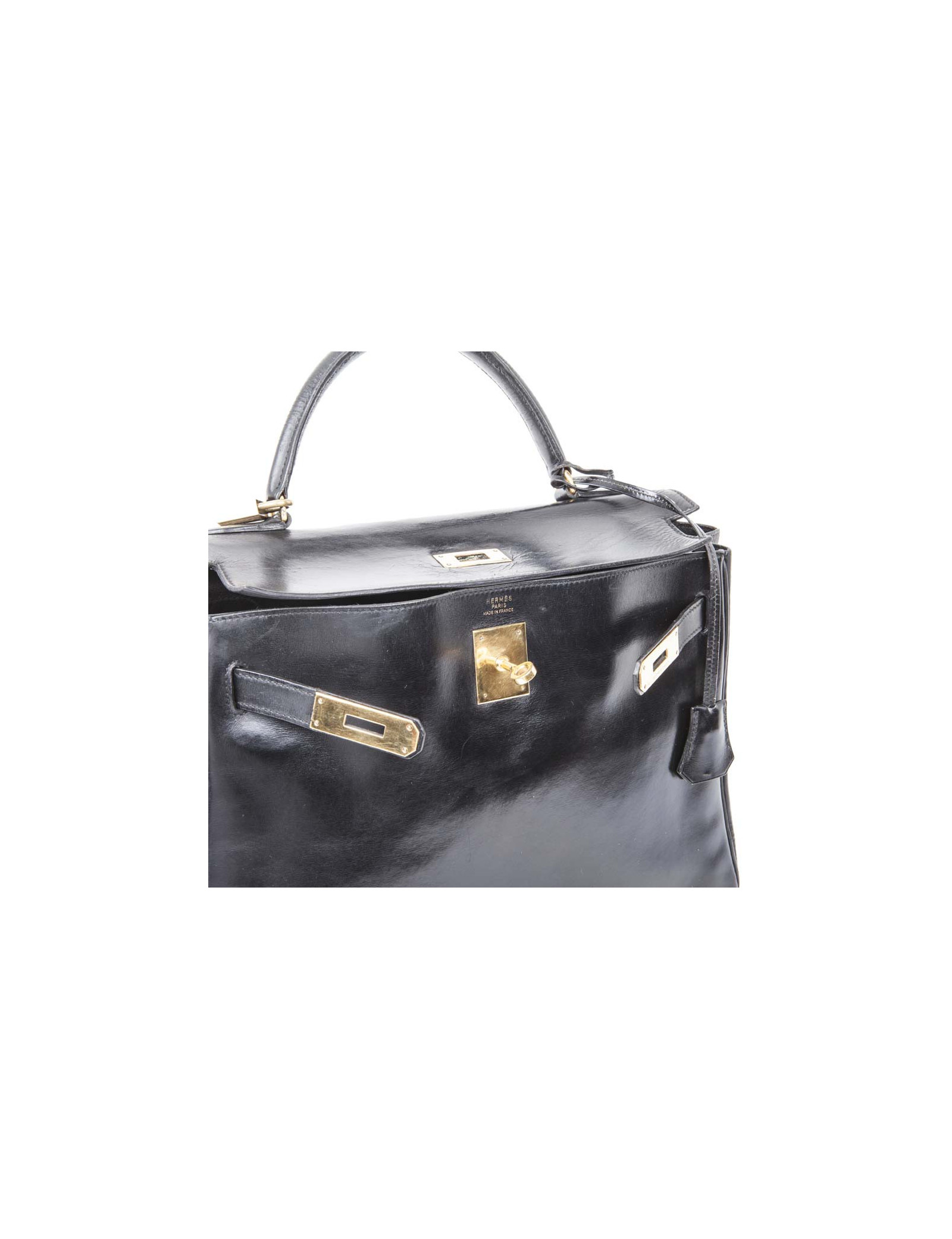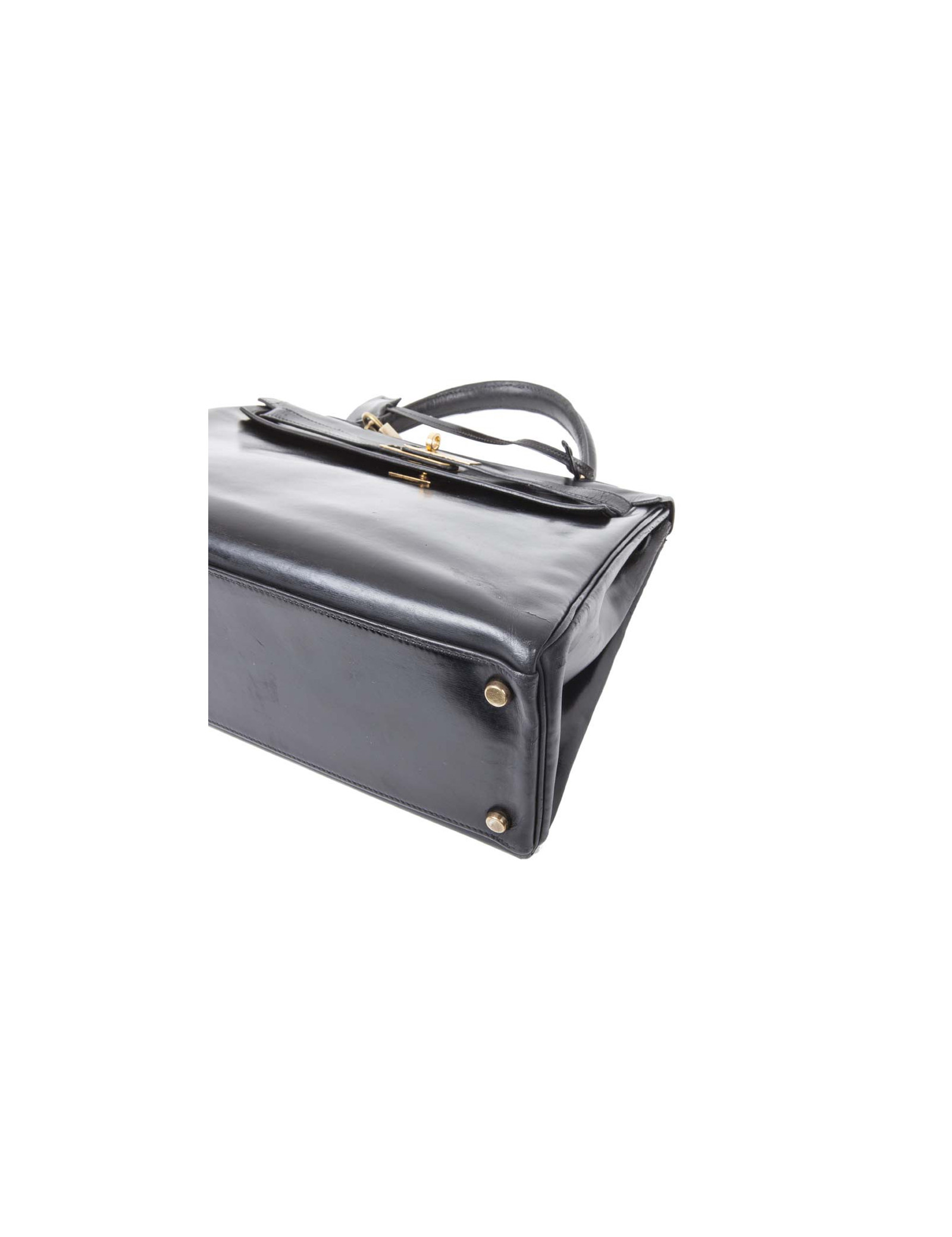 Hermès vintage Kelly 32 bag in black box leather. Stamp Z (year 1970).