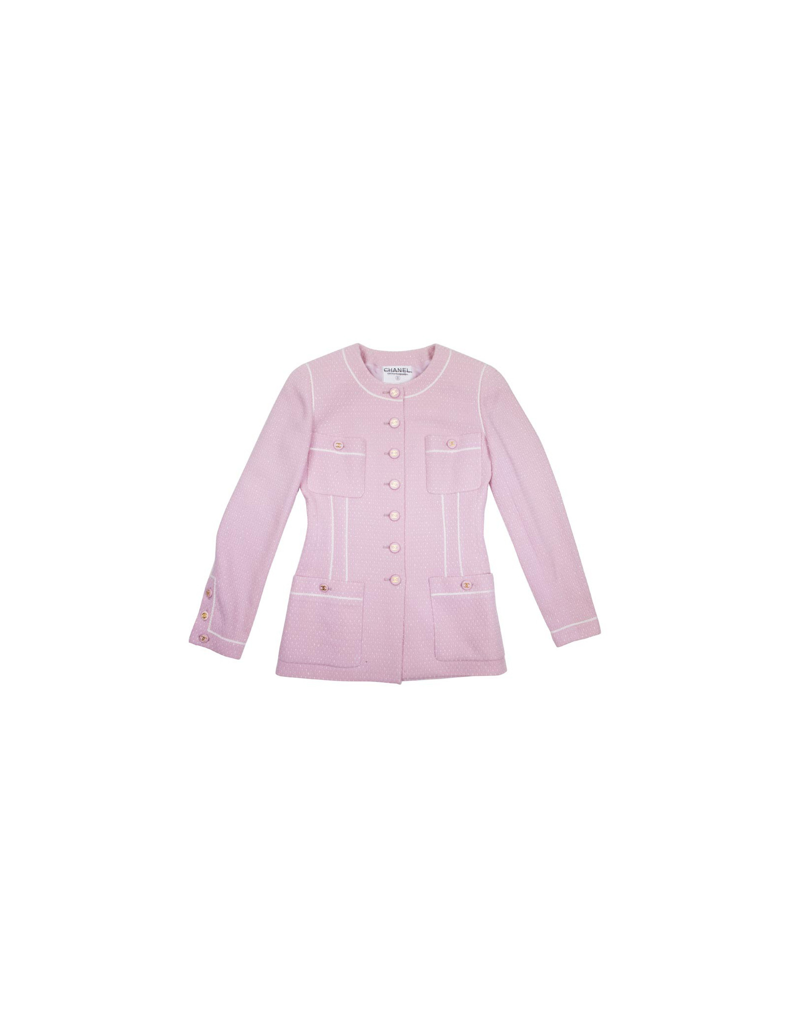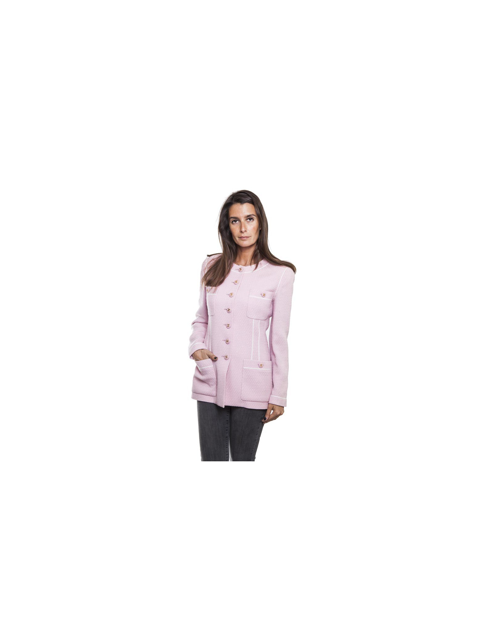 Sold JACKETS CHANEL Jacket, size 42 FR Collector CHANEL 33192 3,900.00 € CHANEL jacket, size 42FR by Karl LAGERFELD Ready to wear Spring/Summer 1994 Condition : very goodMade in FranceSize: 42FRMaterials : tweed, silkLining : light blue monogram silkColors : aqua, beige, blackMeasurementsShoulder: 40 cm, underbust: 50 cm, height: 79 cm, sleeve length: 56 cm, wrist: 26 cmDetail : vintage 1994, two patch pockets, flared cut, to... View