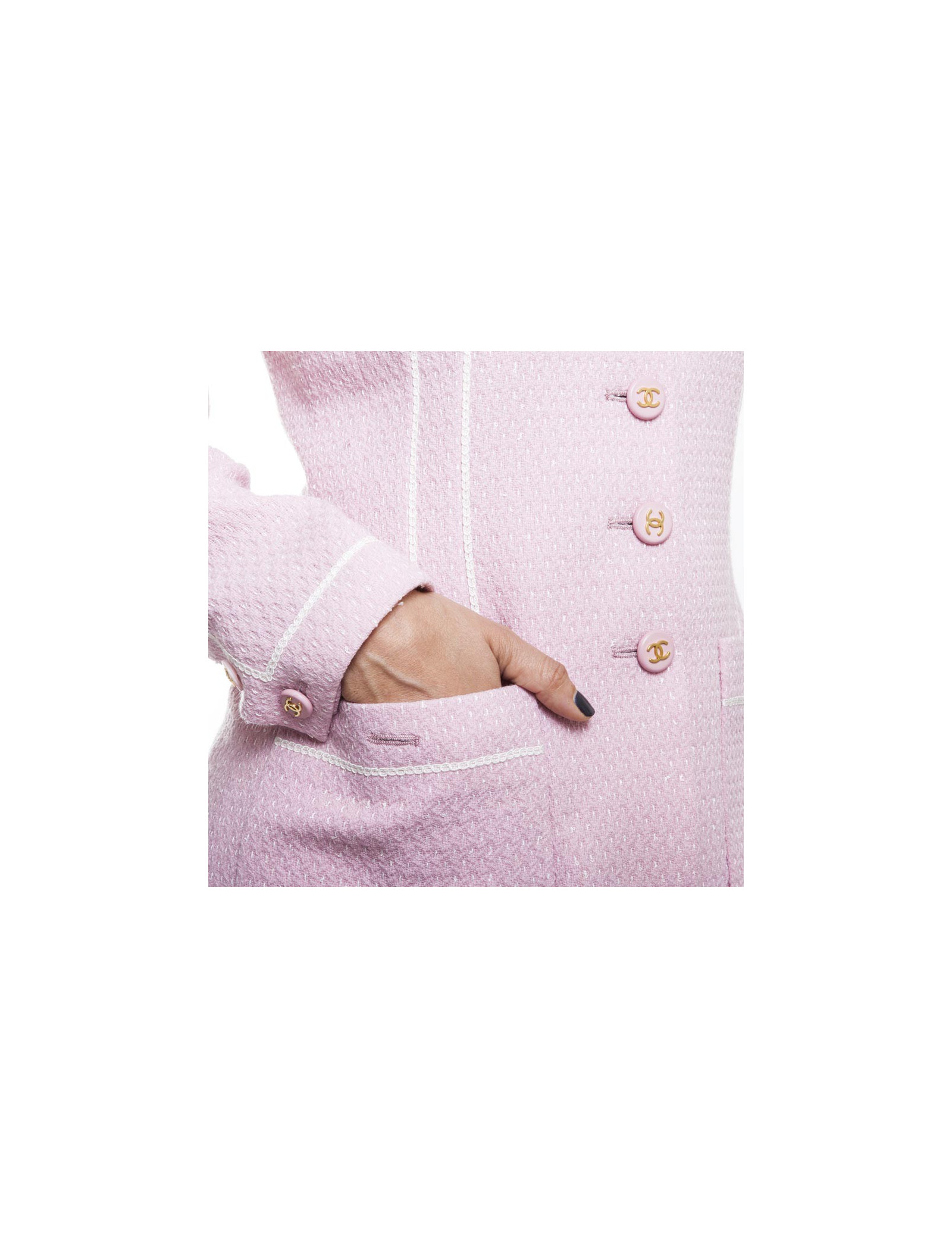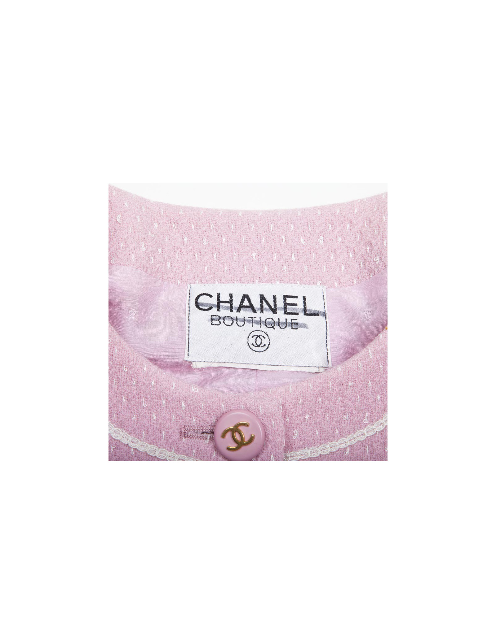 New Last items in stock JACKETS Veste Chanel courte Lesage CHANEL 42673 6,300.00 € Short Chanel jacket size 38 Condition : very good conditionCountry of manufacture : FranceSize : FR 38Material : tweed, sequinsLining : CC silkColor : burgundy, black, goldFlat measurements : shoulder width 40 cm, underarm width 44 cm, sleeve length 63 cm, total length 48 cm, wrist circumference 24 cmYear : Fall 2002Details : Chanel jacket from the Fall... Add to cart