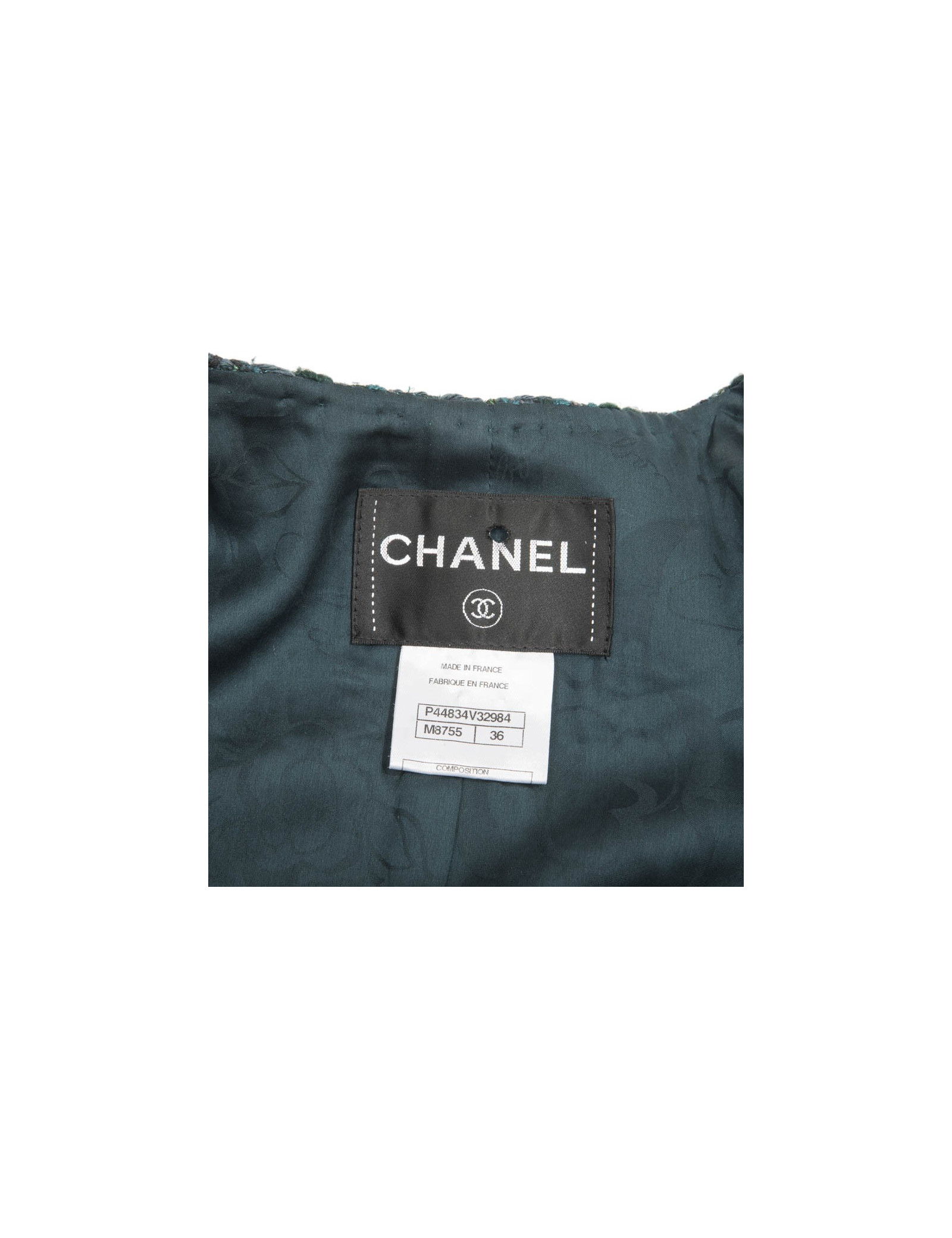 CHANELjacket in green tweed size 36EU