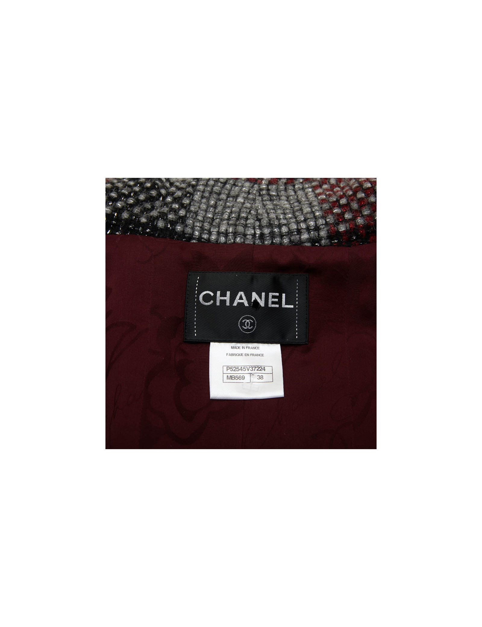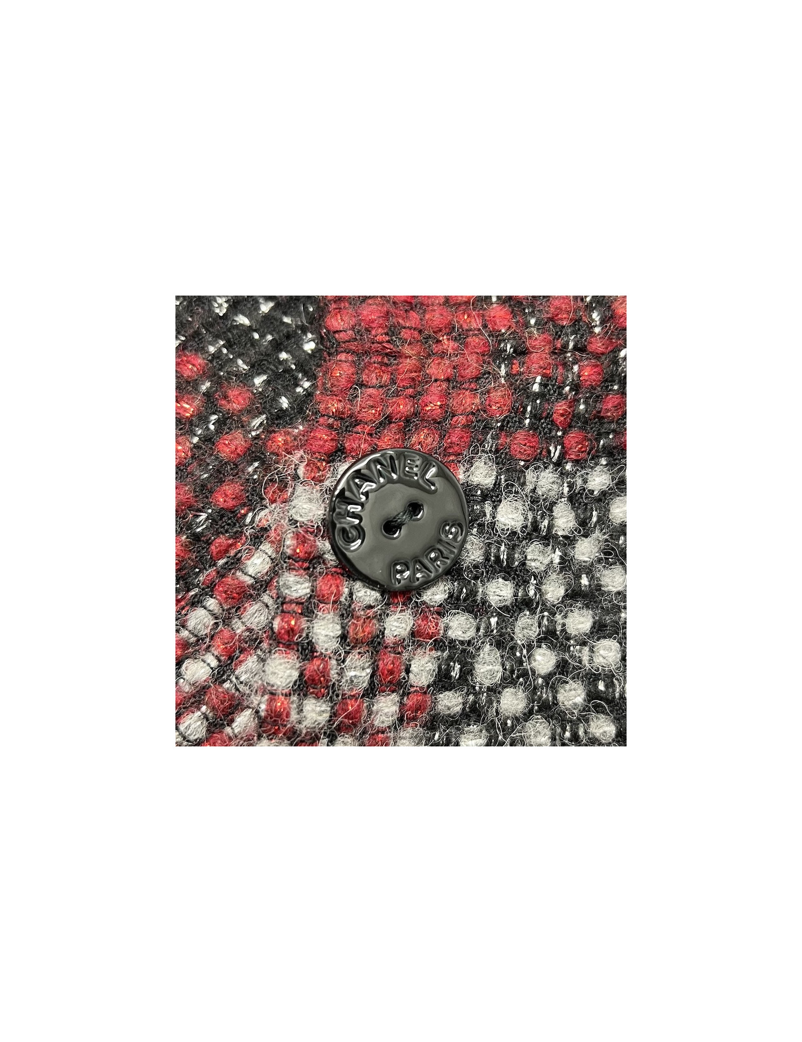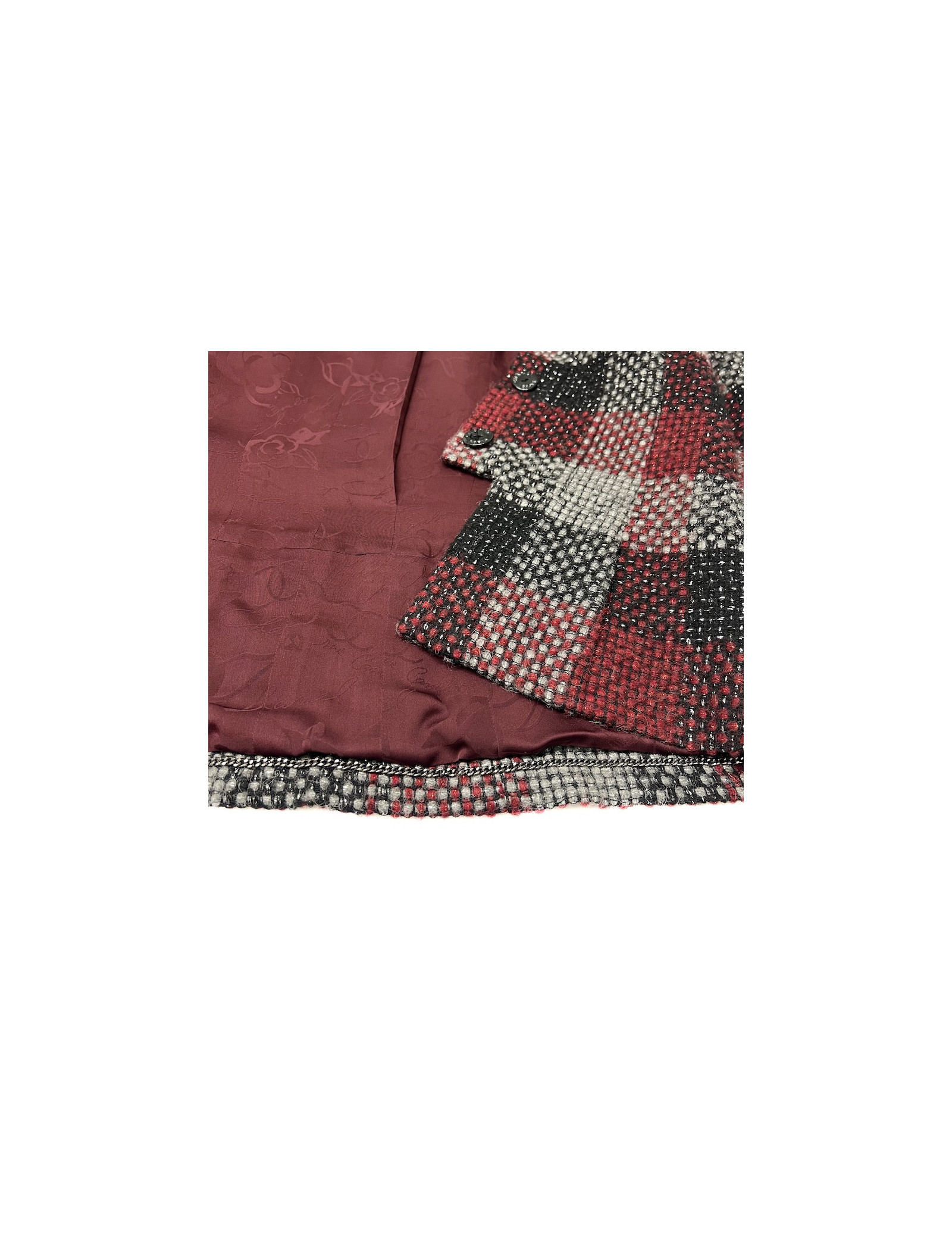 CHANEL jacket in red, silver and black check tweed size 38FR