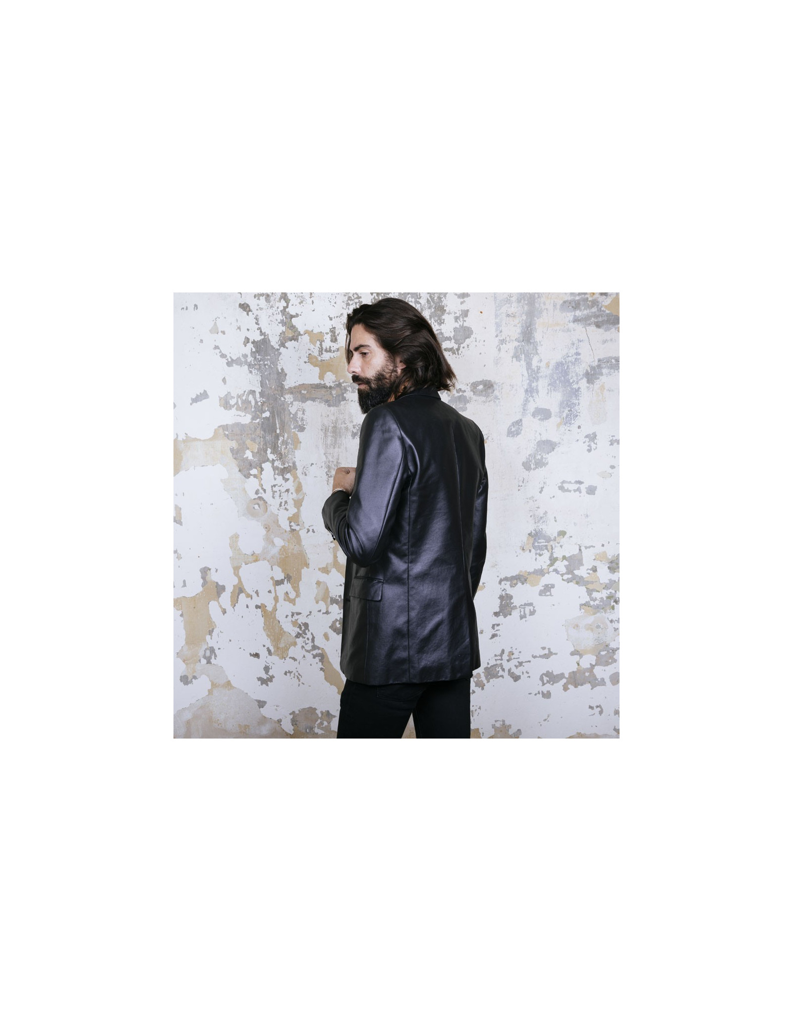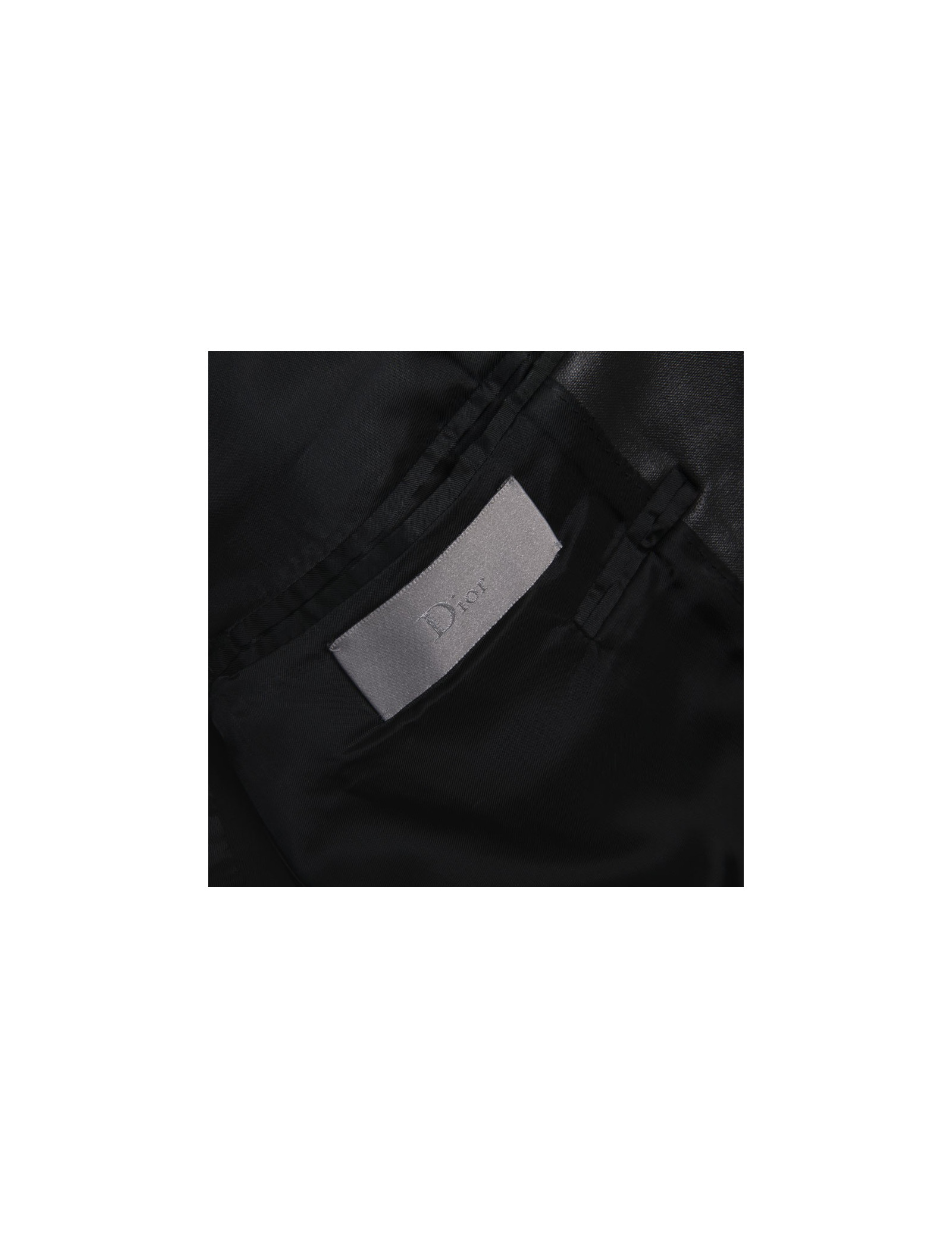 Dior blazer in black coated cotton canvas. Closing with two buttons on the front, and three buttons on each sleeve. Three flat outer pockets, one zipped, and other interior flat pockets. Inner lining in black fabric.