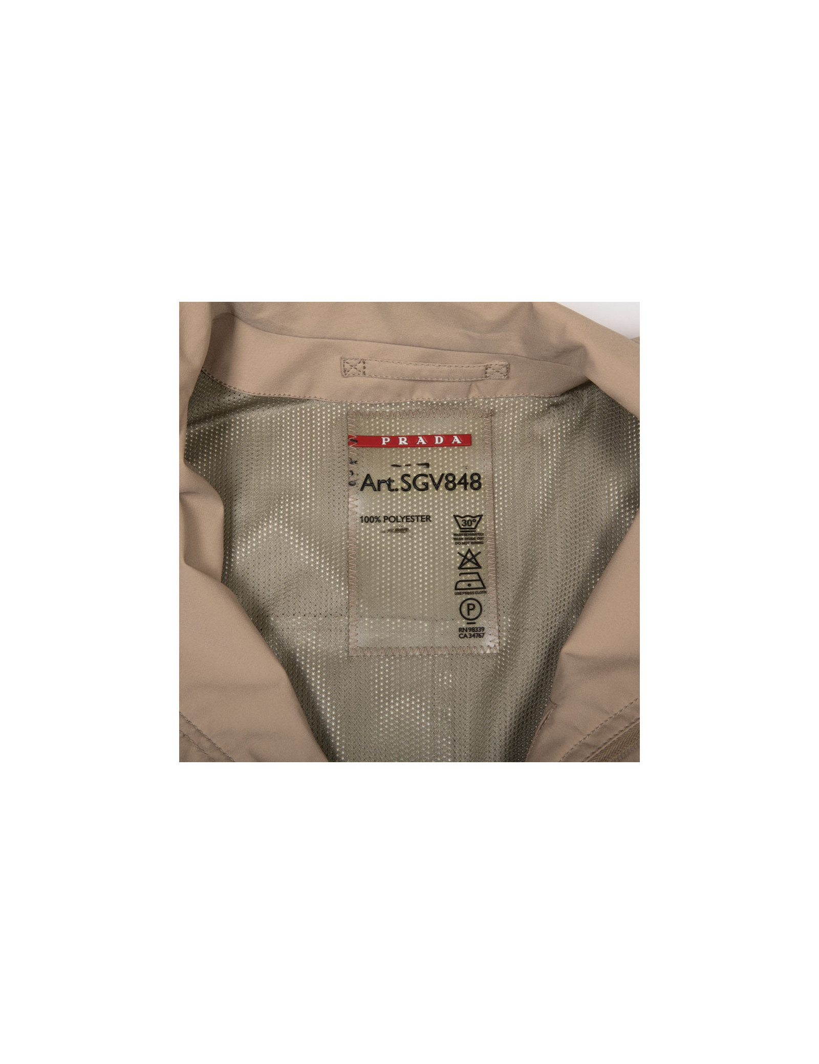 Prada windbreaker jacket in beige toile for men. size 50 IT. Zip closure with double zips and snaps.