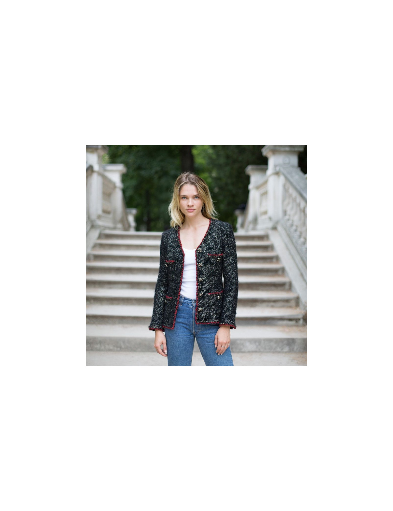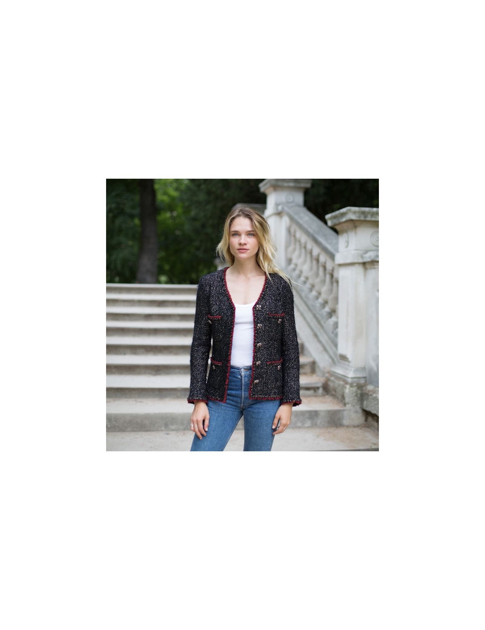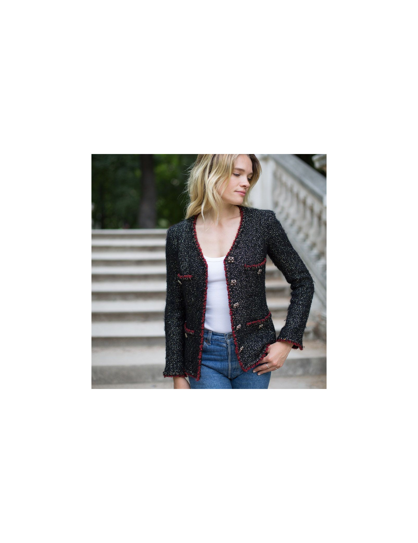 Last items in stock JACKETS Chanel Vintage red jacket CHANEL 30629 2,990.00 € Chanel Vintage coral jacket Condition : very goodMade in FranceMaterial : woolColor : coralSize: 36FRMeasurements : shoulders 42 cm, sleeve length 54 cm, total height 78 cm, armpit width 48 cm, wrist circumference 28 cmLining : silk Add to cart