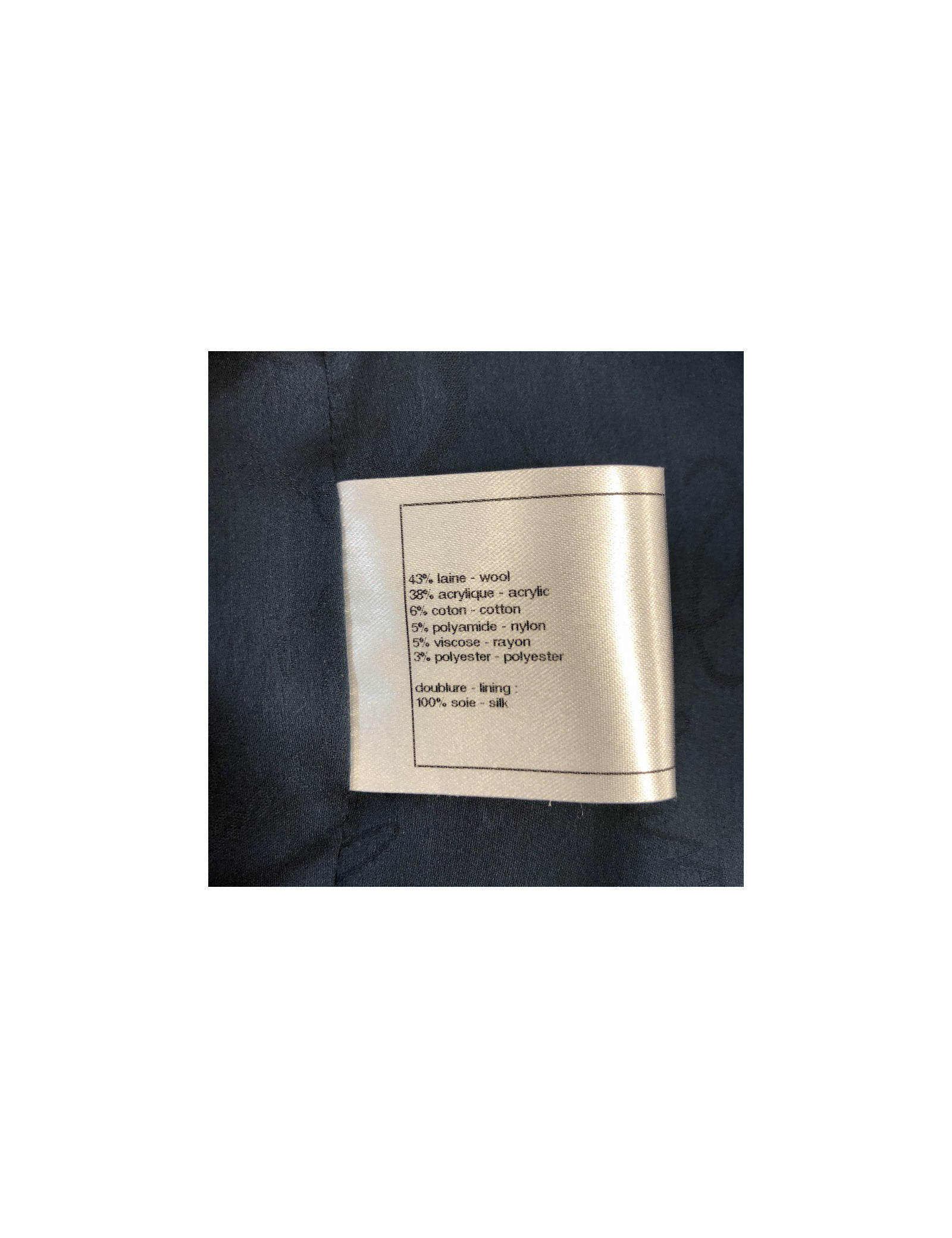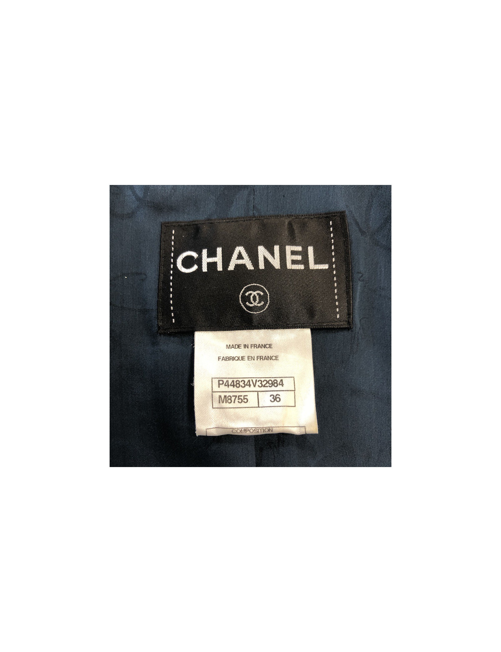 in details This CHANEL T36 CHANEL jacket is made in France. It is made from a blend of wool, cotton, acrylic, viscose, polyamide and polyester. The flat dimensions are: sleeve length 39 cm, shoulder width 42 cm, total length at the collar 48 cm, wrist circumference 43 cm.