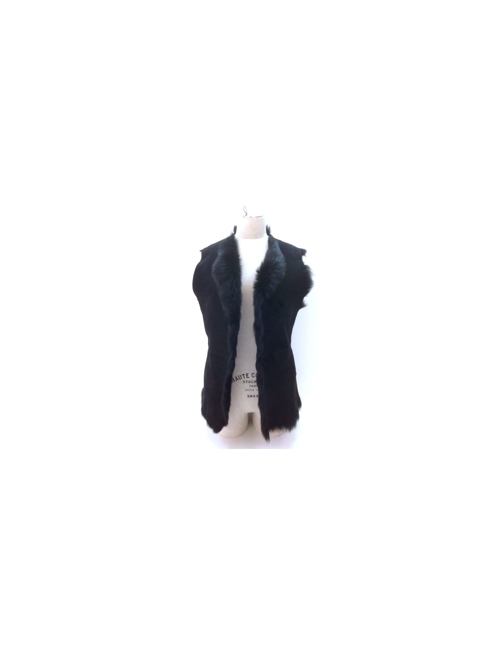 Jacket without sleeves in returned black Sheepskin. It is reversible. One size fits all.