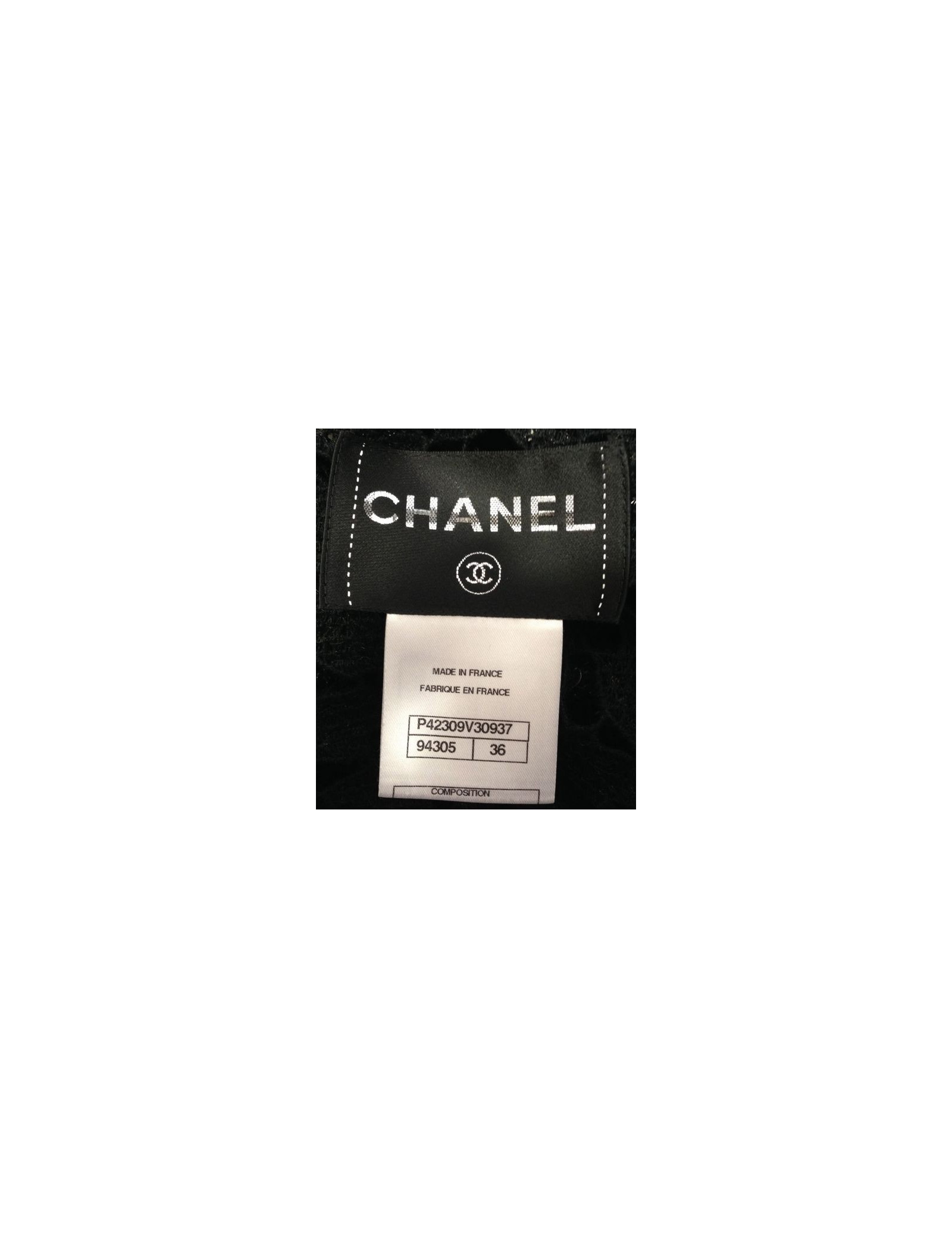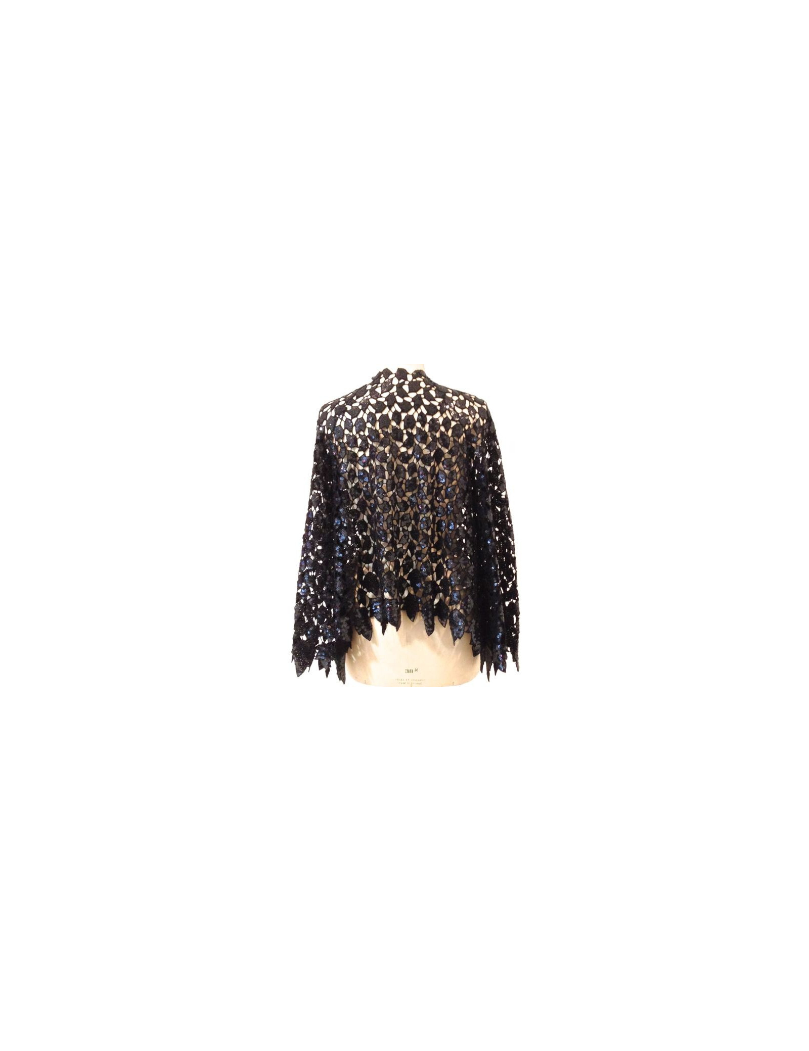 CHANEL jacket with mesh lace (lace effect) and black sequins. This sublime jacket worn open, as above, on a dress or a top. This jacket is brand new. Made in France.