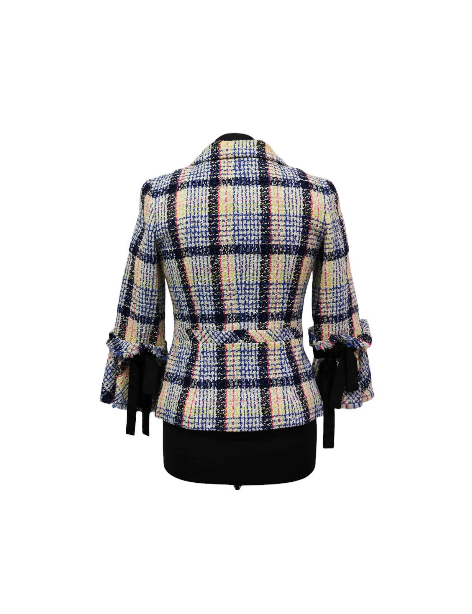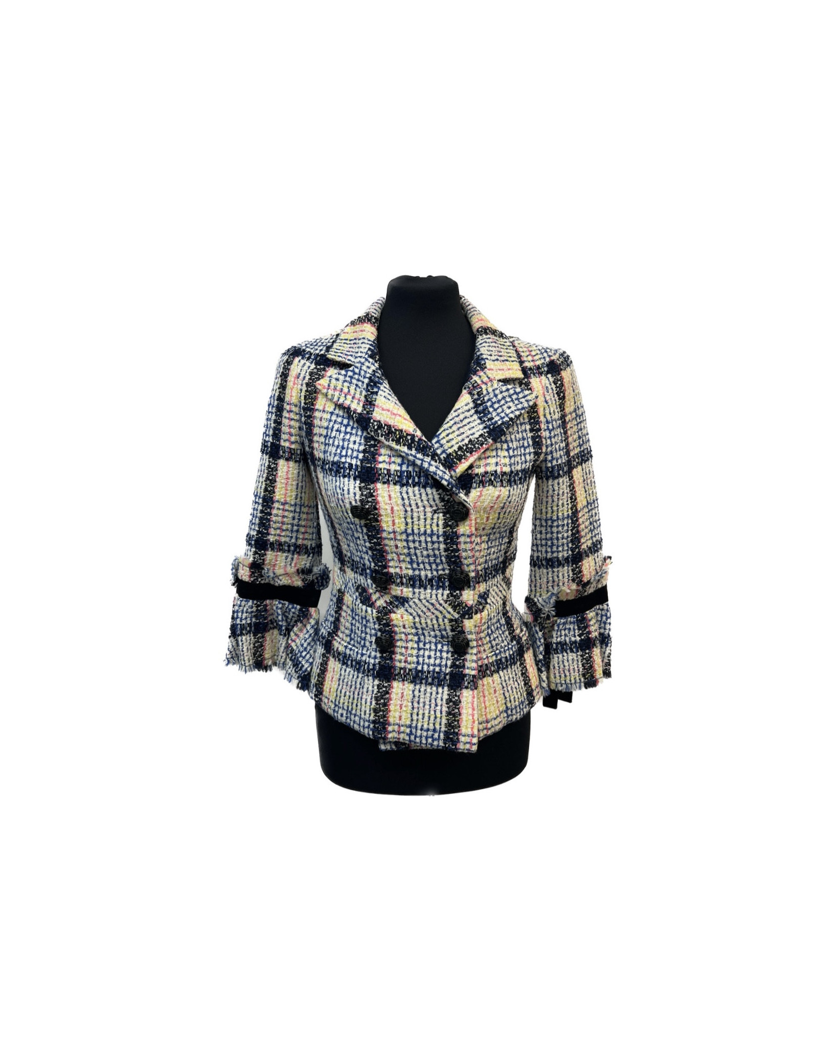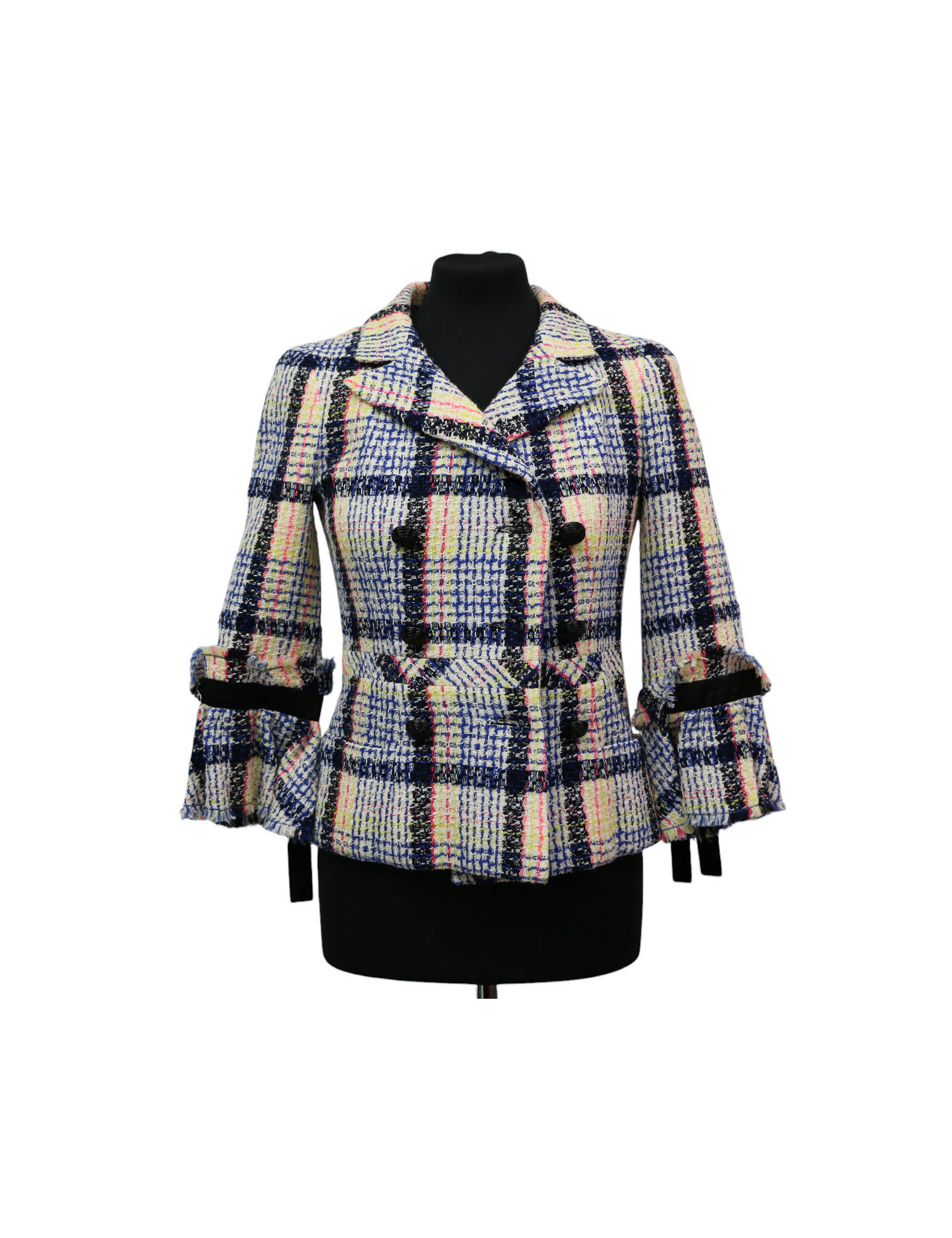 Last items in stock JACKETS CHANEL tweed jacket, size 38FR CHANEL 31337 2,800.00 € CHANEL tweed jacket, size 38FR Condition : very goodSize : 38FR Colors : green, multicolorMaterials: tweed, silkMeasurements:shoulders: 40cm x underbust: 50 cm Year: 2000 Add to cart