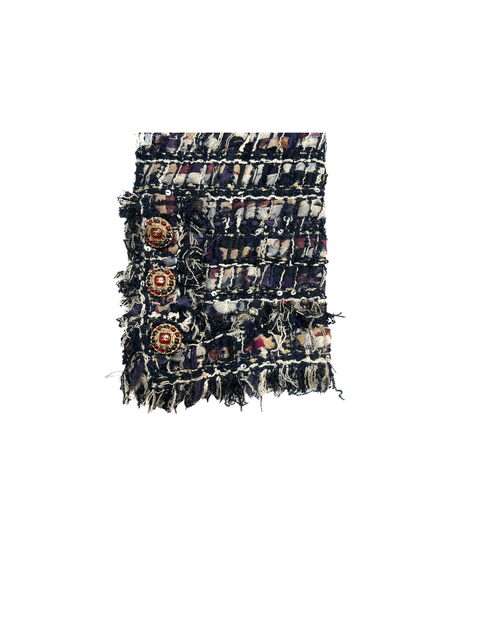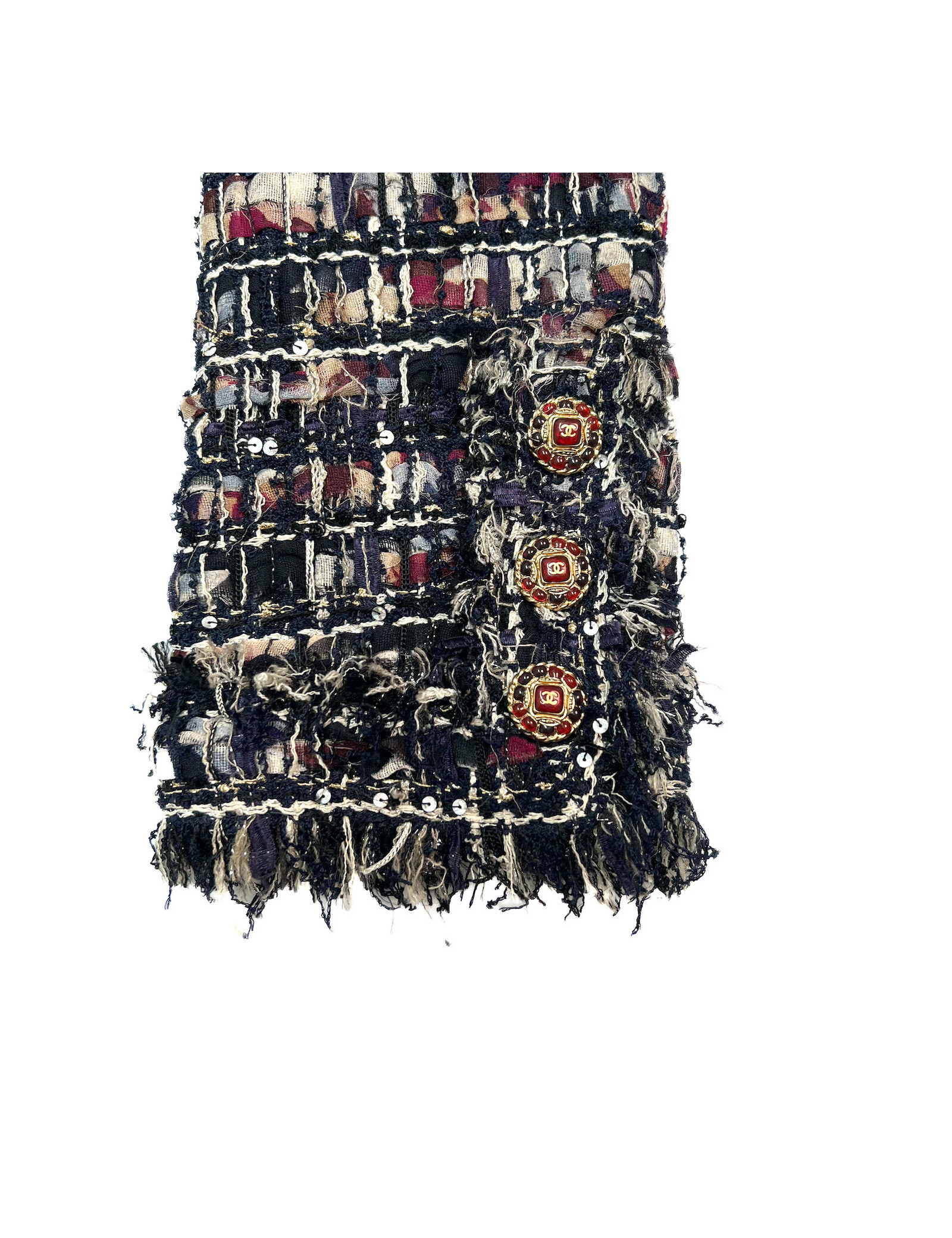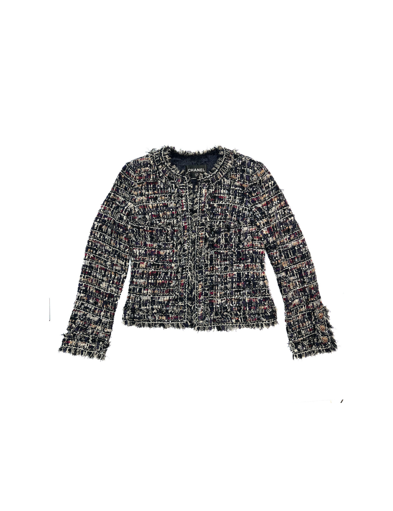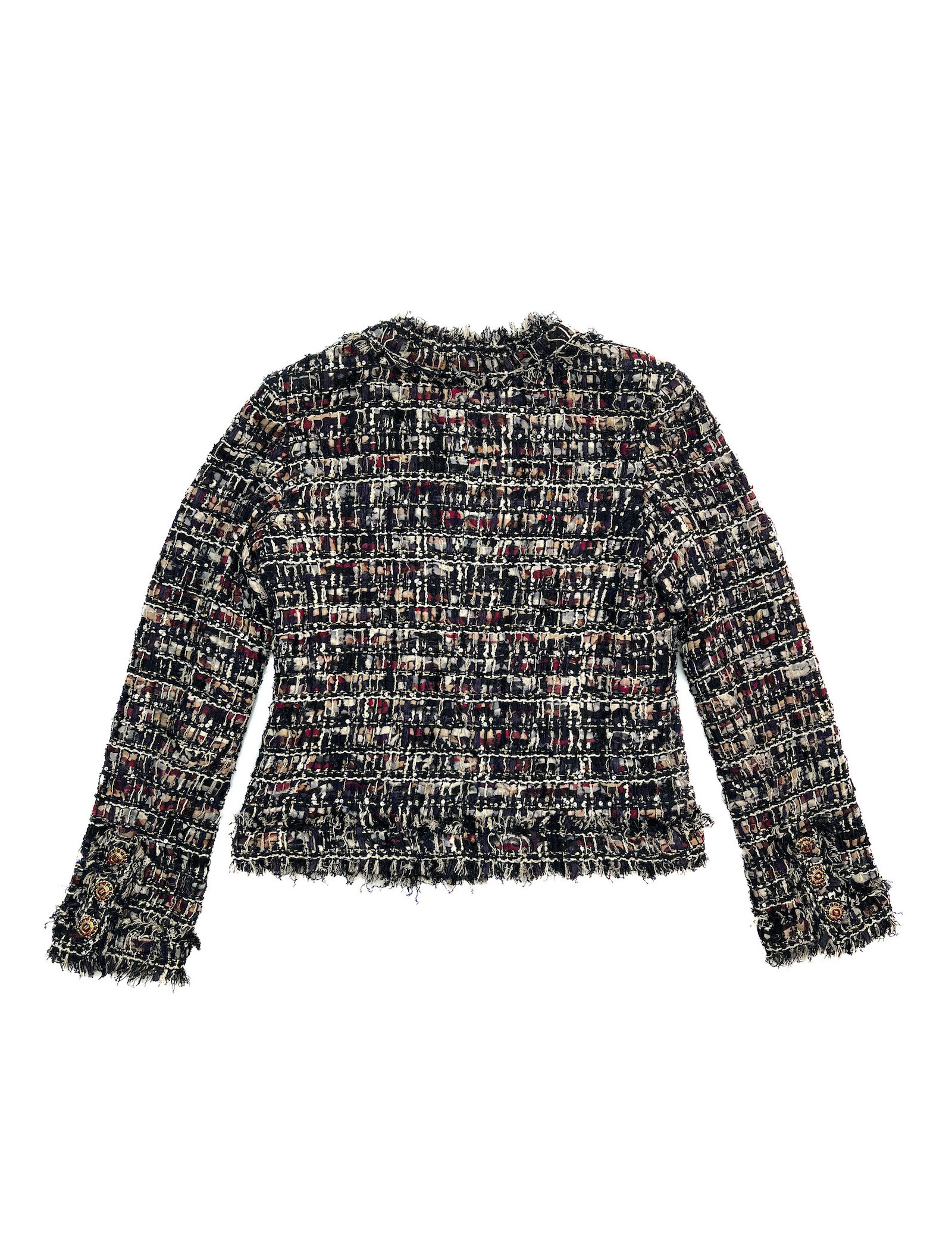 New Last items in stock JACKETS Veste Chanel courte Lesage CHANEL 42673 6,300.00 € Short Chanel jacket size 38 Condition : very good conditionCountry of manufacture : FranceSize : FR 38Material : tweed, sequinsLining : CC silkColor : burgundy, black, goldFlat measurements : shoulder width 40 cm, underarm width 44 cm, sleeve length 63 cm, total length 48 cm, wrist circumference 24 cmYear : Fall 2002Details : Chanel jacket from the Fall... Add to cart