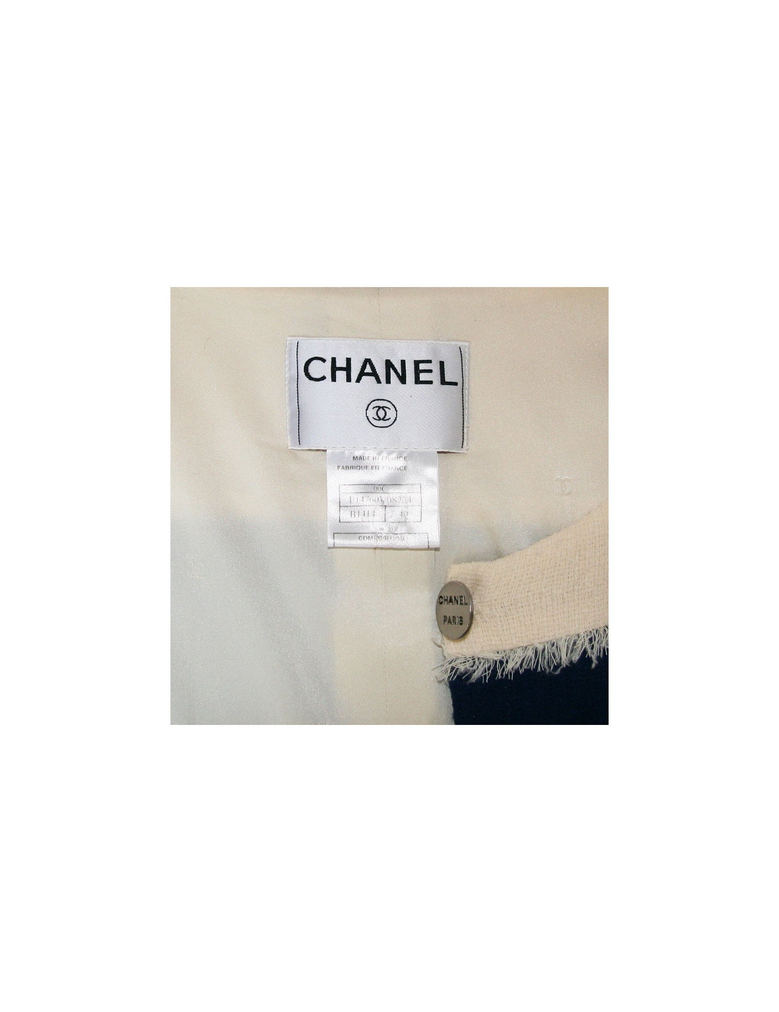 Chanel jacket, size 40, in wool and silk lining. LES colors: beige, blue and grey. The buttons are silver initials metal Chanel Paris. En very good condition