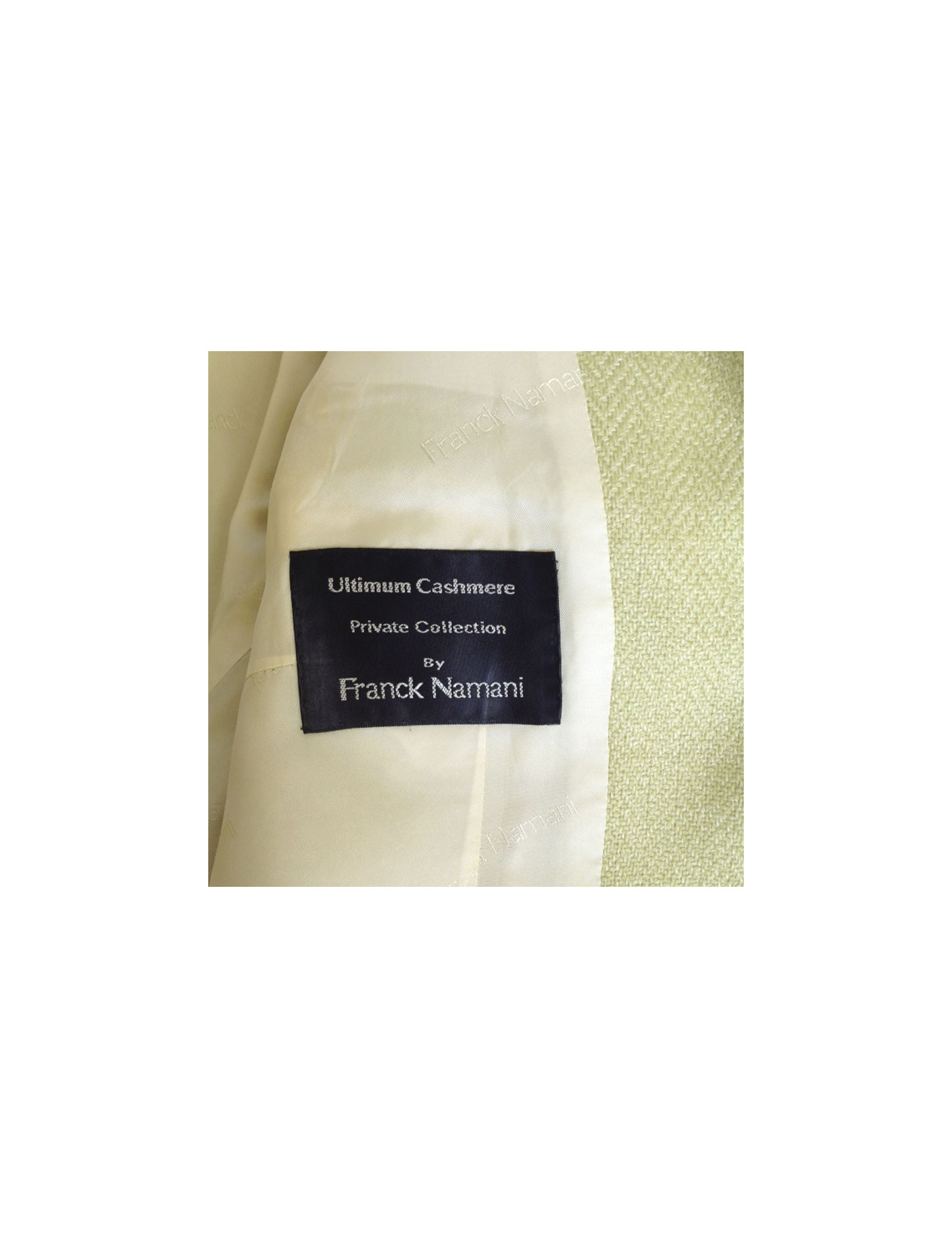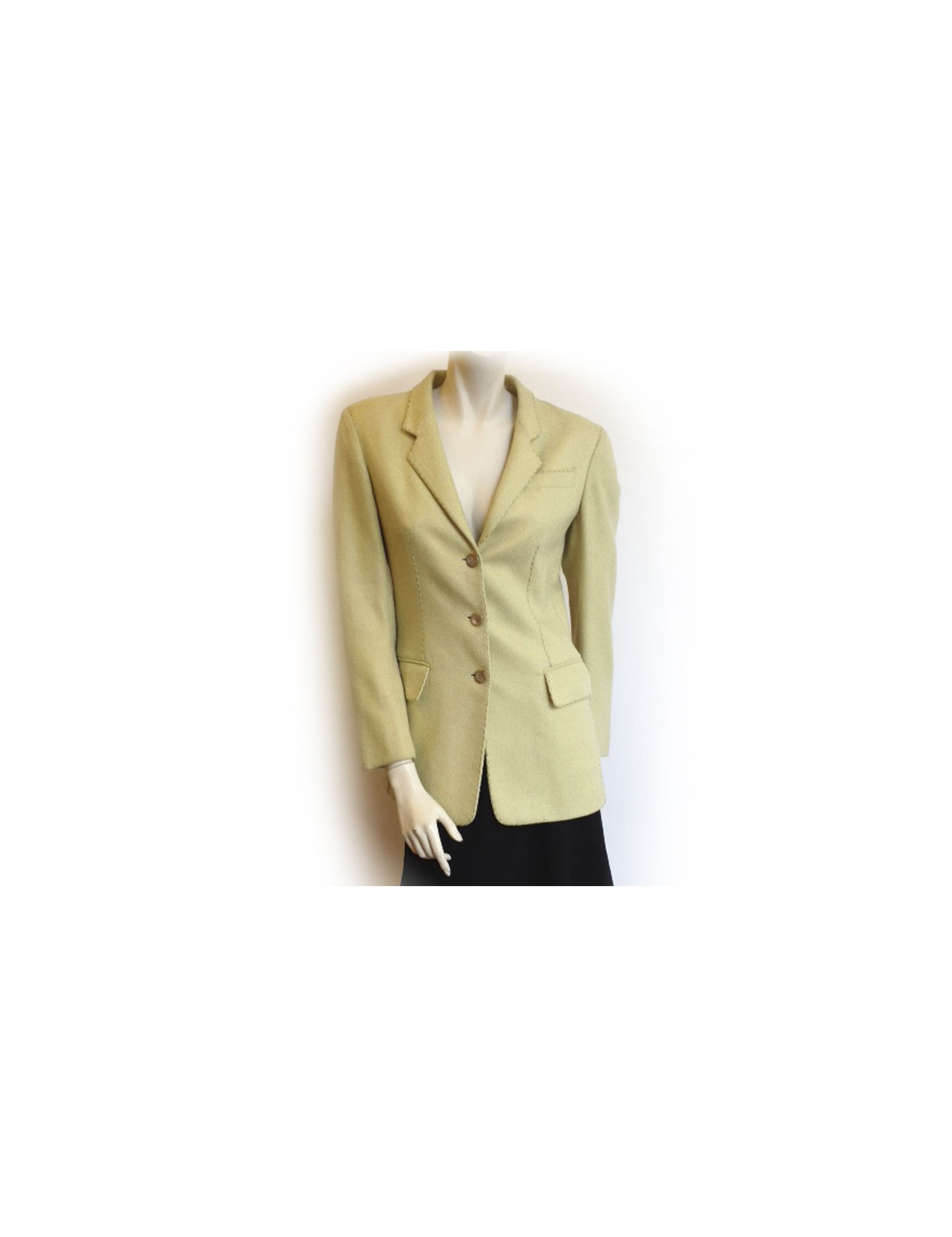 Jacket Franck NAF cashmere green anise and green stitching. Print chevron. T38. Two pockets with flap. Silk lining. Closure 3 buttons Pearly. In very good condition. Retail price € 2,000.