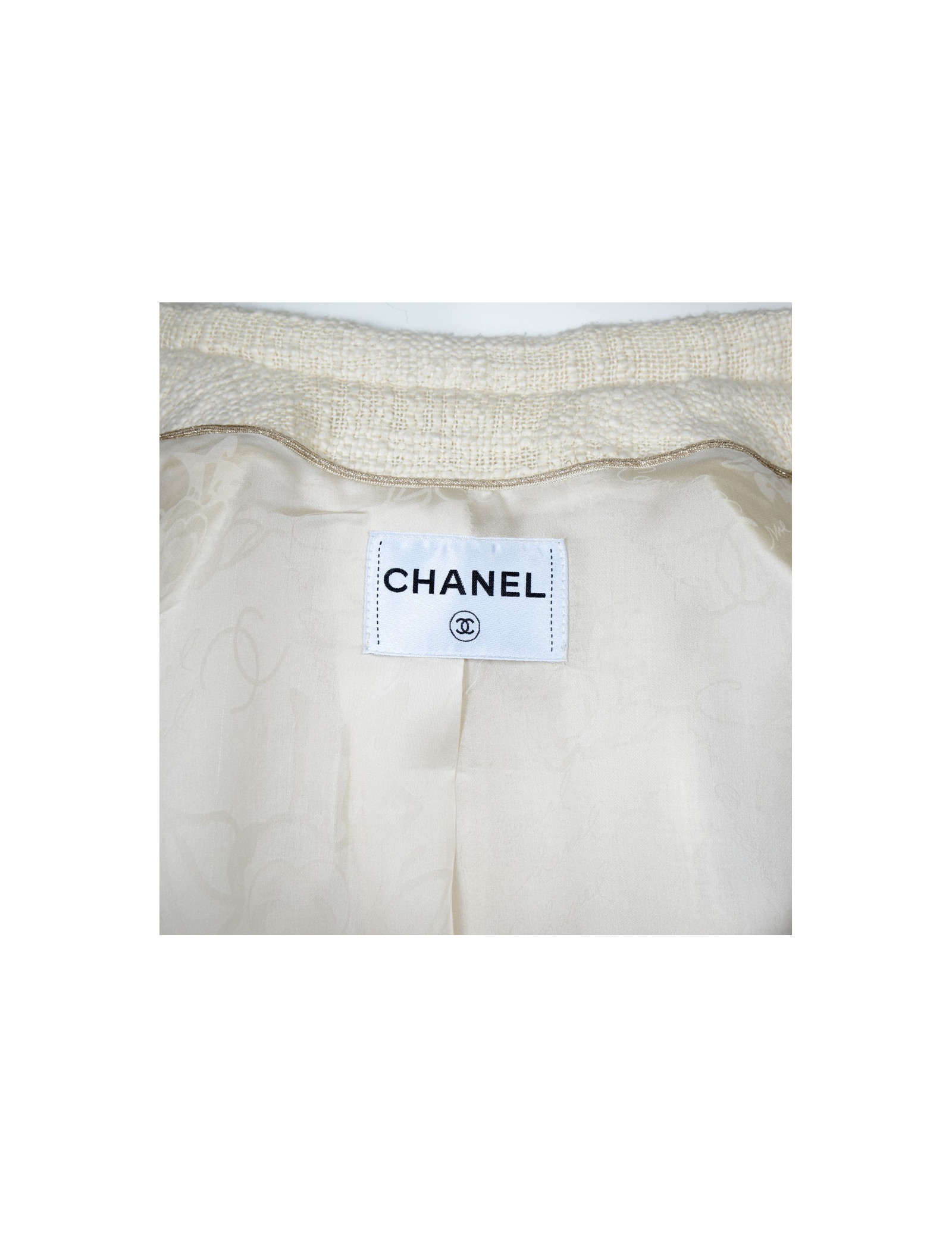 Beautiful Chanel long ivory tweed jacket from the 'Paris Bombay' collection. Size 38EU (no label).