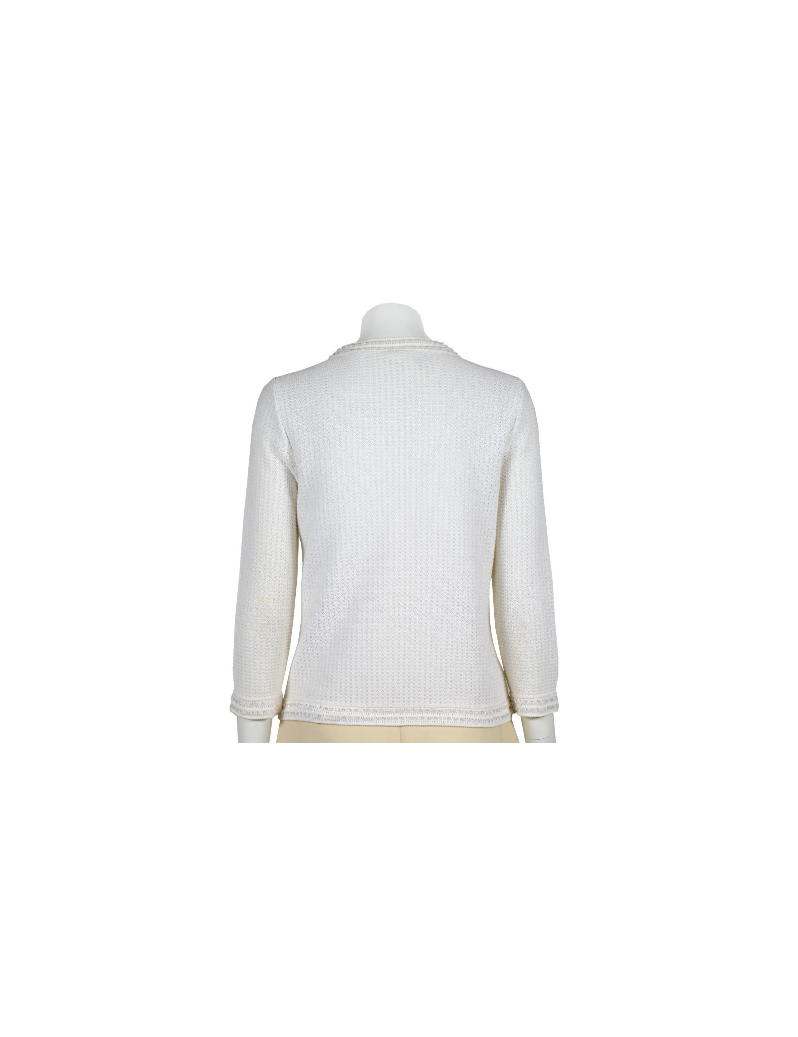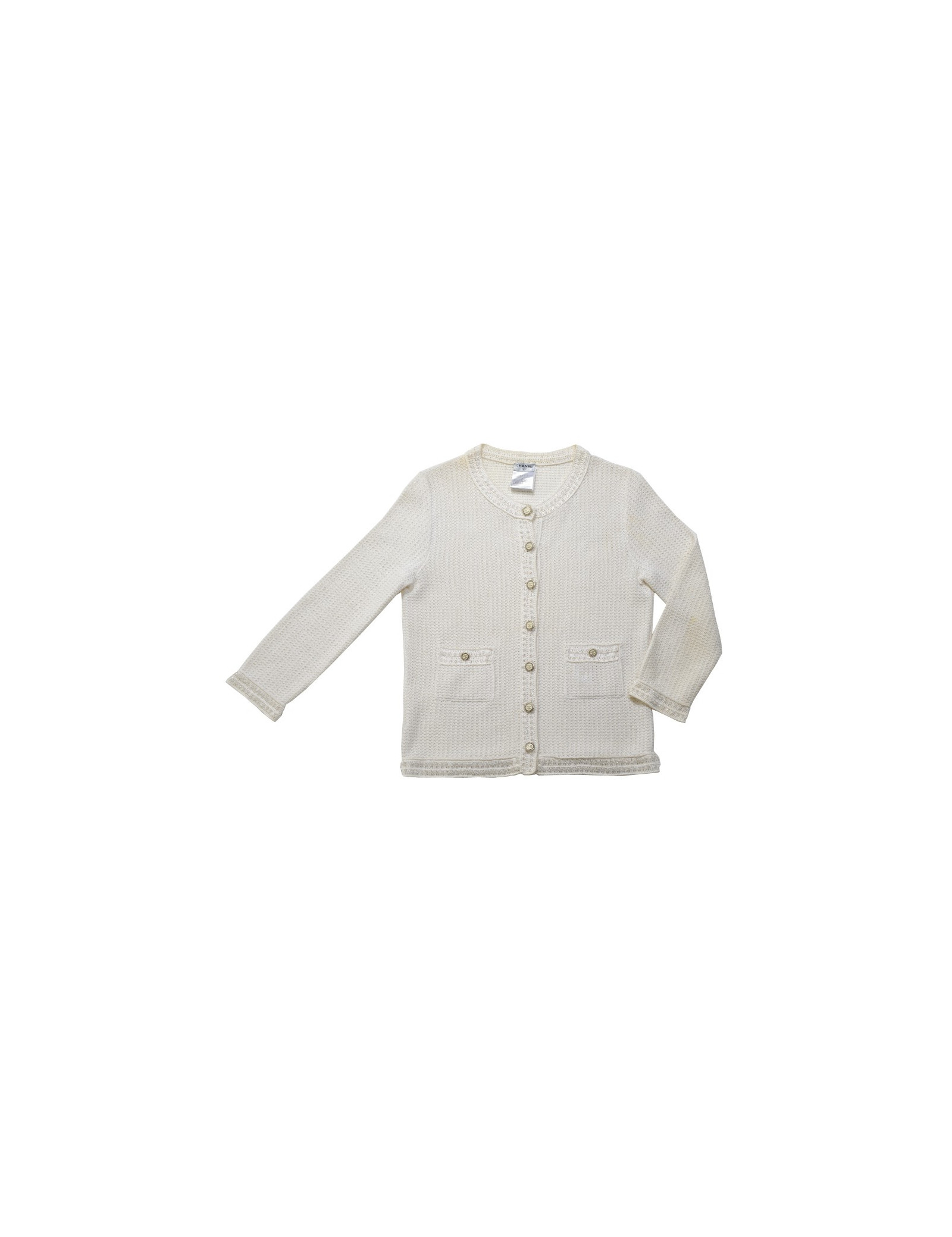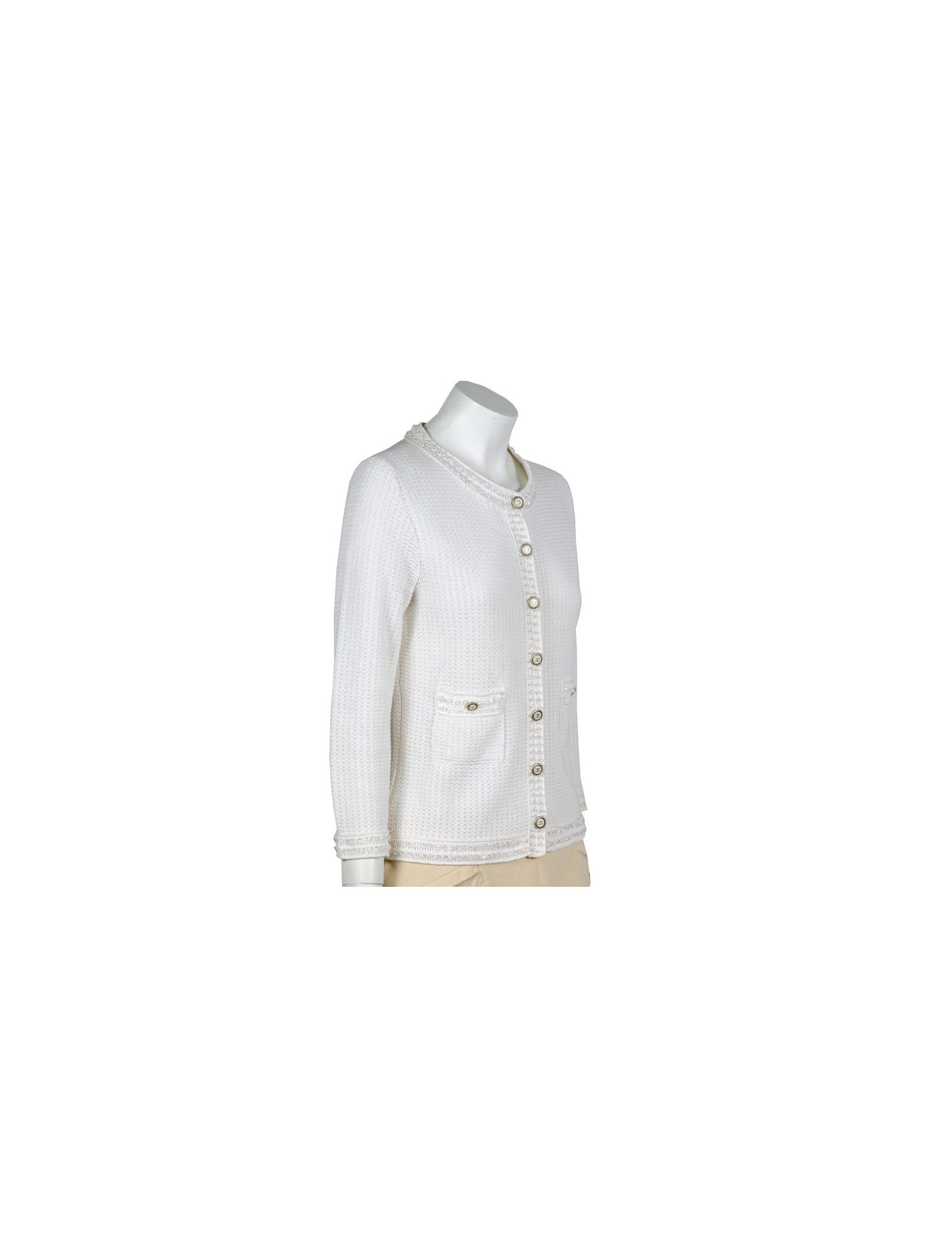Lovely Chanel jacket, size 38, from ready-to-wear fall 2007, in unbleached cotton with a lizeret sewn by two rows of transparent beads. The buttons are interspersed beige and a double C Center. There are two pockets on the front. In very good condition.