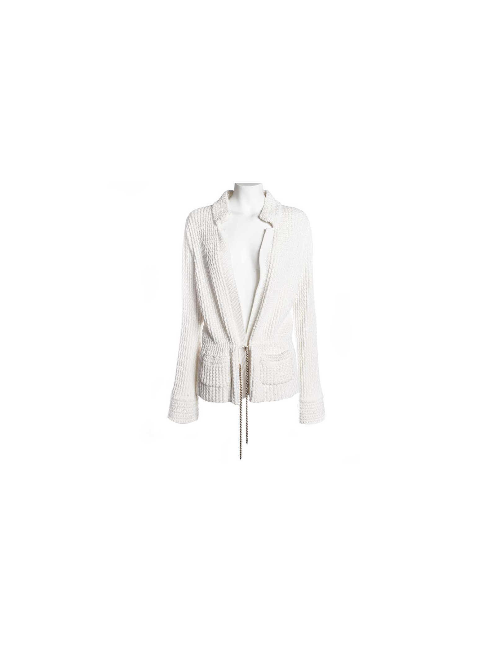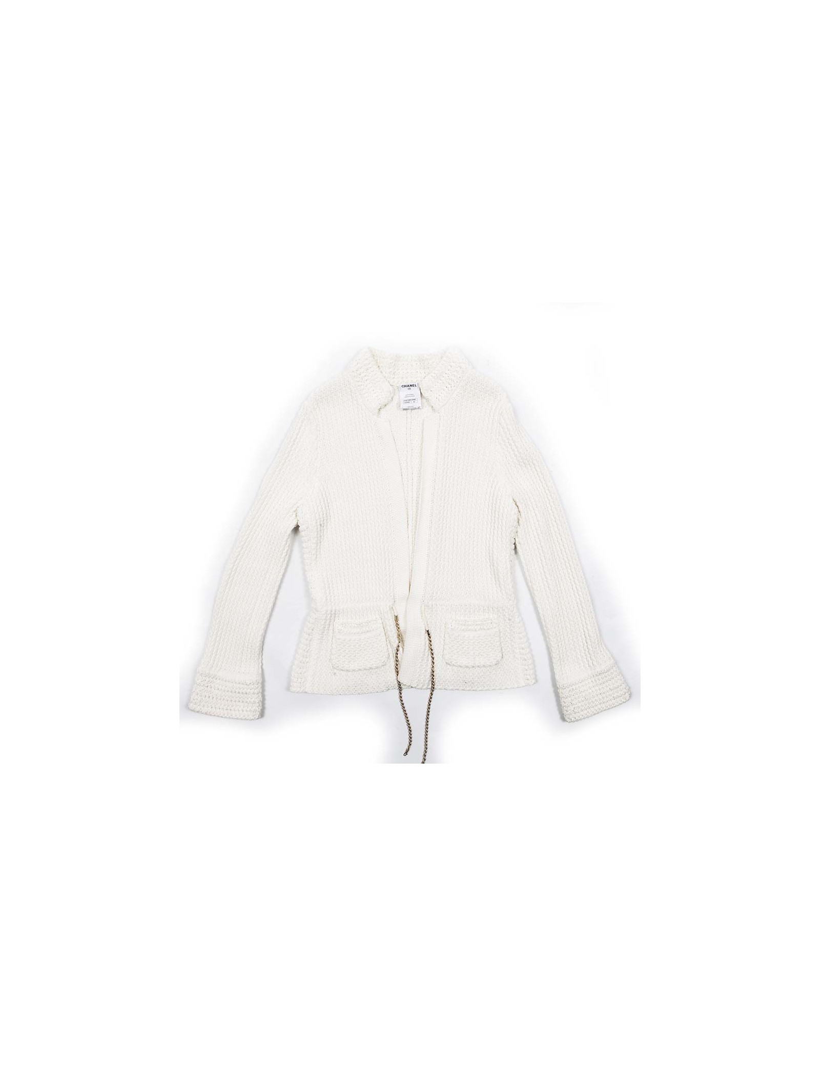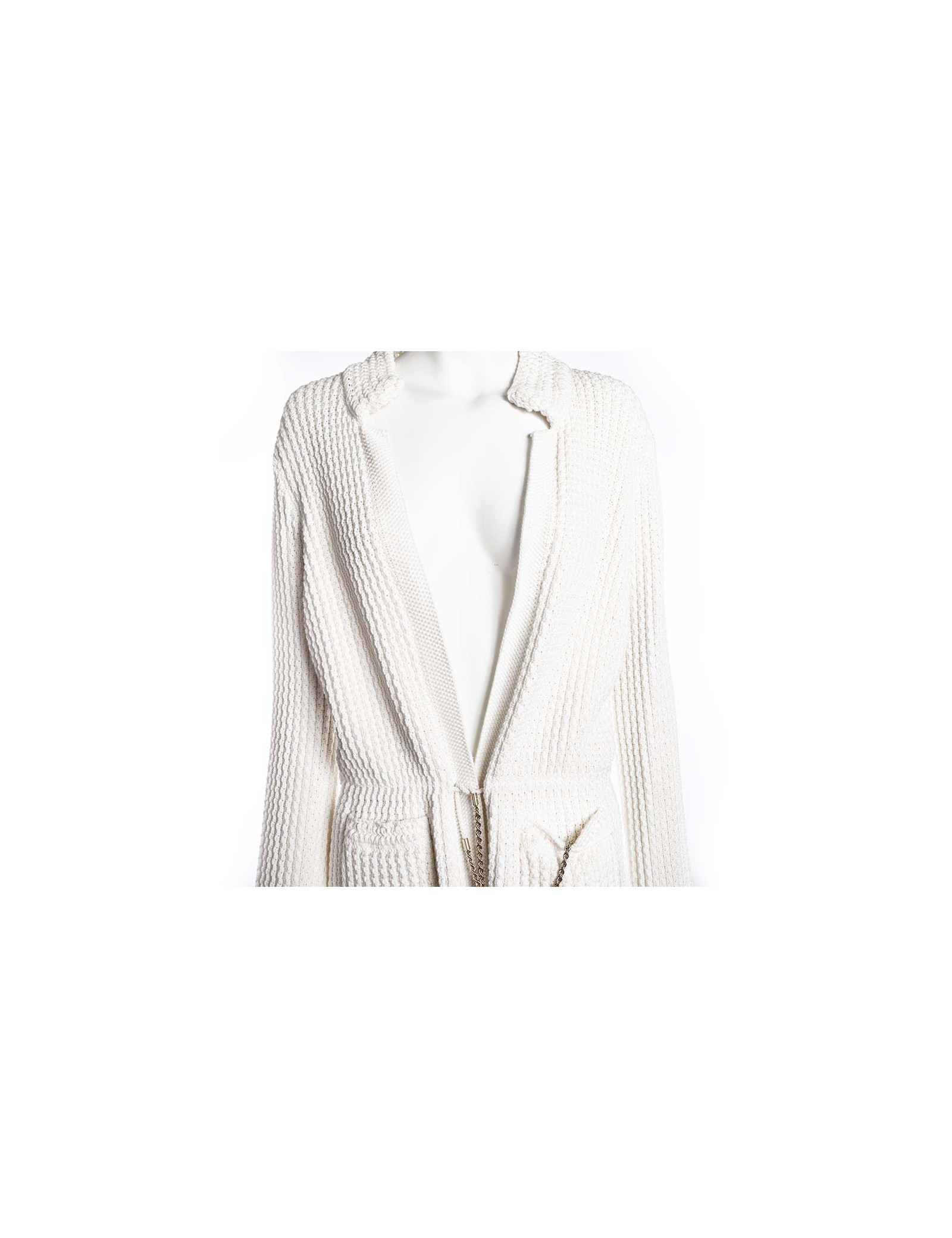 Long vest CHANEL in white cotton, size 42. Will frown by one ending with a chain strap.