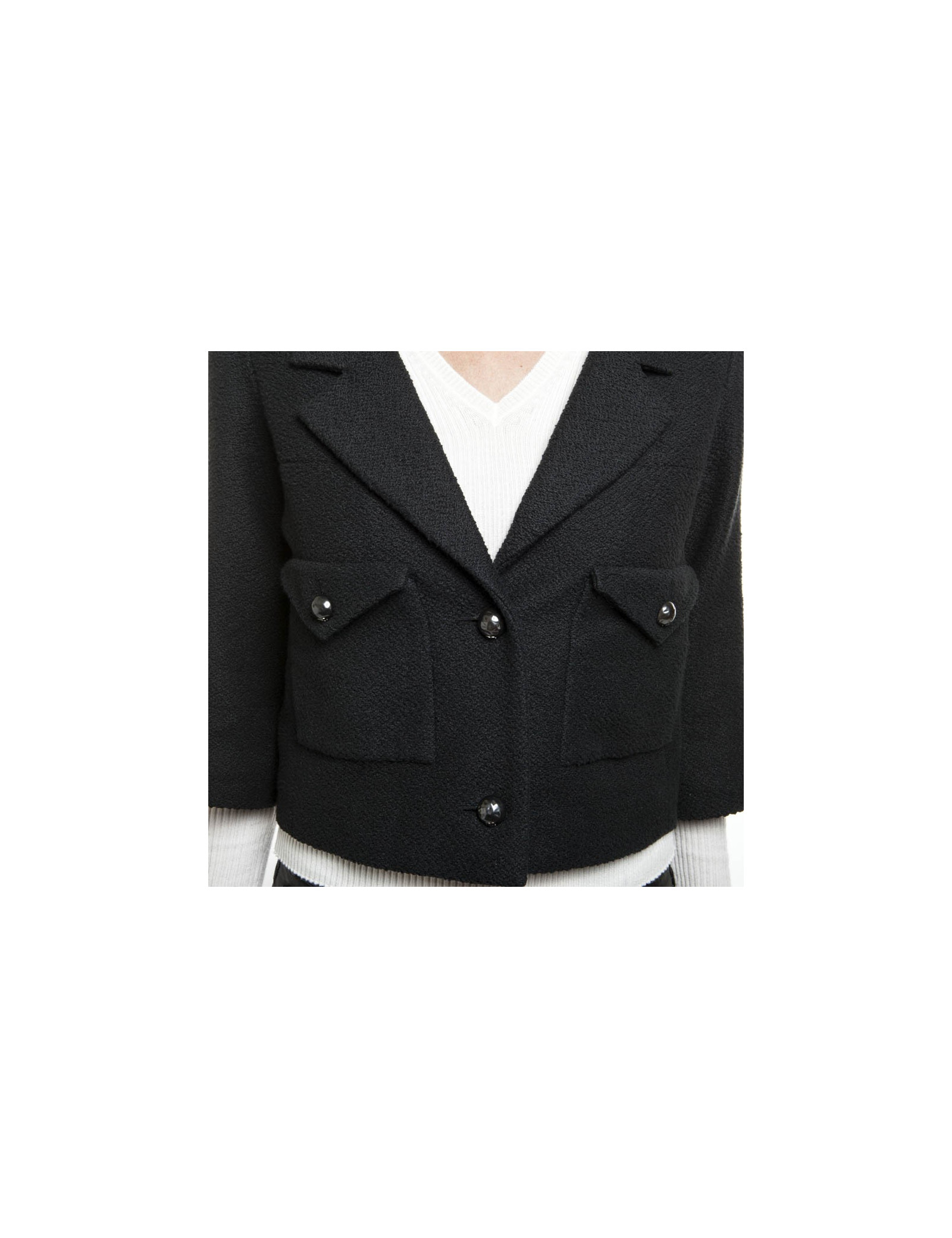 Pretty Chanel short jacket size 36 FR, black. In perfect condition and indispensable in his dressing room. Mid-length sleeves and black Monogram silk lining.