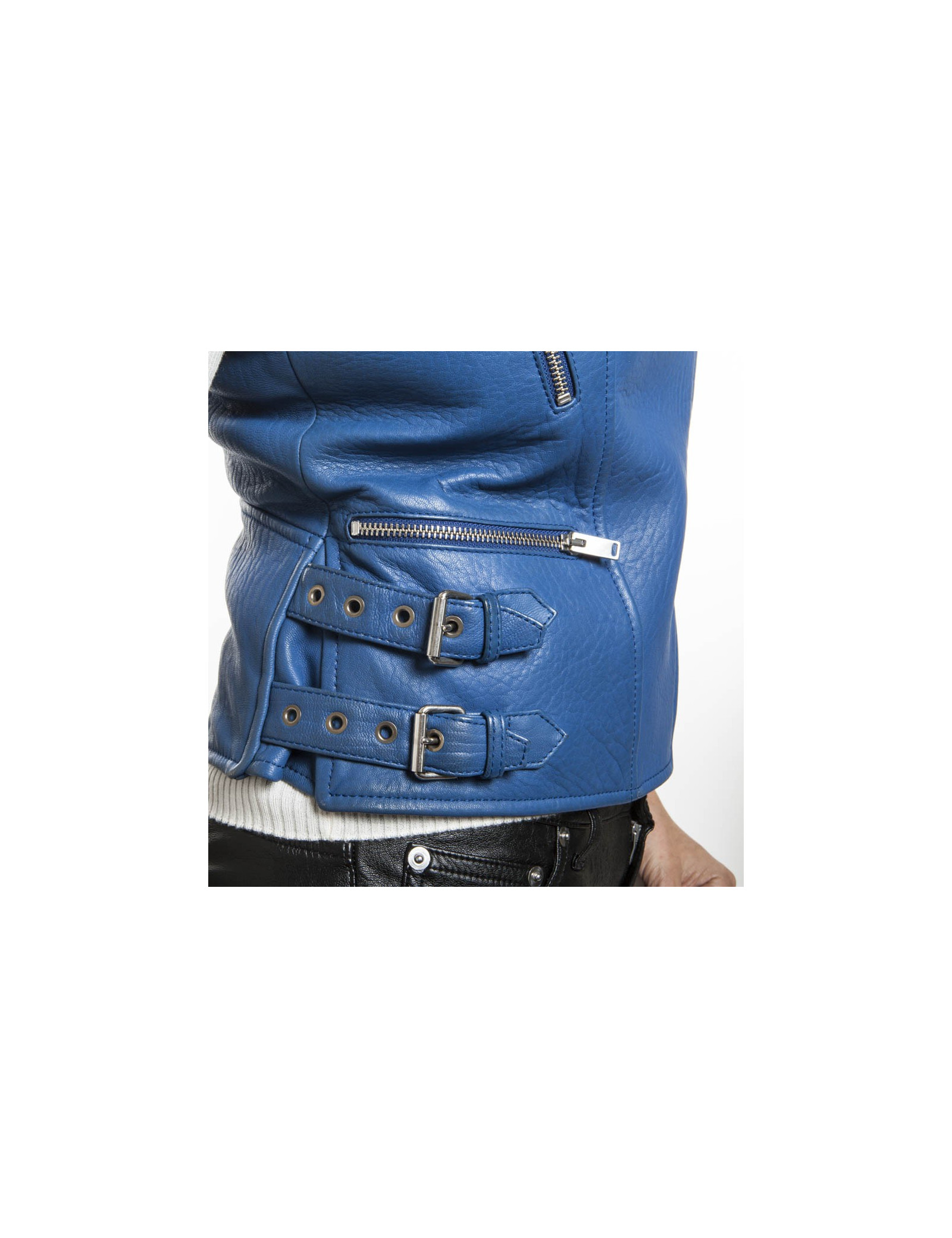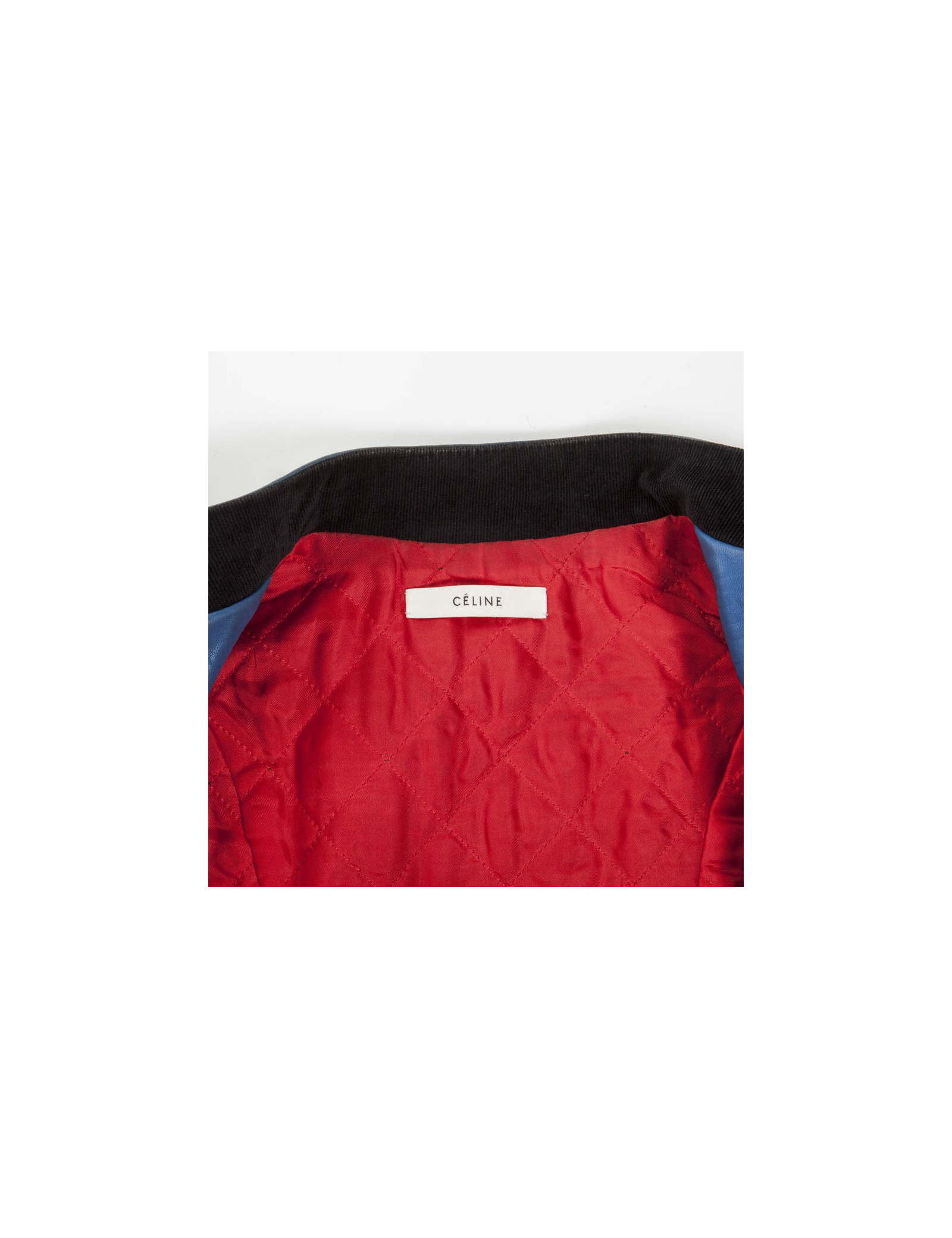 Céline sleeveless jacket way perfecto in electric blue Lamb that closes with a zipper diagonally on the chest.