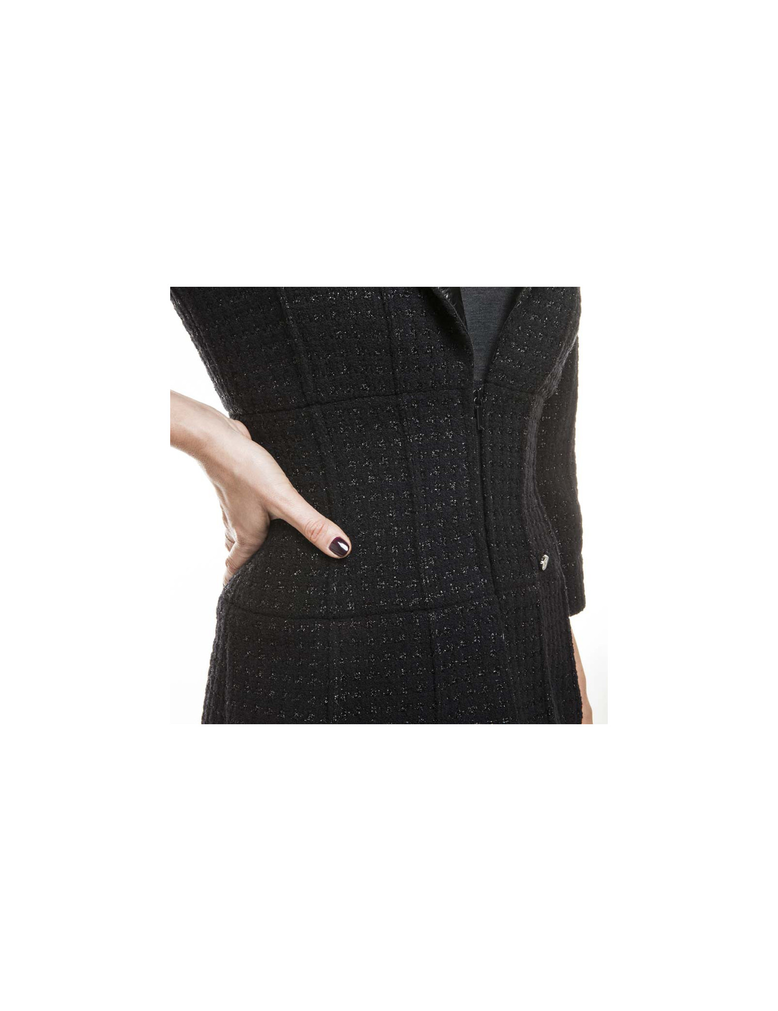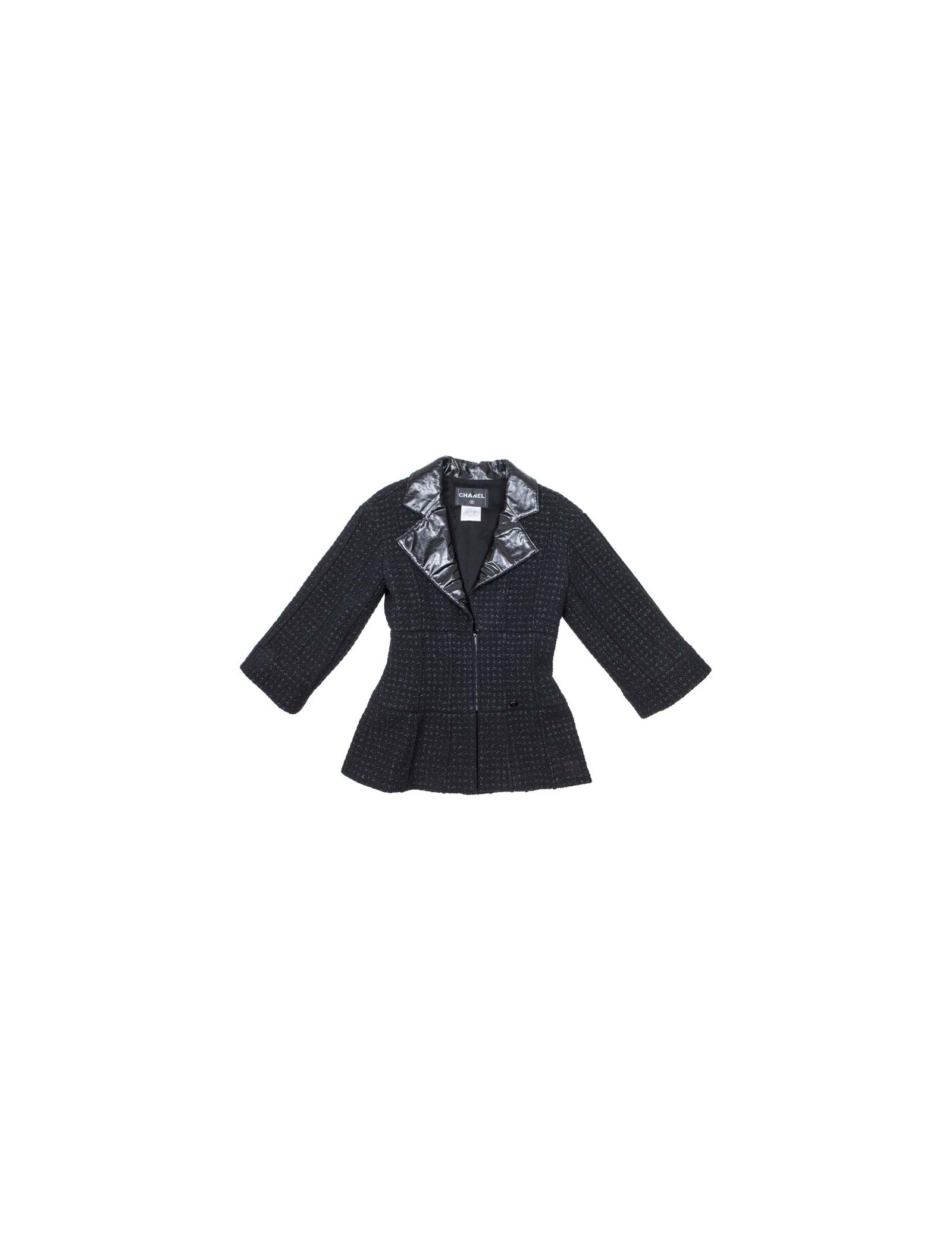 CHANEL T 36 black shiny threads and black tweed jacket