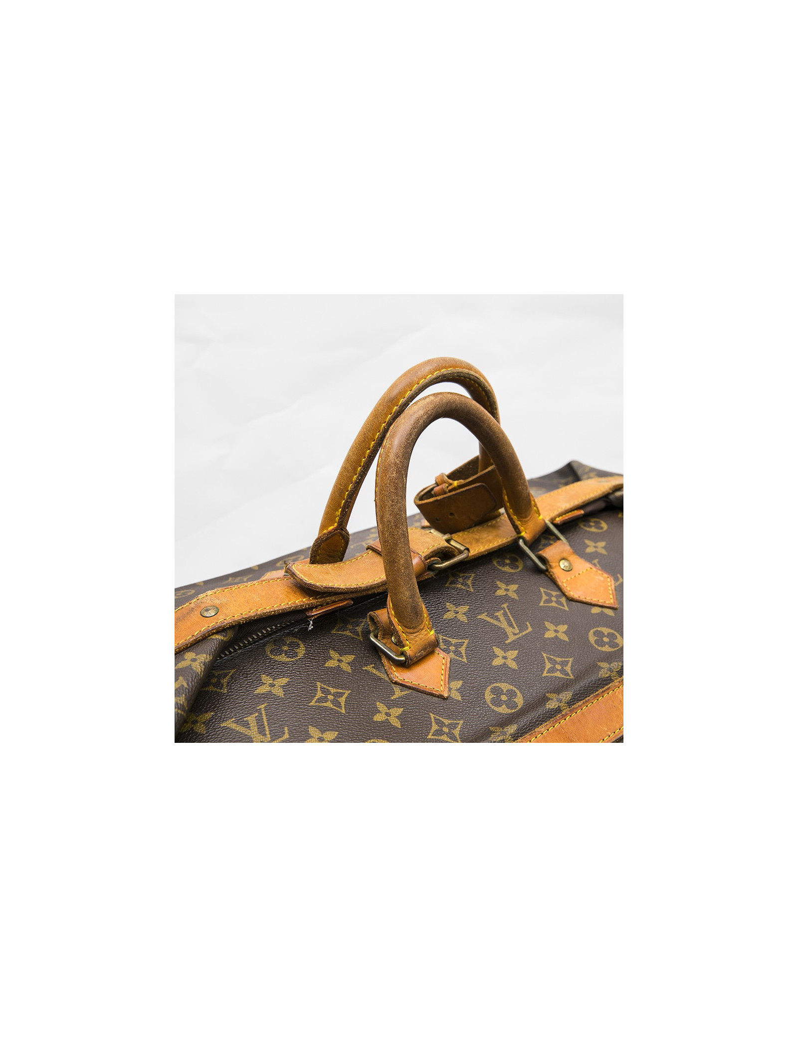Louis Vuitton vintage travel bag in brown monogram canvas. Gilded hardware. Zip closure.