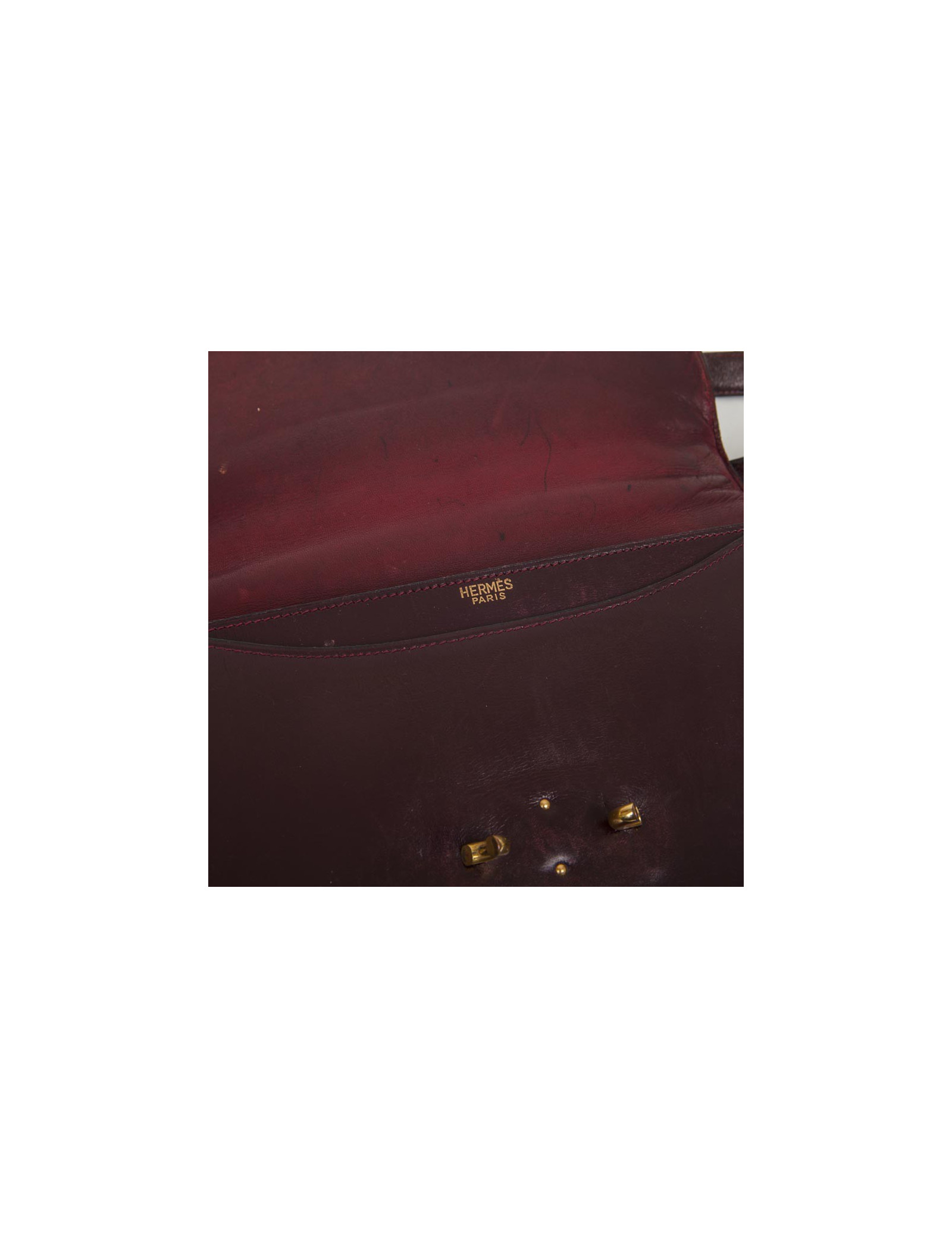 Sac HERMES cuir box rouge H Vintage