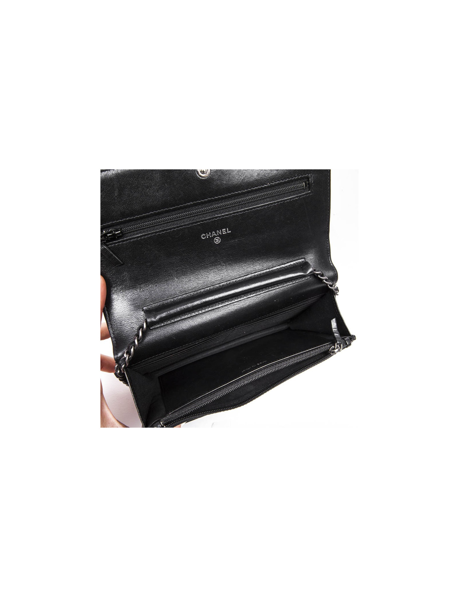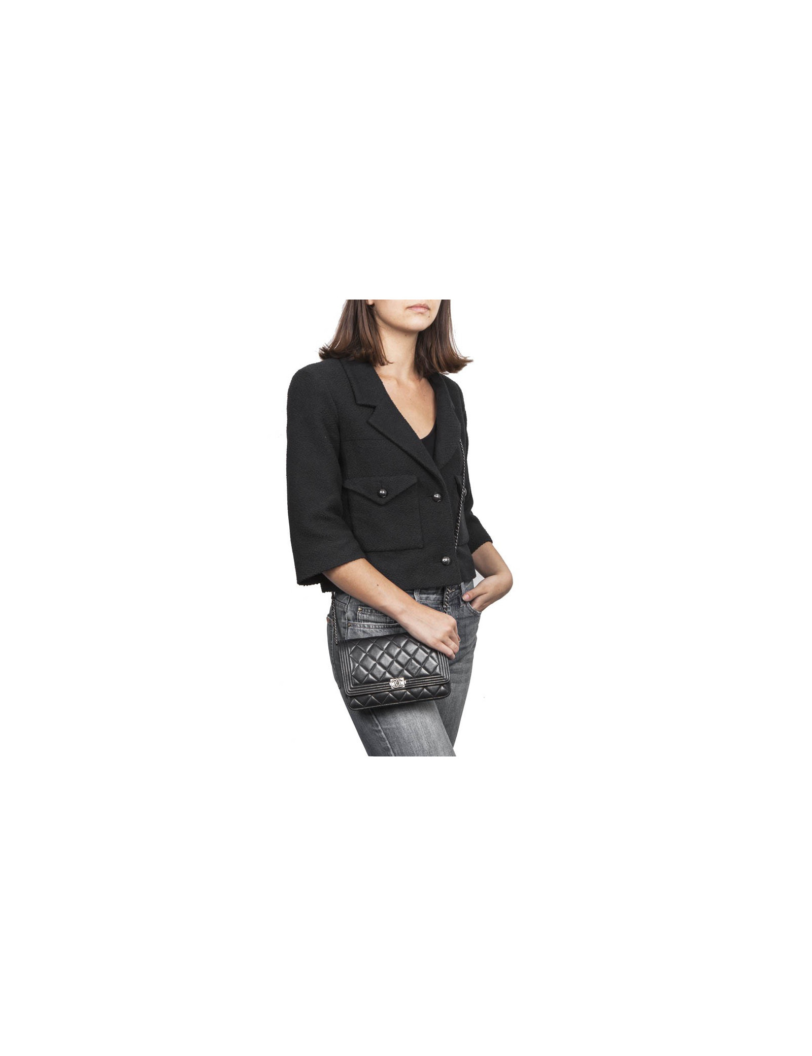 Last items in stock BAGAGERIE CHANEL Vanity bag in black caviar leather CHANEL 35432 4,200.00 € CHANEL vintage black Vanity bag Condition : very goodMade in ItalyCollection : VanityGender : womanMaterial: grained leatherLeather : smooth black leatherColor : blackMeasurements: 24 x 17 x 15 cmShoulder strap (removable) : 100 cmHologram : 5290 ...Authenticity card : noYear : 1997-1999Hardware : gold finish metalDetails : Shoulder or hand carry. There... Add to cart